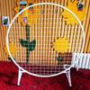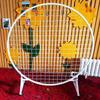 Pantalla de malla de hierro decorativa redonda semicircular, soporte de exhibición plegable para obras de jardín de infantes, para exposición de pintura escolar