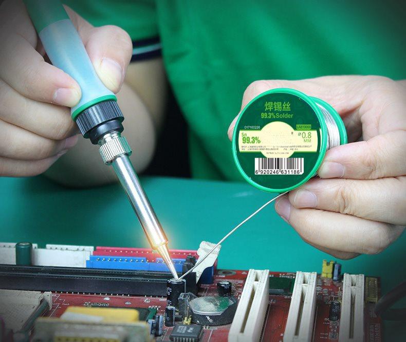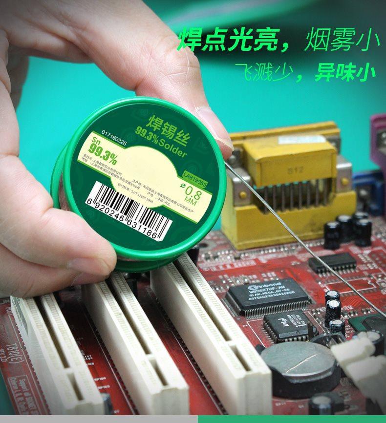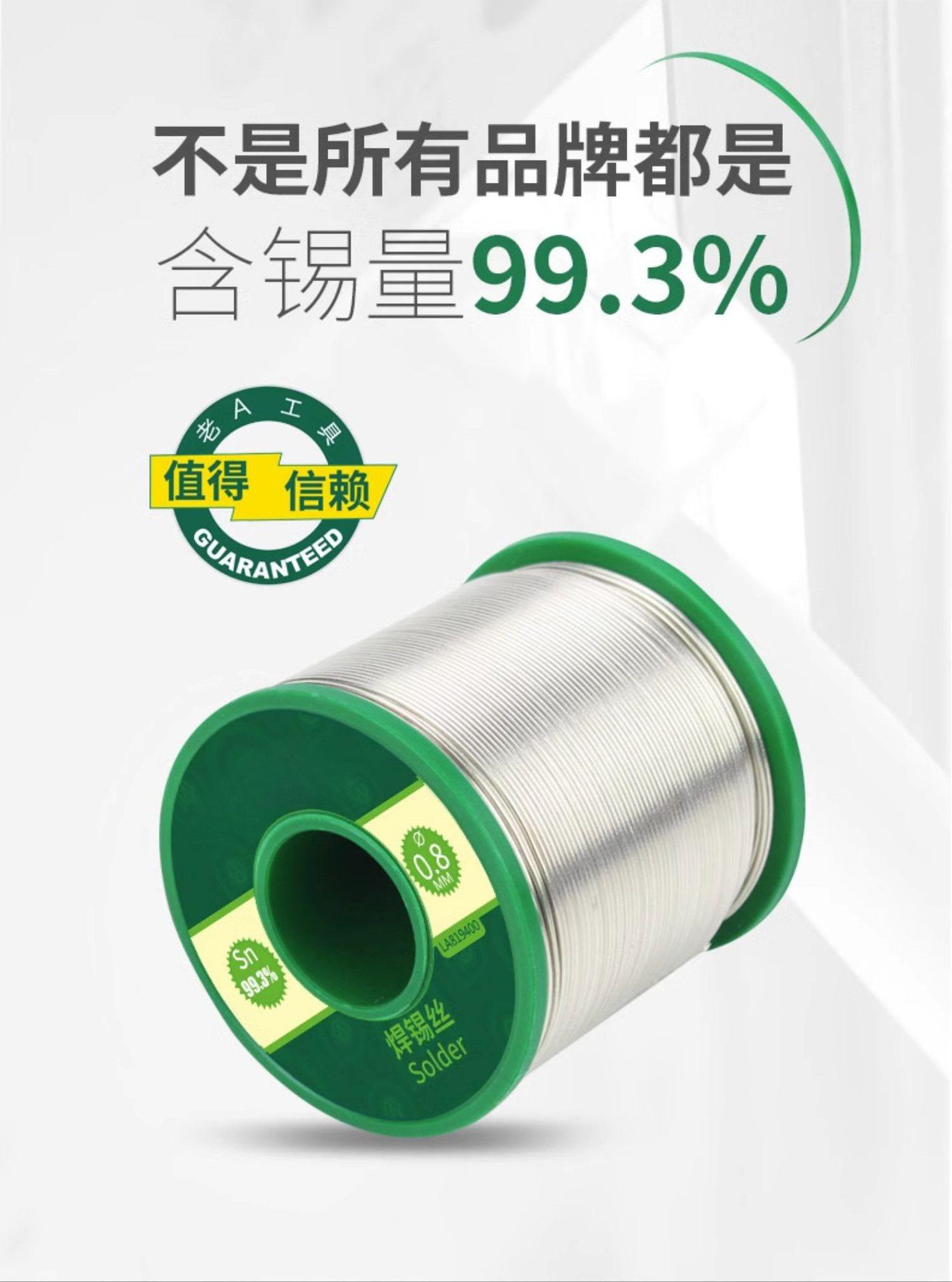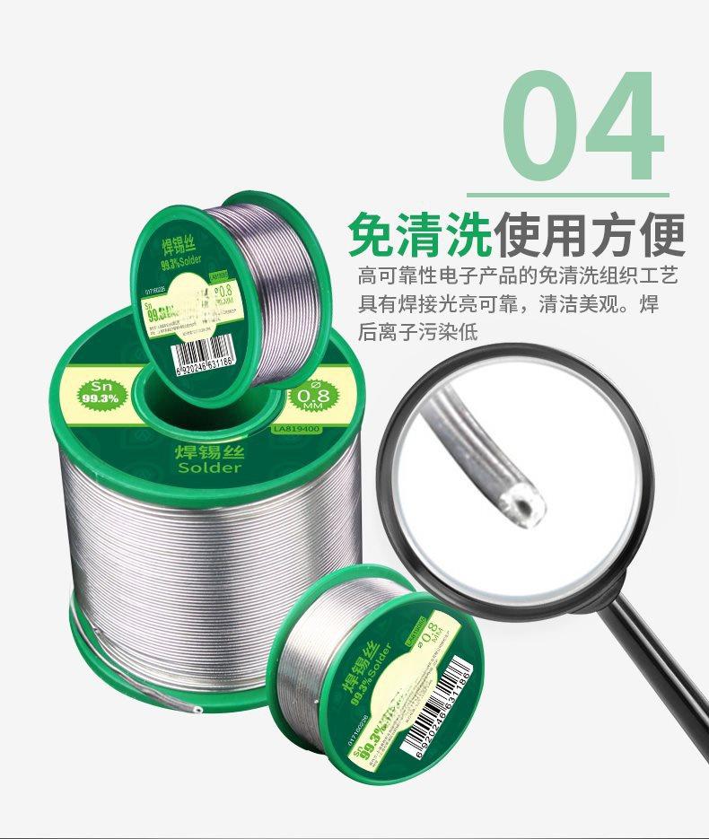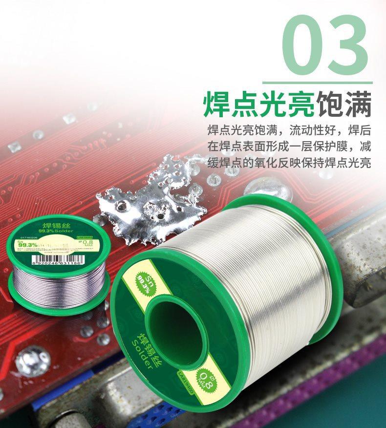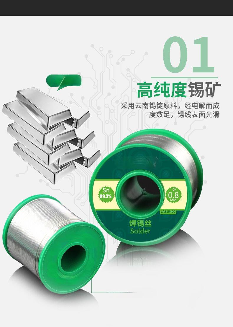 Alambre de soldadura activo de 0,8 mm para soldador eléctrico con núcleo de resina que contiene 99,3 % de estaño de alta pureza.