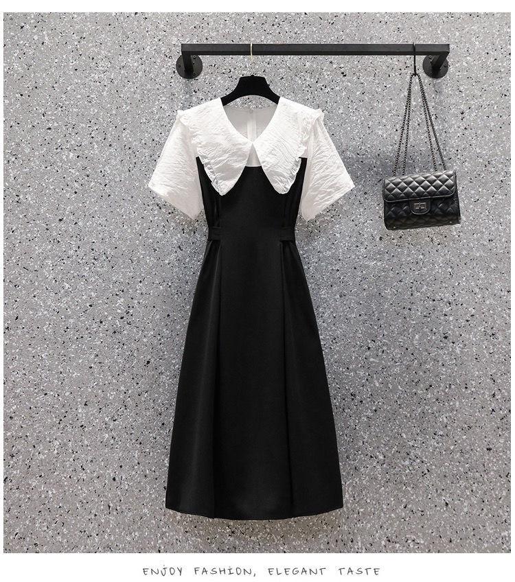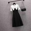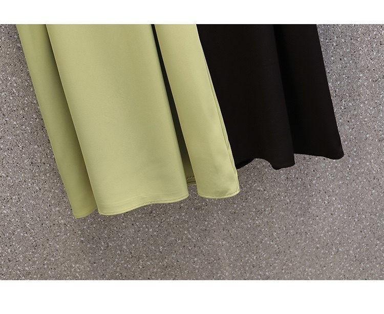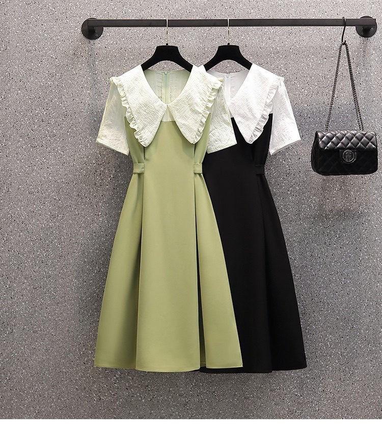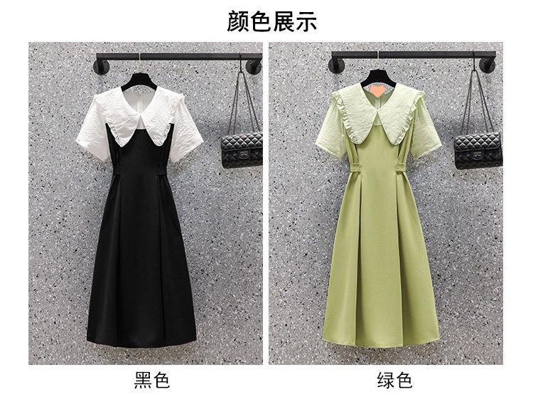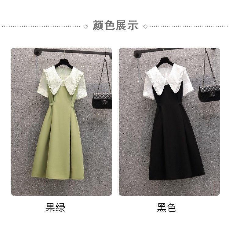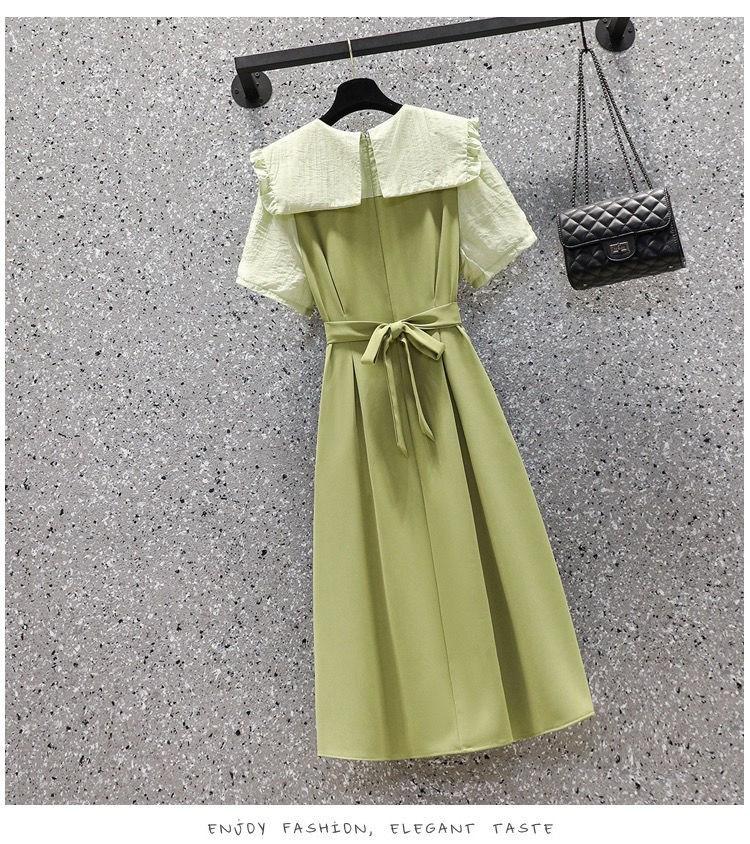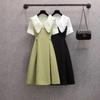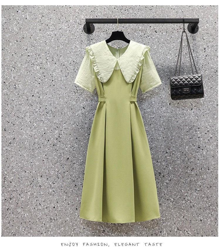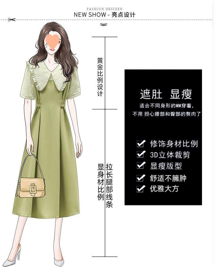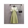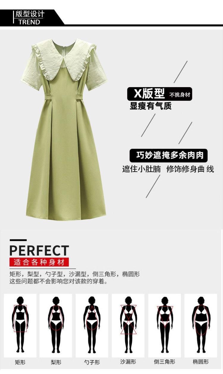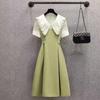 Vestido verde fruta suave para mujer, primavera y verano, nuevo, cuello de muñeca, cintura ajustada, costuras adelgazantes, vestido de dos piezas falso
