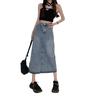 Falda vaquera ajustada de cintura alta estilo retro de Hong Kong para mujer 2023 otoño nuevo estilo falda de cadera con abertura a la moda de largo medio para mujer