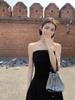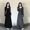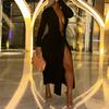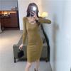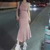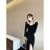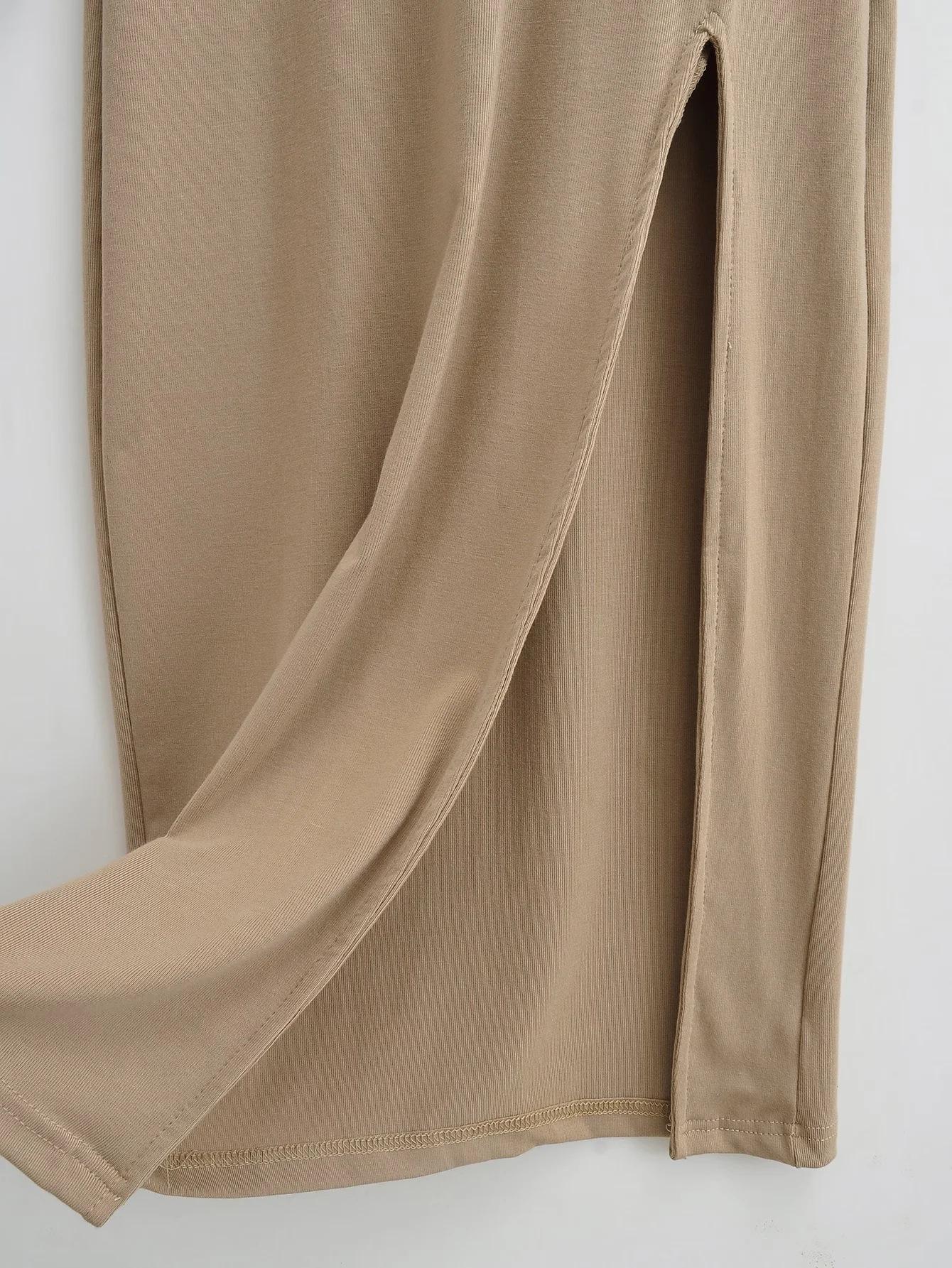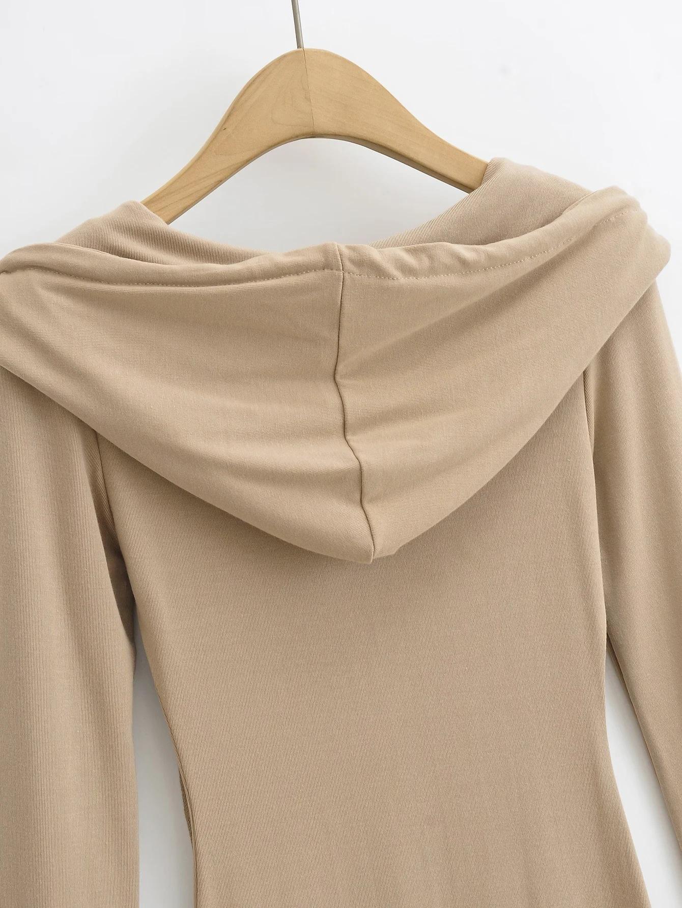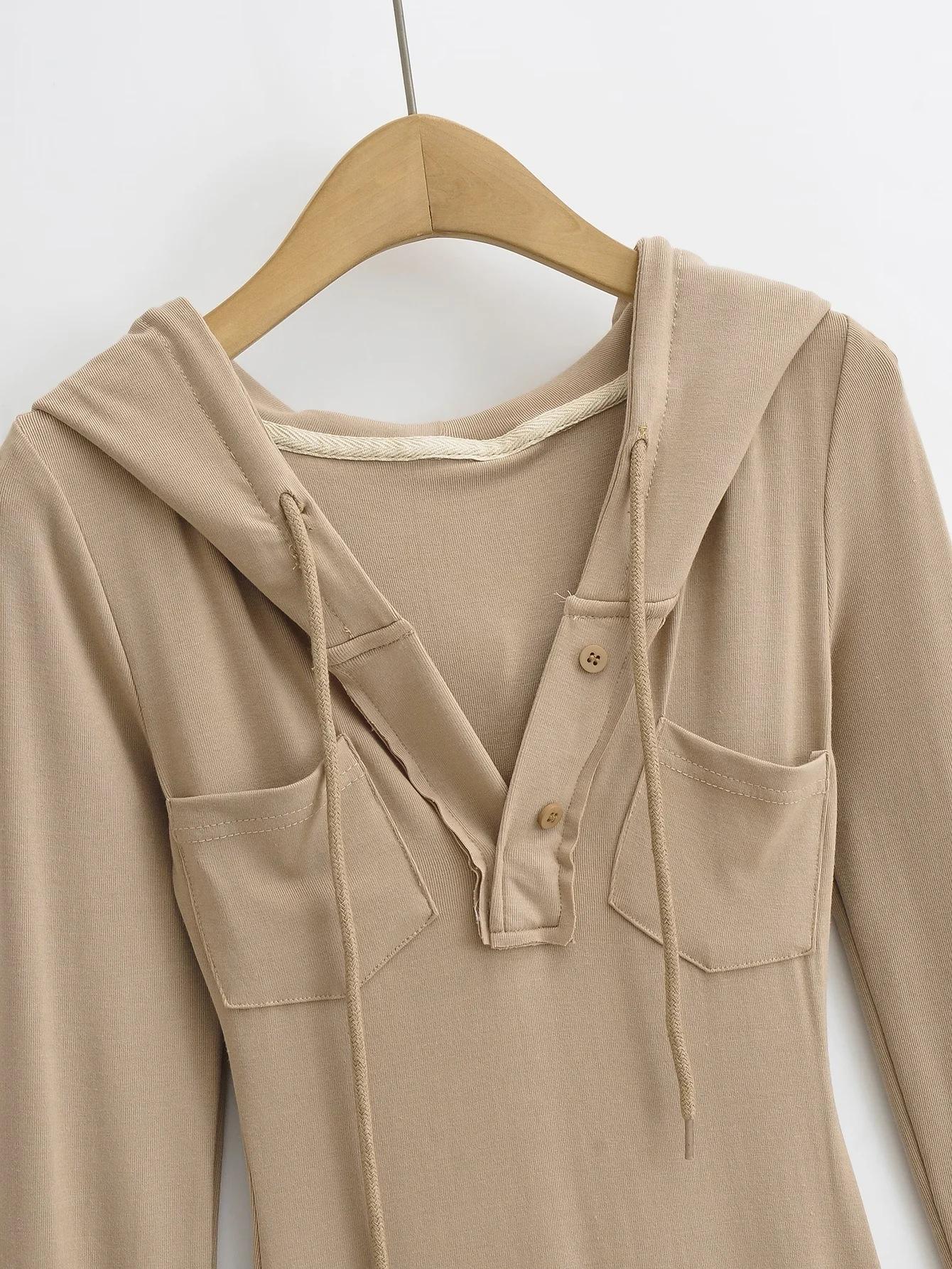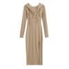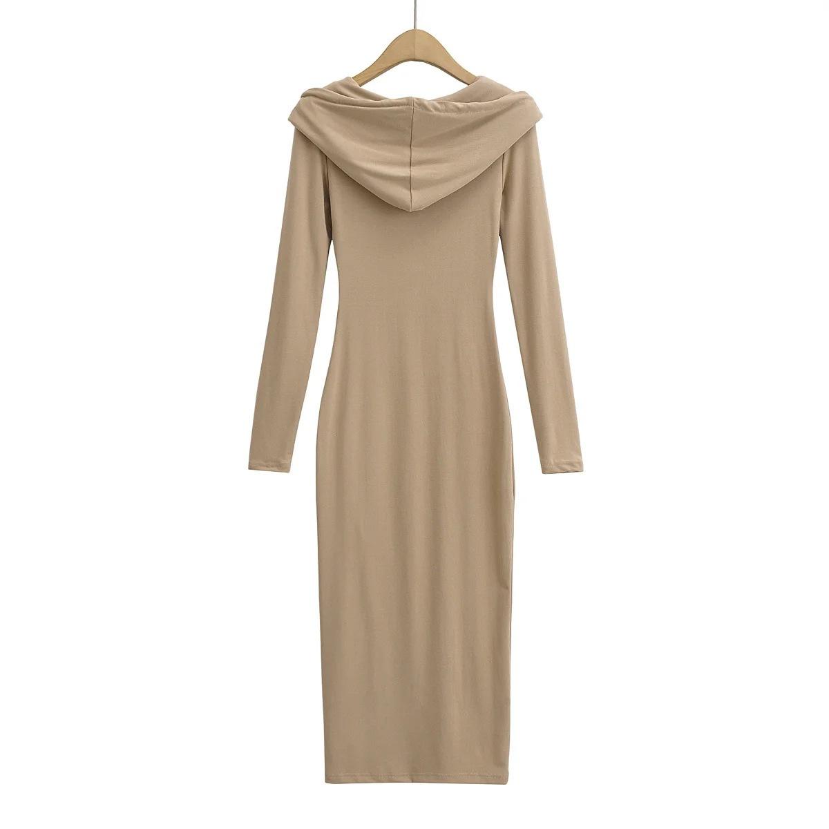 Vestido tubo de cintura alta con capucha, escote en V, dos botones y pierna larga, sexy, para mujer, con abertura lateral