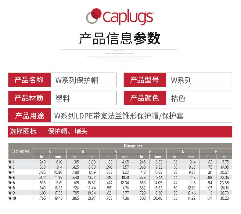 Caplugs Serie W Brida a presión Tapa protectora cónica Tapón protector LDPE Fácil de instalar y desmontar-w