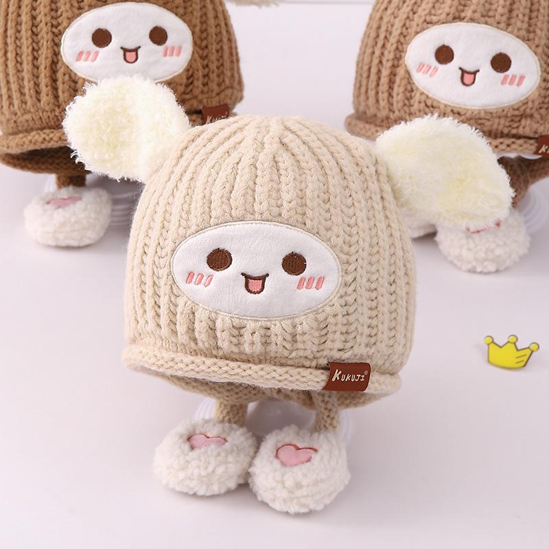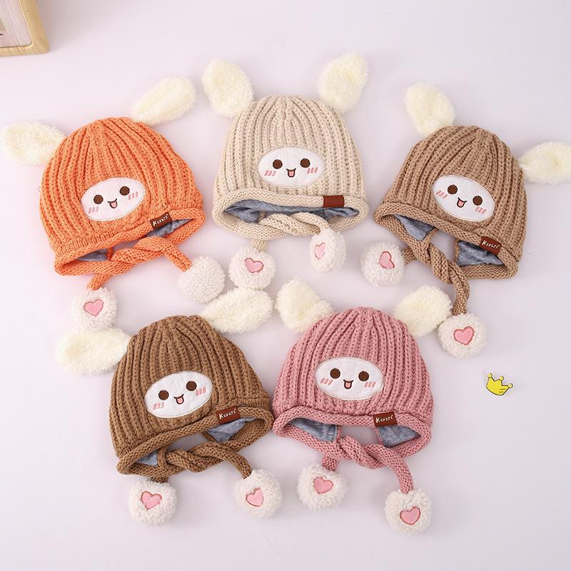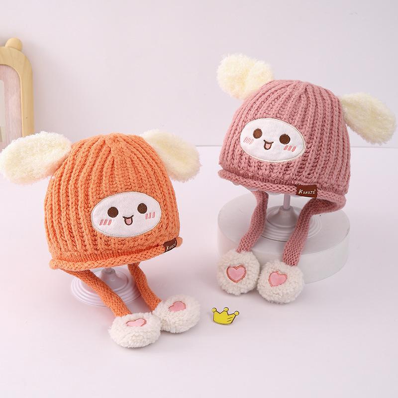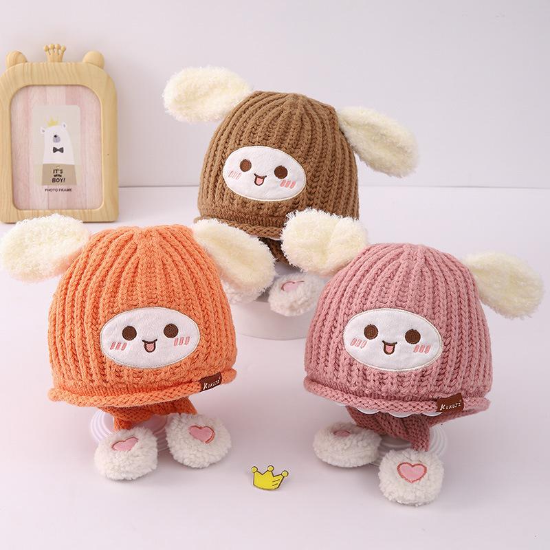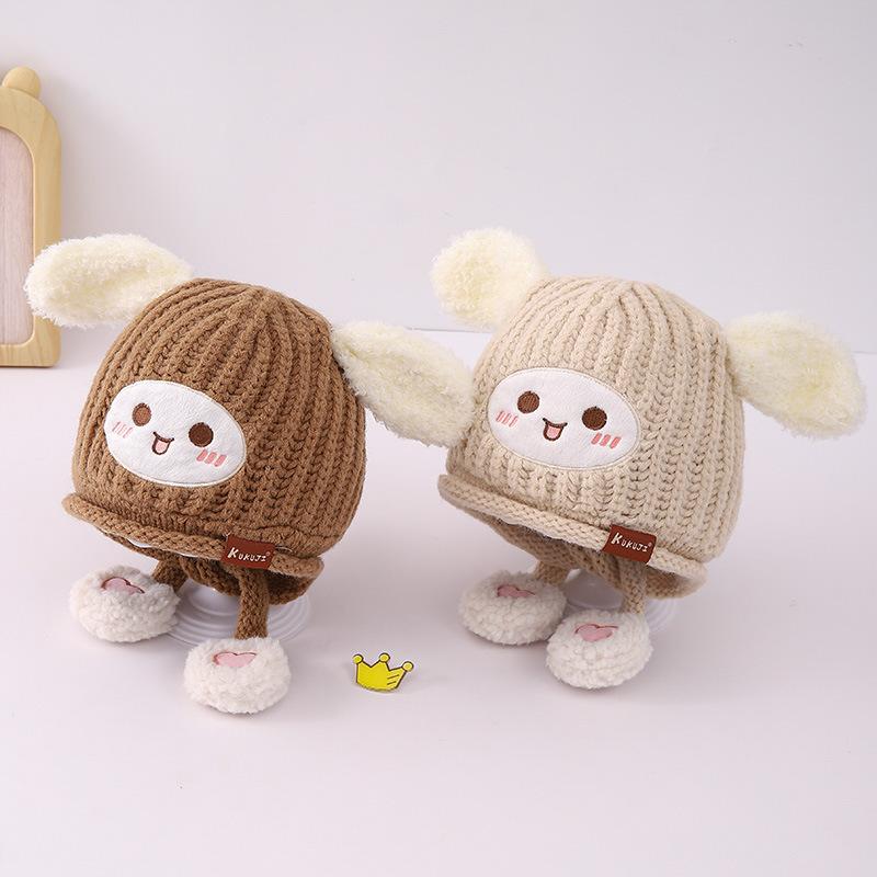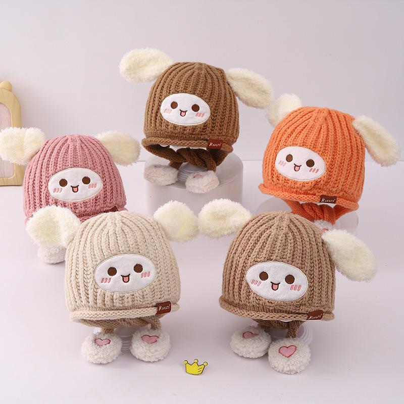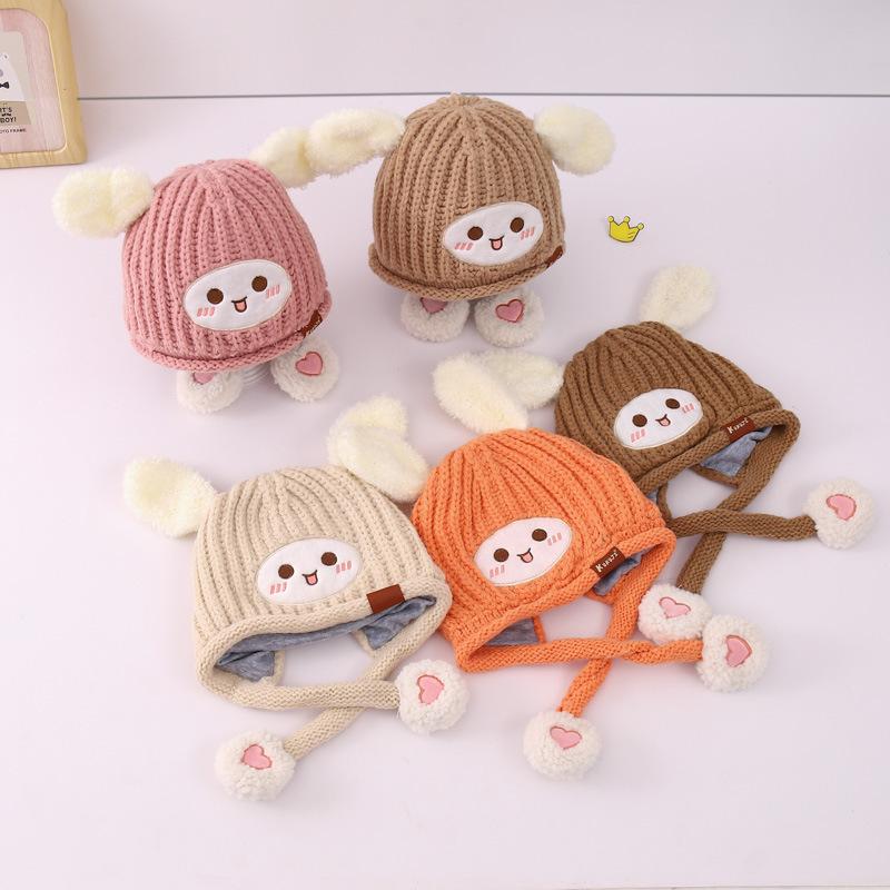 Gorro de lana para niños, nuevo gorro japonés y coreano de invierno con orejas largas de conejo, gorro cálido con protección para las orejas para niños y niñas.