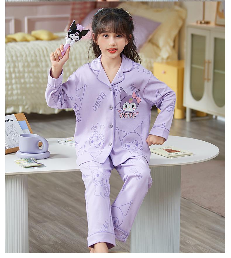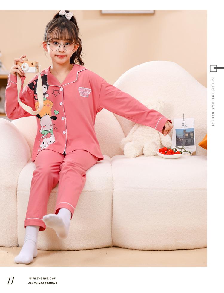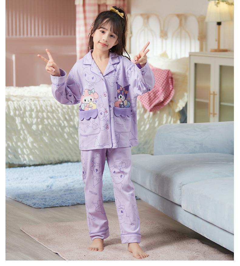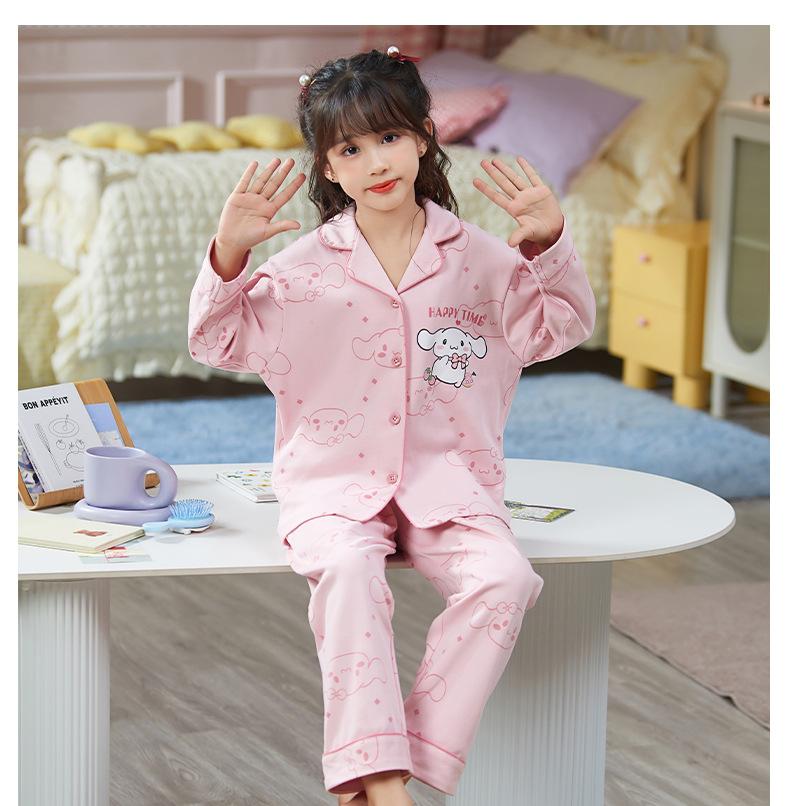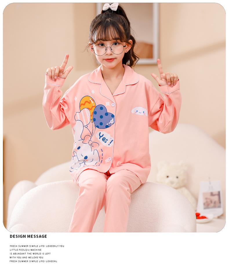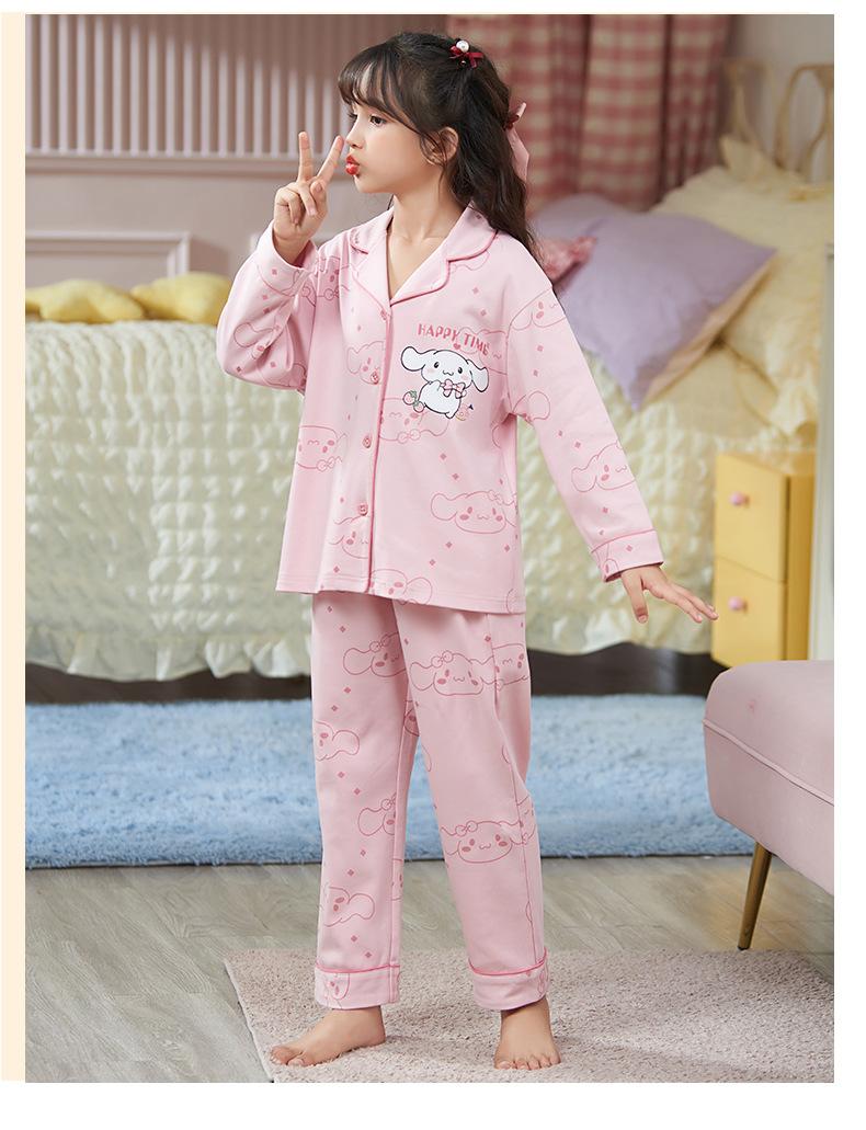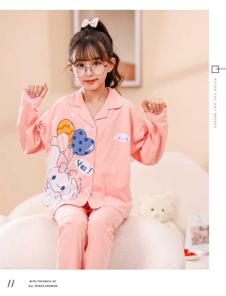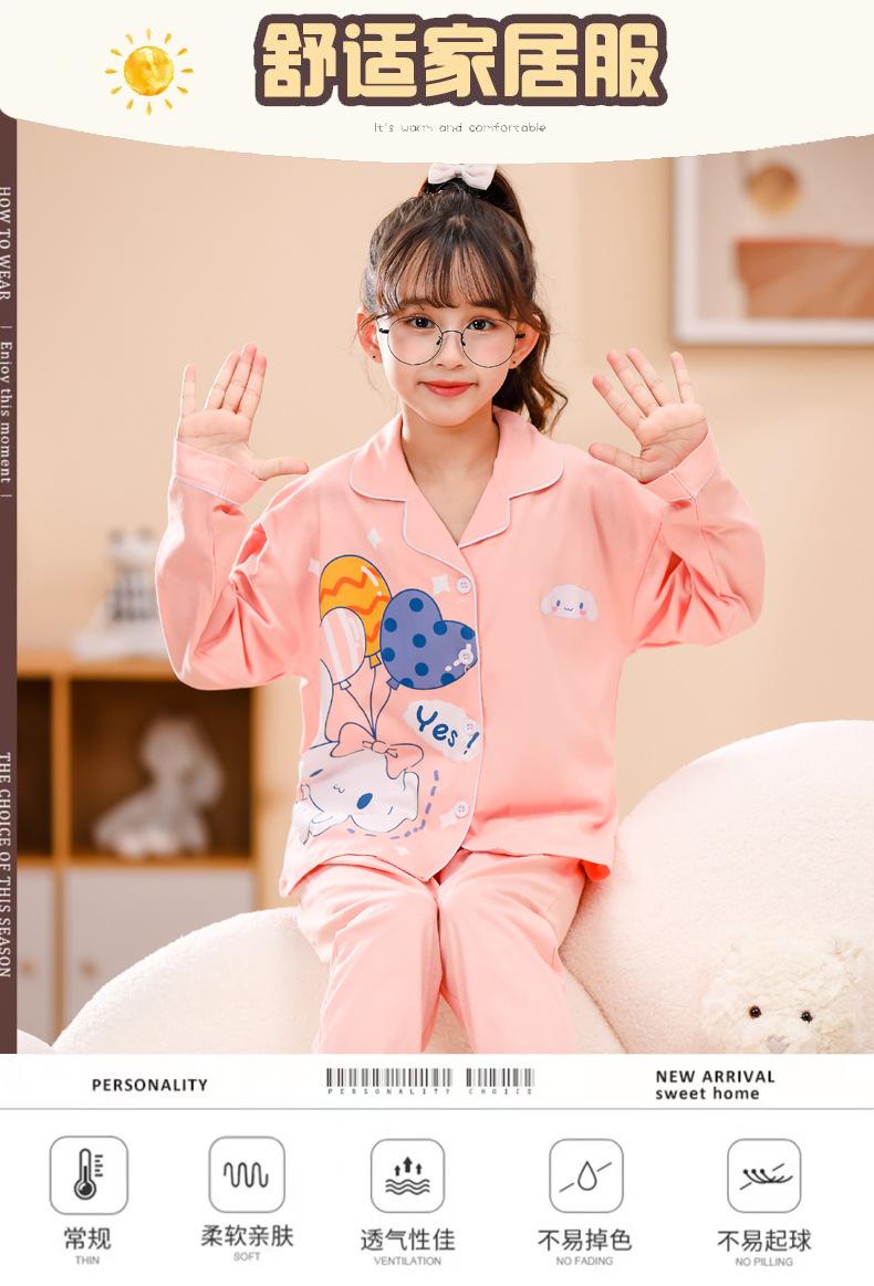 Pijamas nuevos para niñas 2024 Primavera y otoño, de manga larga, de algodón peinado, finos, para niñas, estilo occidental, ropa de casa para niños medianos y grandes