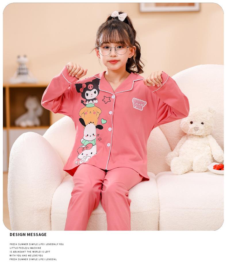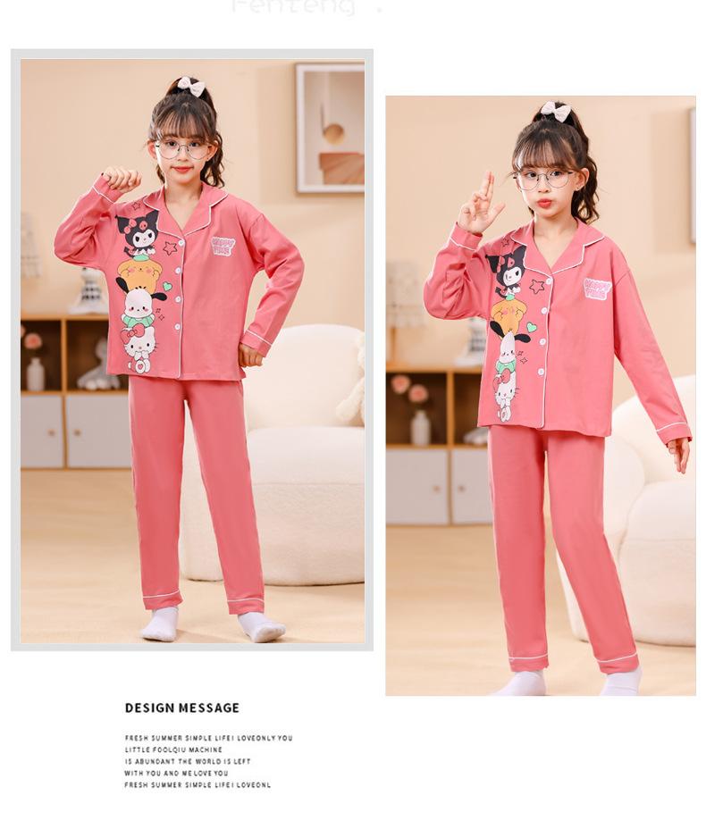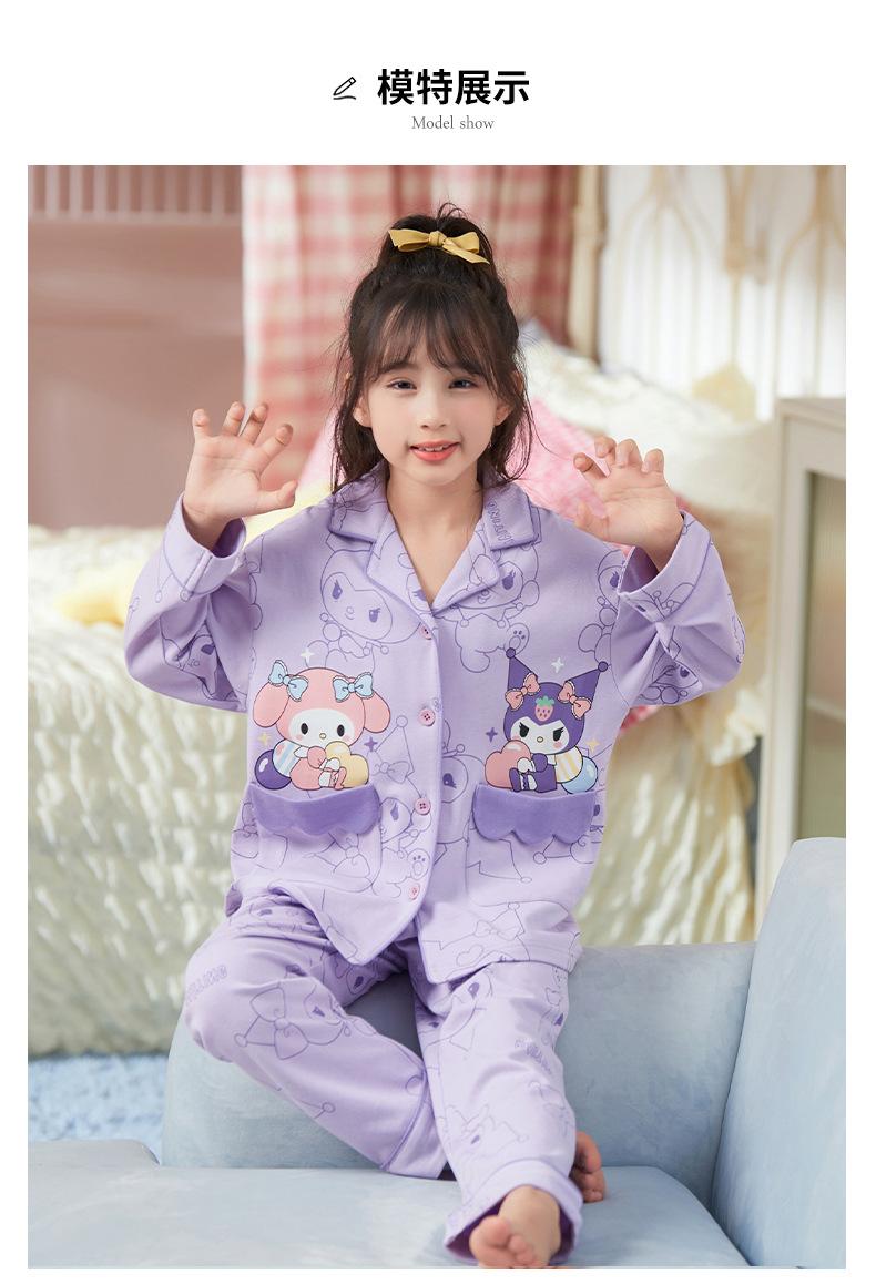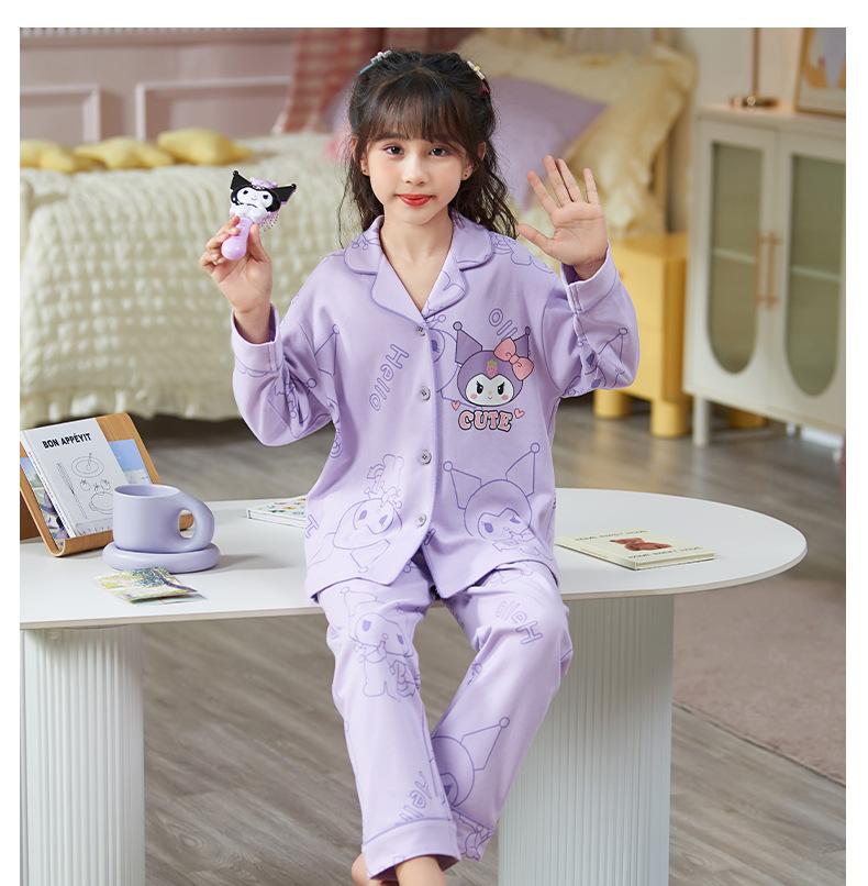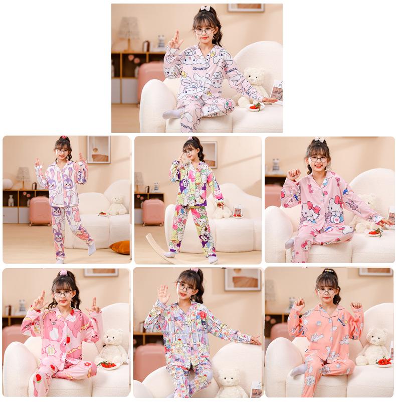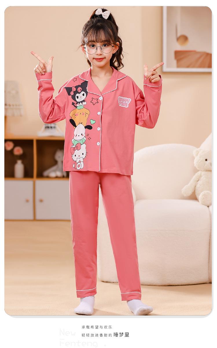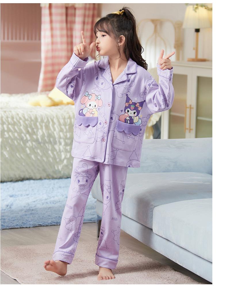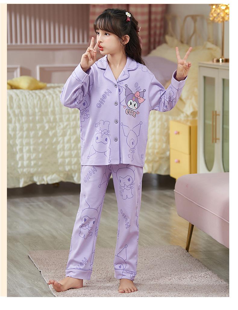 Pijamas nuevos para niñas 2024 Primavera y otoño, de manga larga, de algodón peinado, finos, para niñas, estilo occidental, ropa de casa para niños medianos y grandes