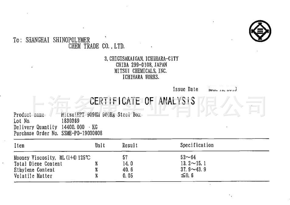 Suministro puntual de caucho de acileno ternario EPDM japonés Mitsui 9090m