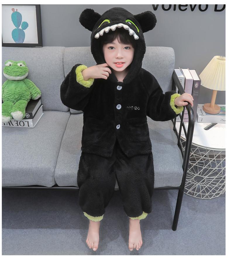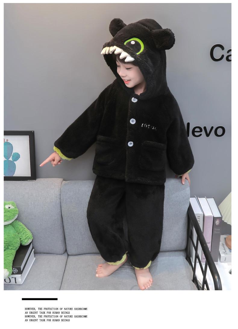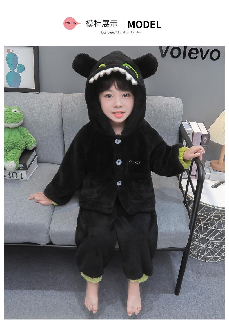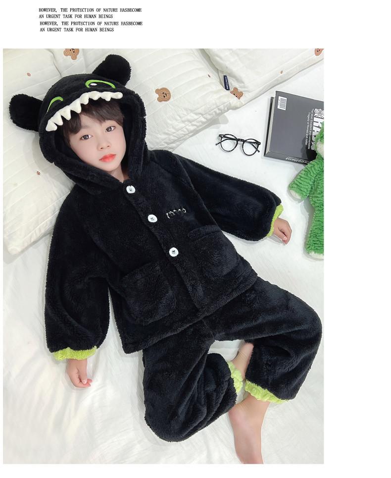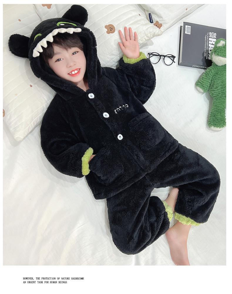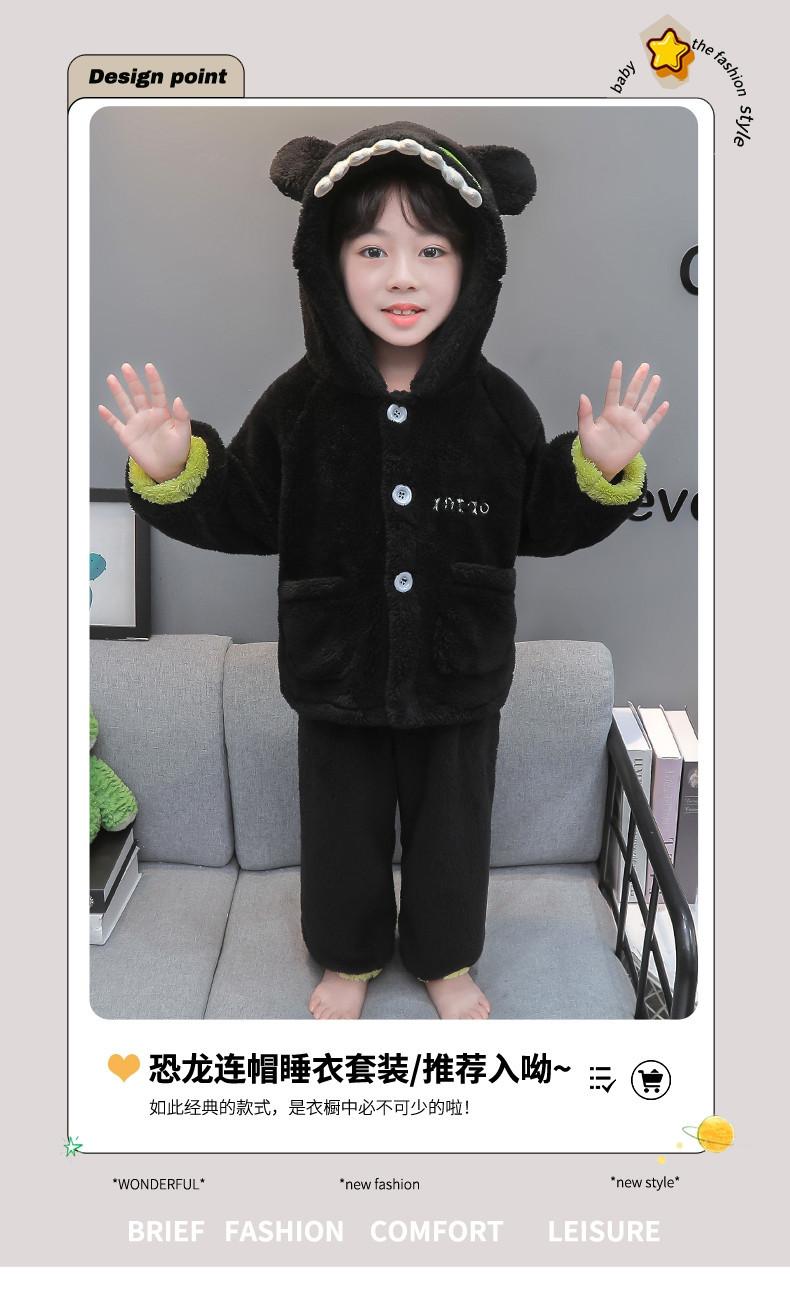 Pijamas de franela de otoño e invierno para niños, novedad de 2024, cárdigan con capucha de dinosaurio para niños, ropa de casa para niñas.