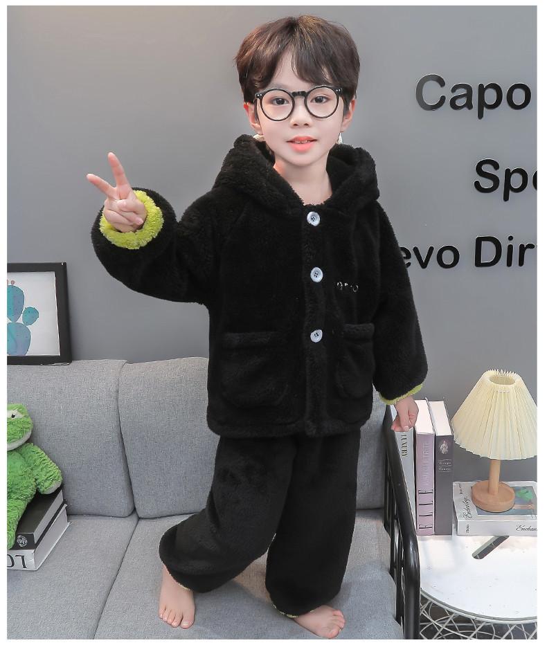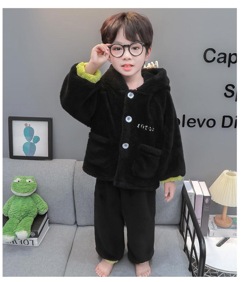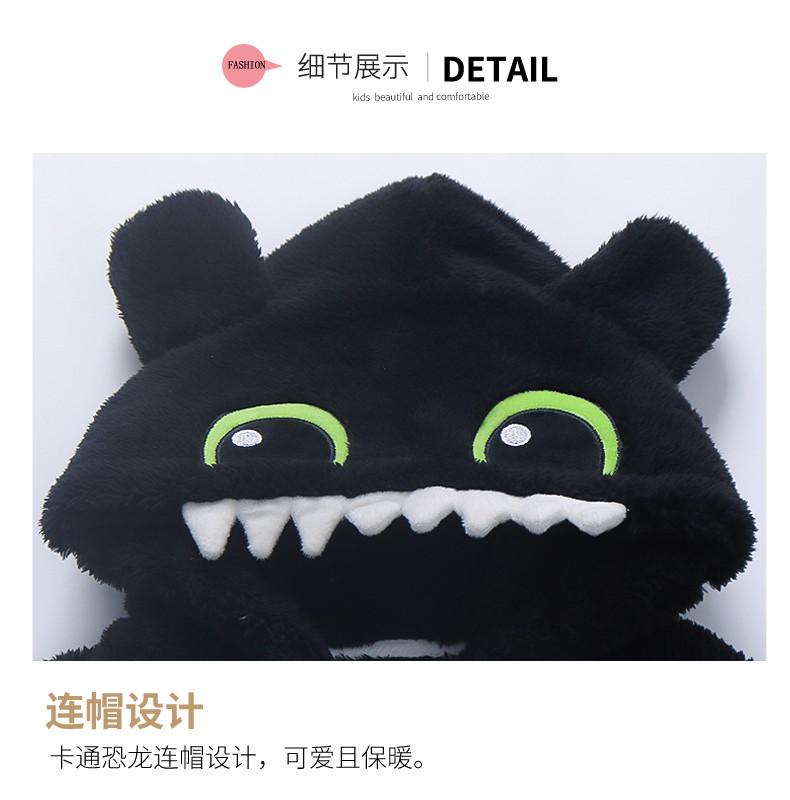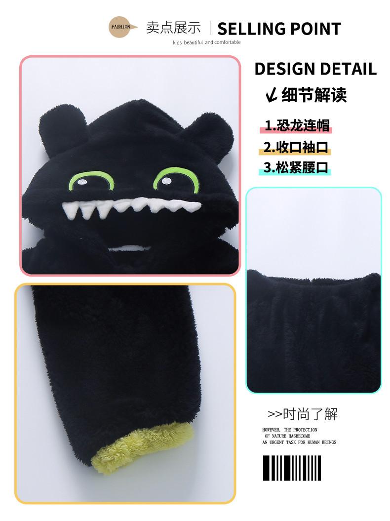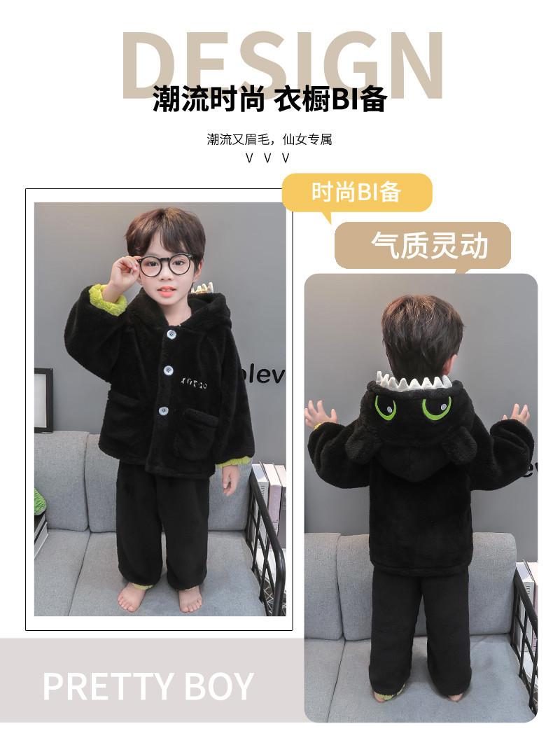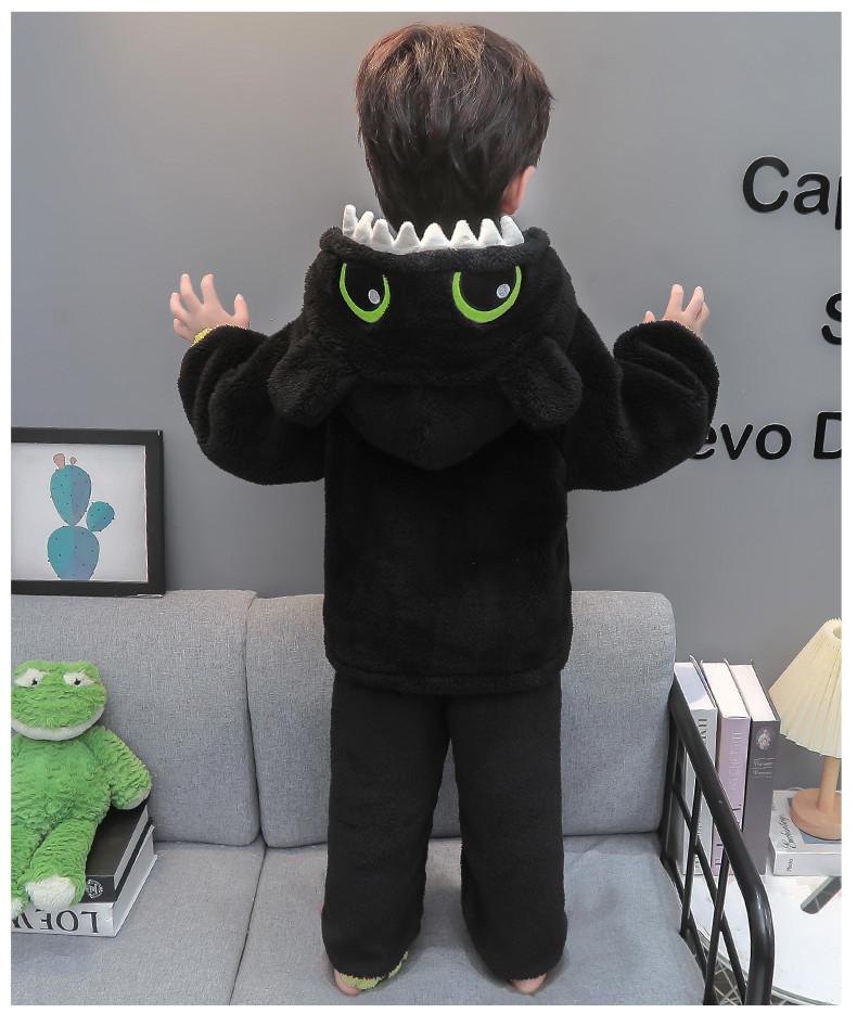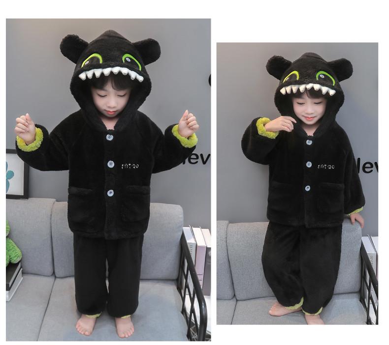 Pijamas de franela de otoño e invierno para niños, novedad de 2024, cárdigan con capucha de dinosaurio para niños, ropa de casa para niñas.