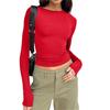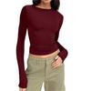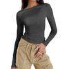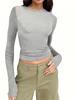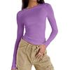 Camiseta informal y cómoda de manga larga con cuello redondo y combinable para mujer europea y americana, de color liso, ajustada, para primavera y otoño.