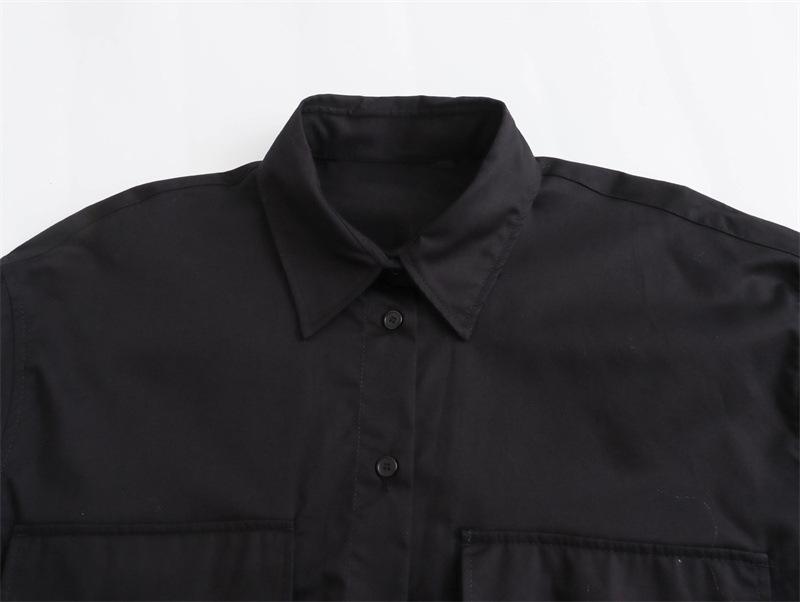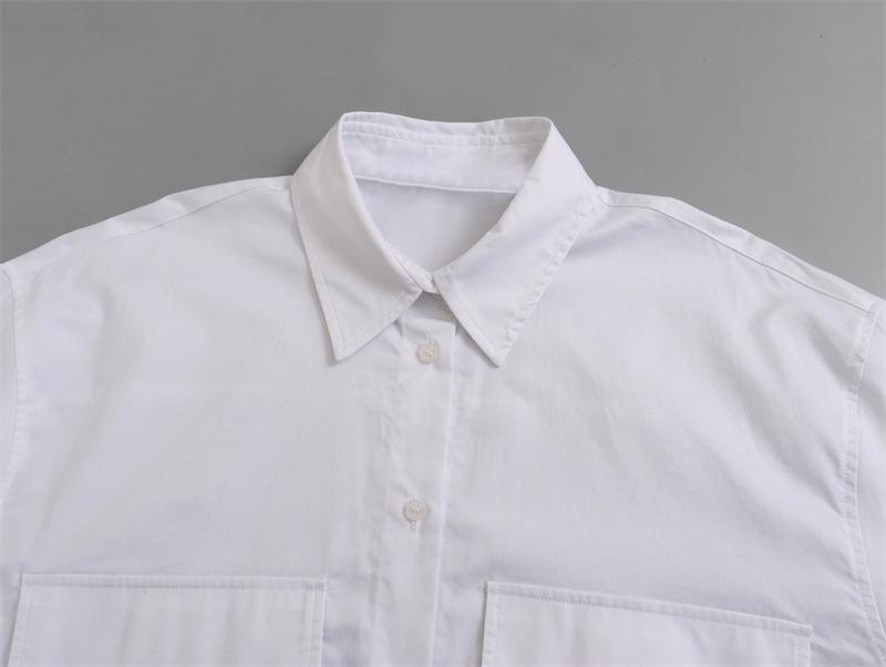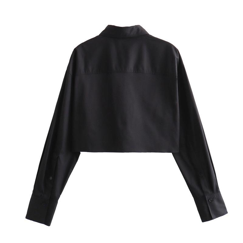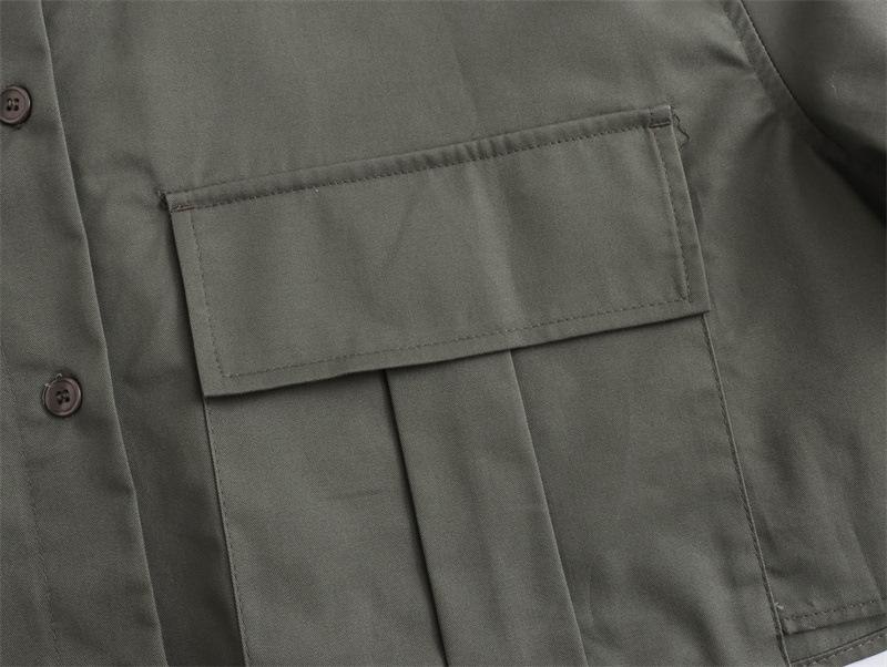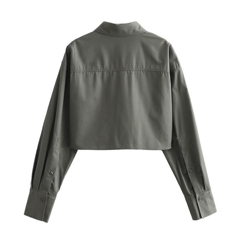 Ropa de mujer nueva de otoño 2023, camisa americana de manga larga corta a la moda con bolsillo superior informal pequeño