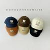 Gorra de pana para niños de estilo informal, con visera corta y diseño de oso de dibujos animados.