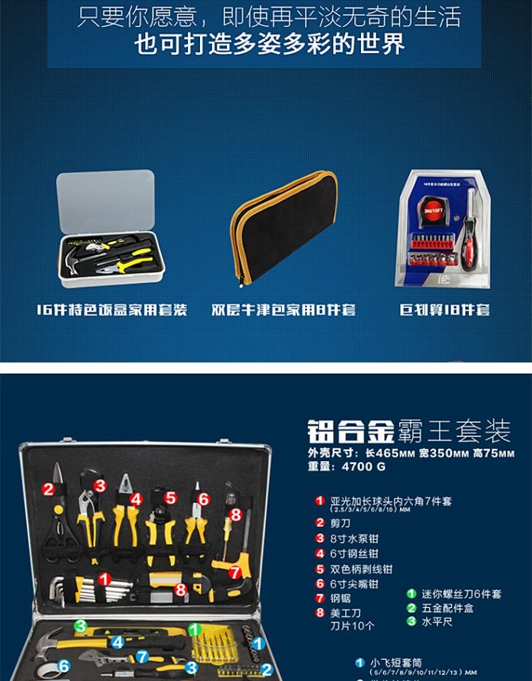 Caja de herramientas multifuncional para el hogar, juego de herramientas para reparación diaria de electrodomésticos, conjunto de mantenimiento combinado, caja de herramientas de hardware