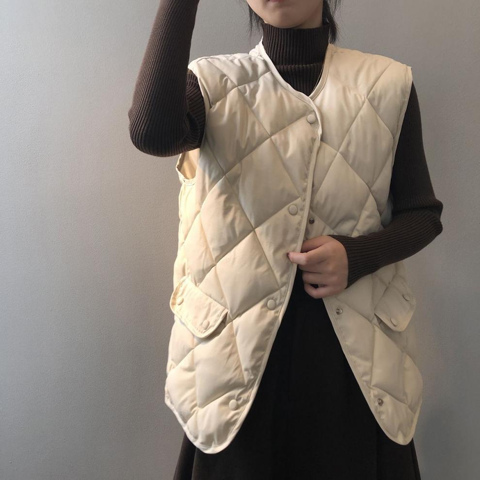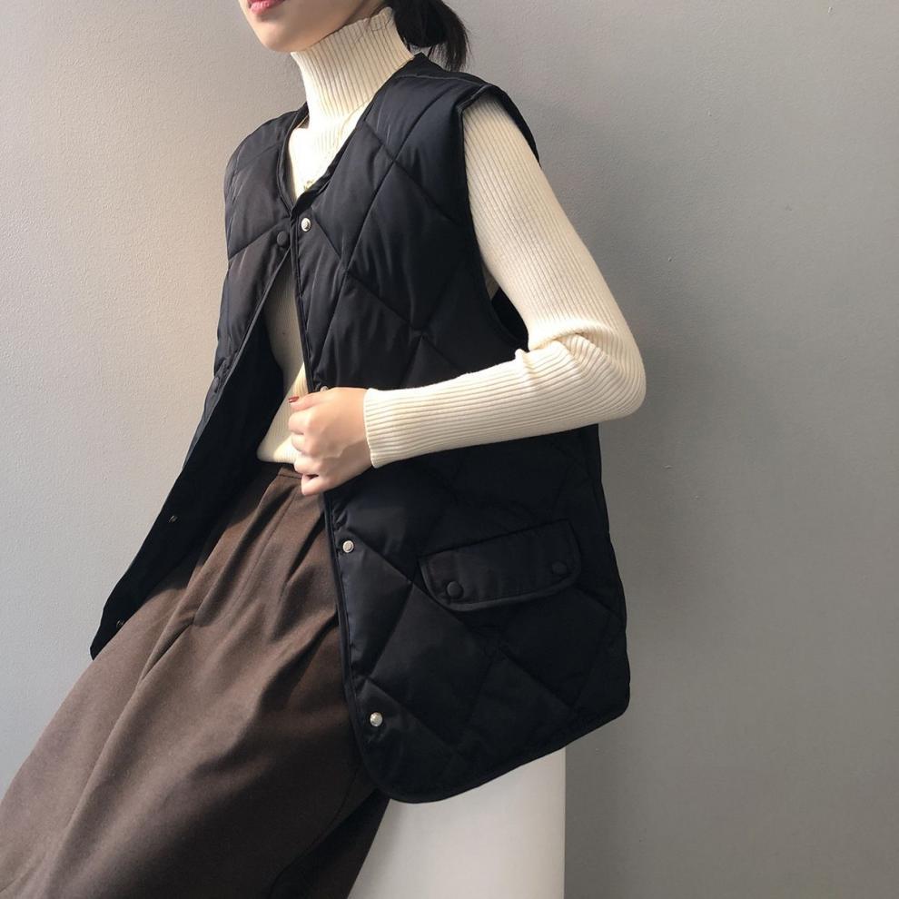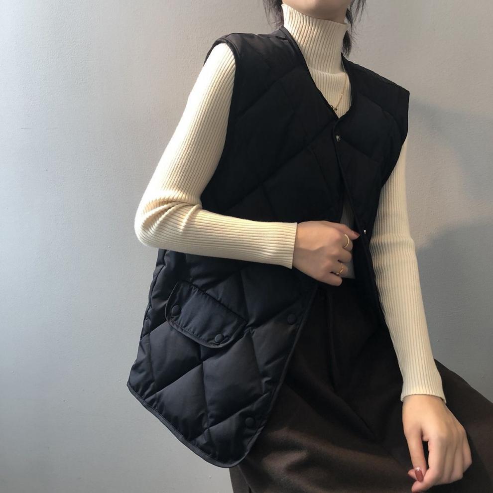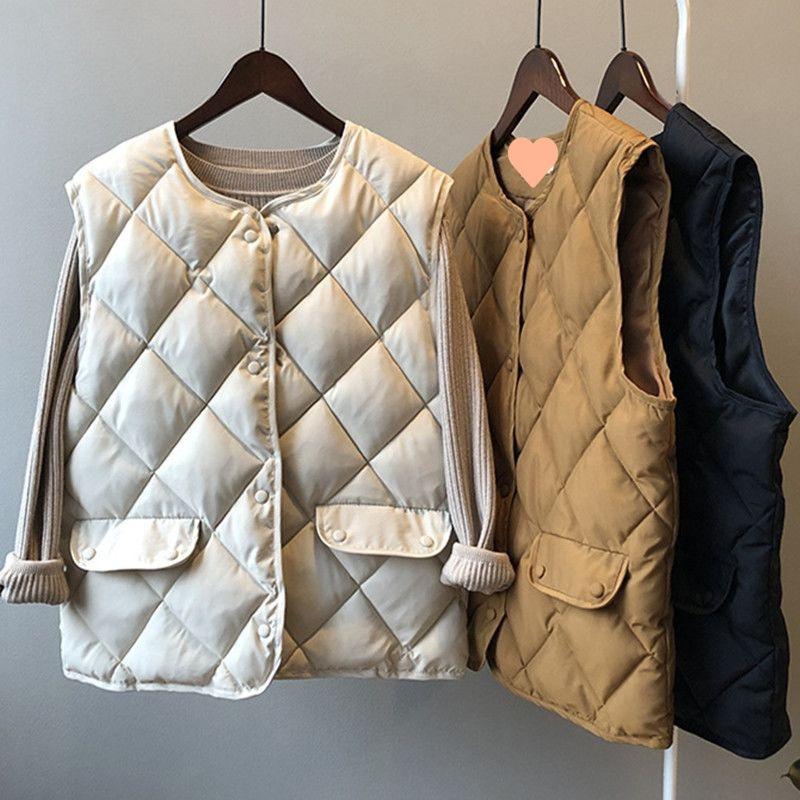 Chaleco de algodón de otoño e invierno para mujer, chaleco corto de algodón con cuadros rombales, chaqueta acolchada de algodón, ropa exterior, chaleco de estilo coreano que combina con todo.