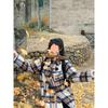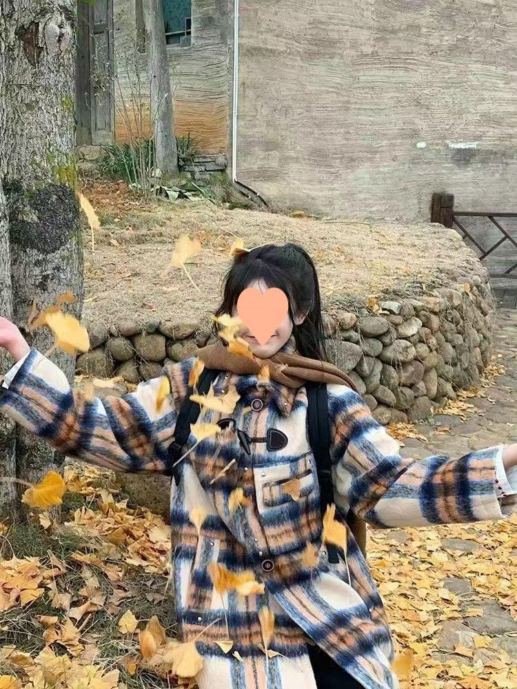 Abrigo Casual Versátil de Lana a Cuadros con Botones de Cuerno 2025 Otoño e Invierno Diseño Retro Nicho Abrigo de Lana de Largo Medio