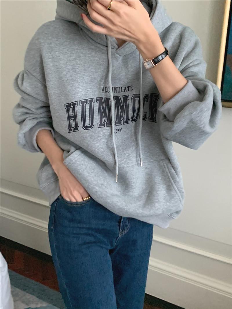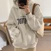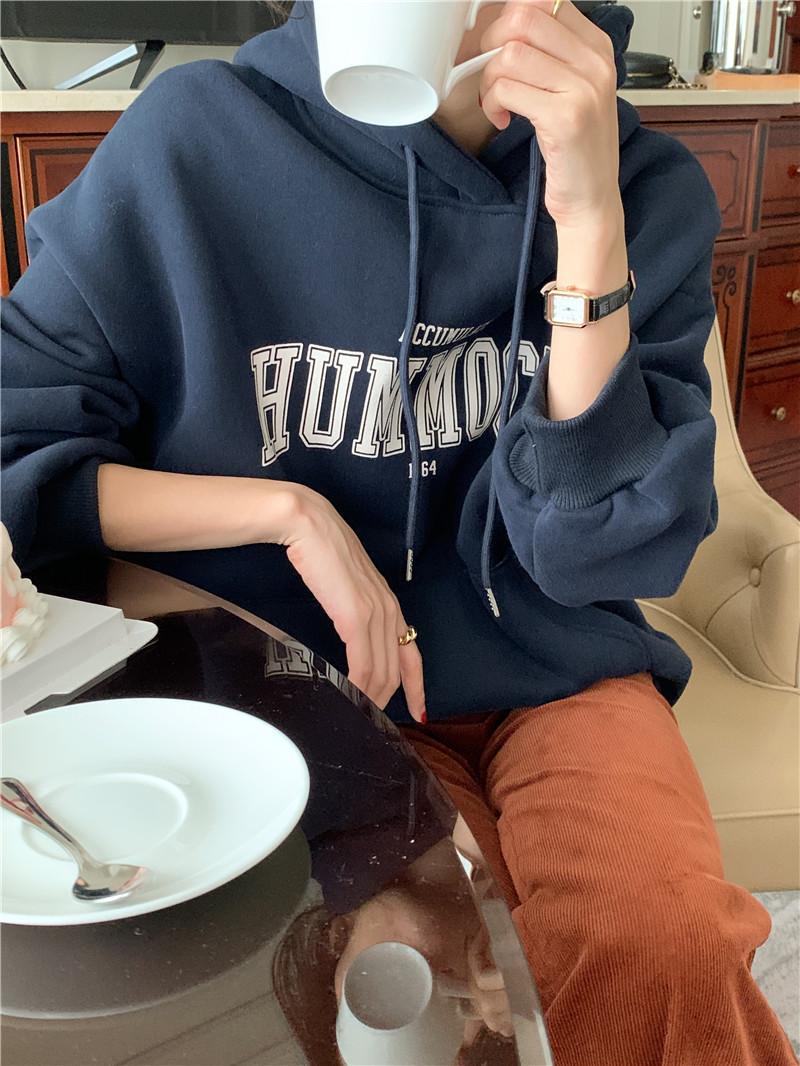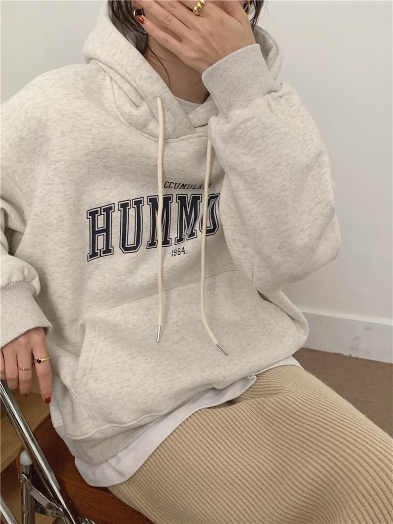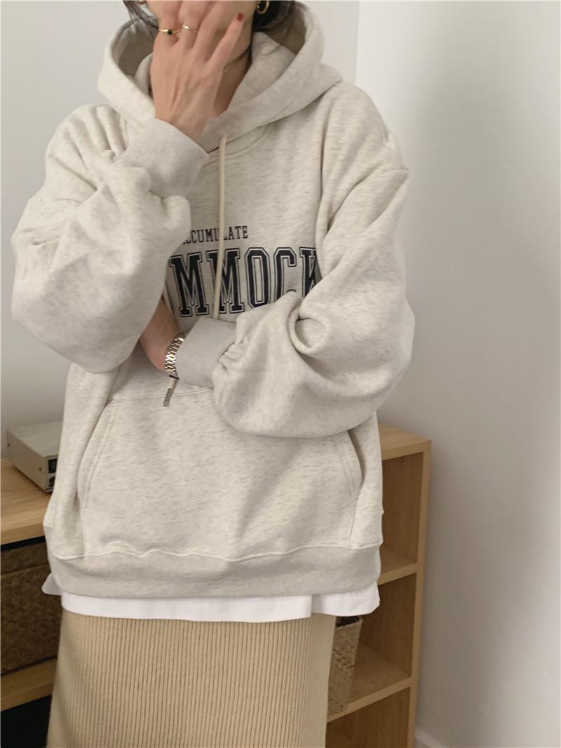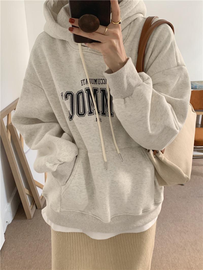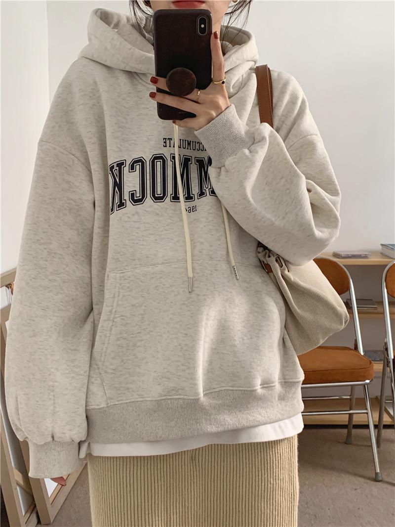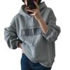 Suéter con capucha estampado de moda con forro polar de 190 g para mujer, chaqueta informal holgada de terciopelo grueso estilo perezoso para estudiantes