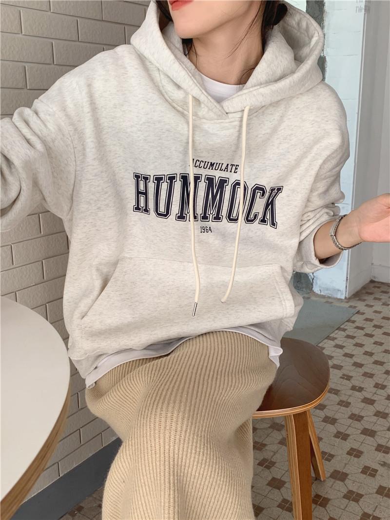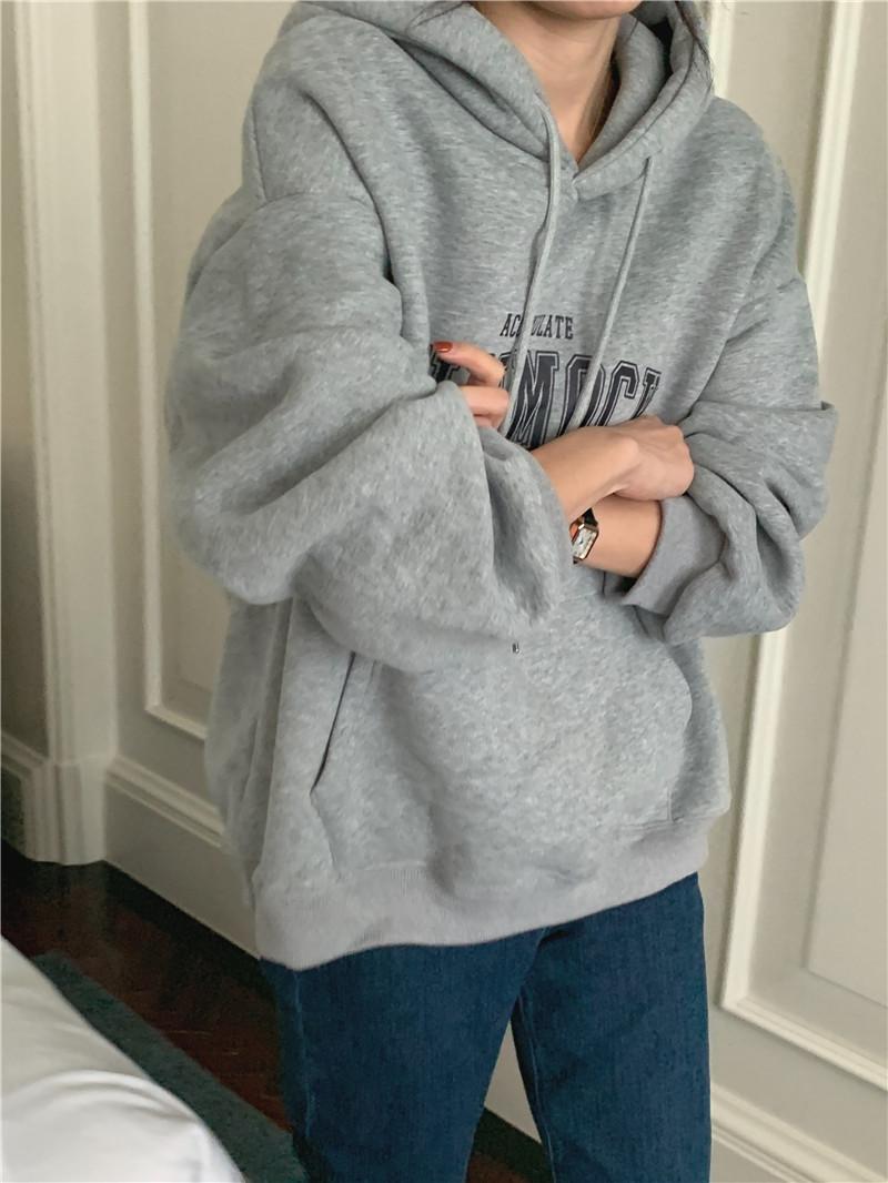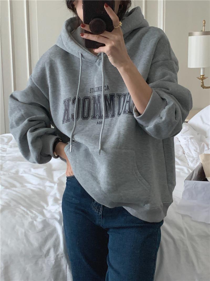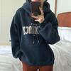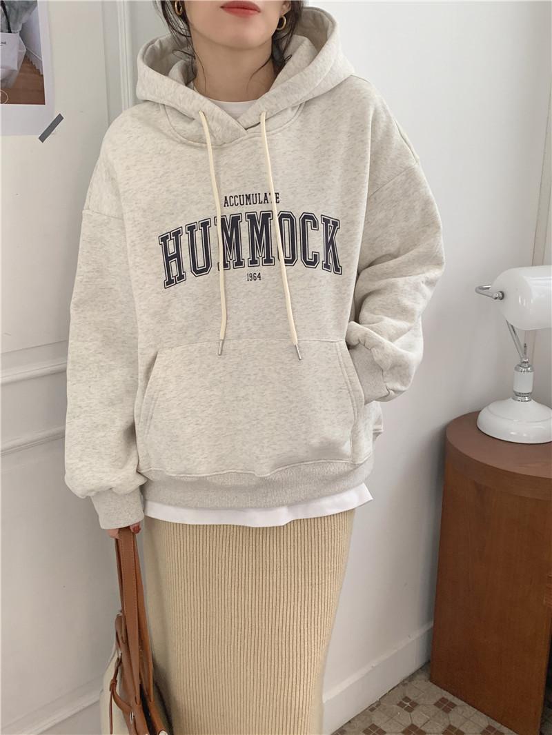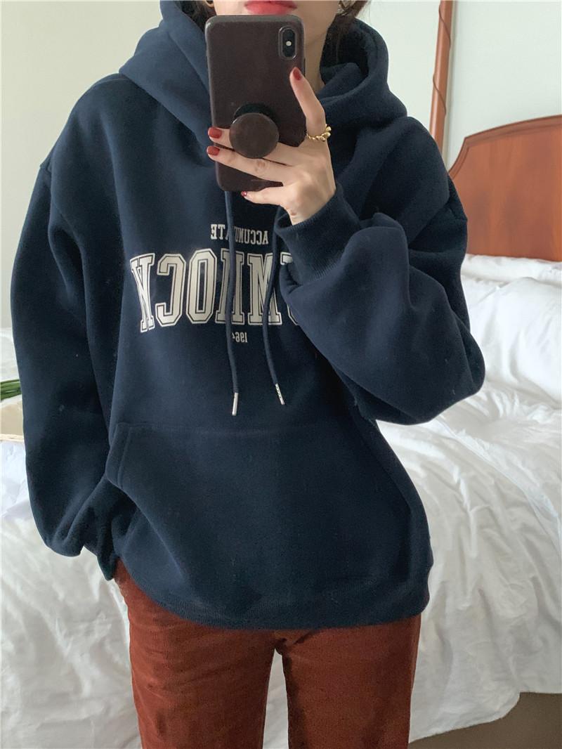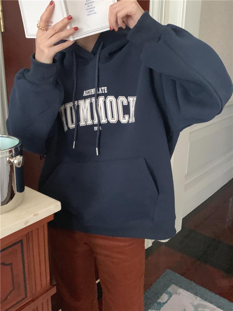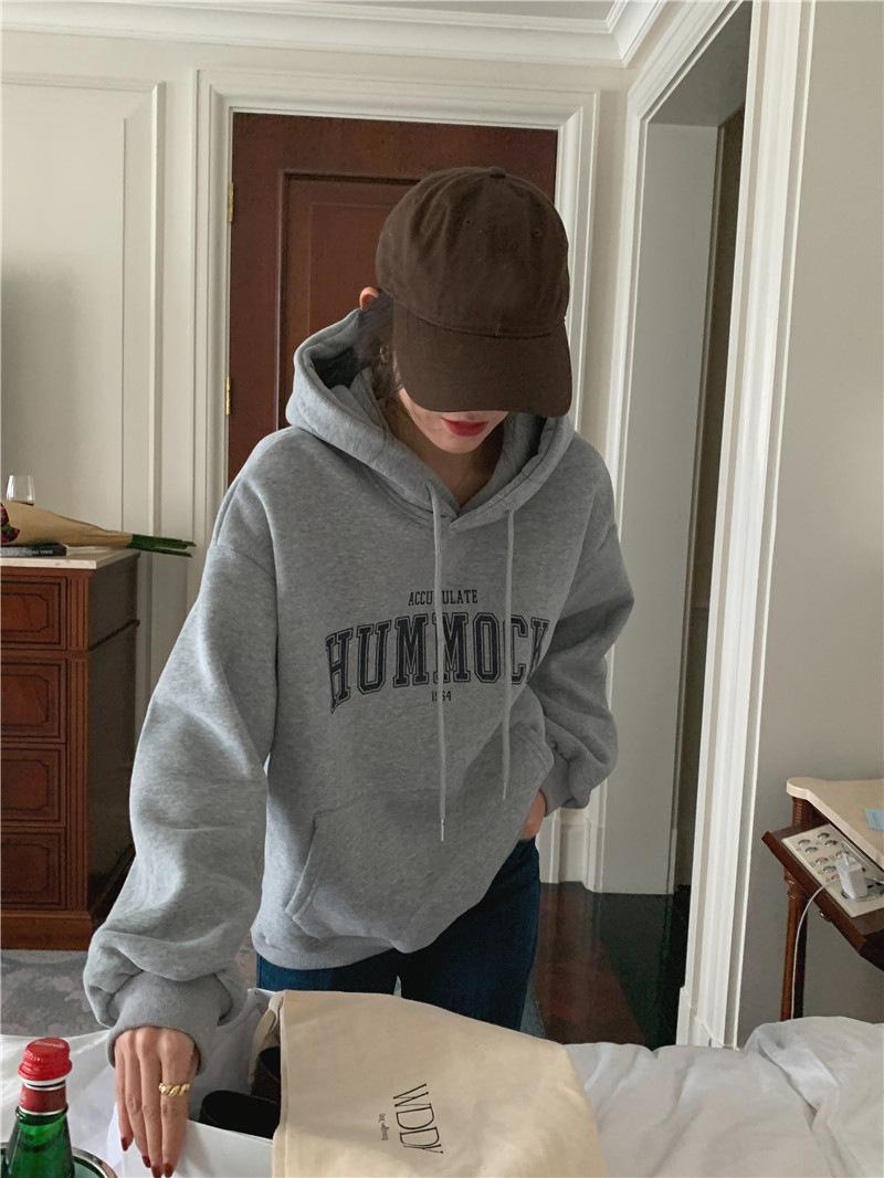 Suéter con capucha estampado de moda con forro polar de 190 g para mujer, chaqueta informal holgada de terciopelo grueso estilo perezoso para estudiantes