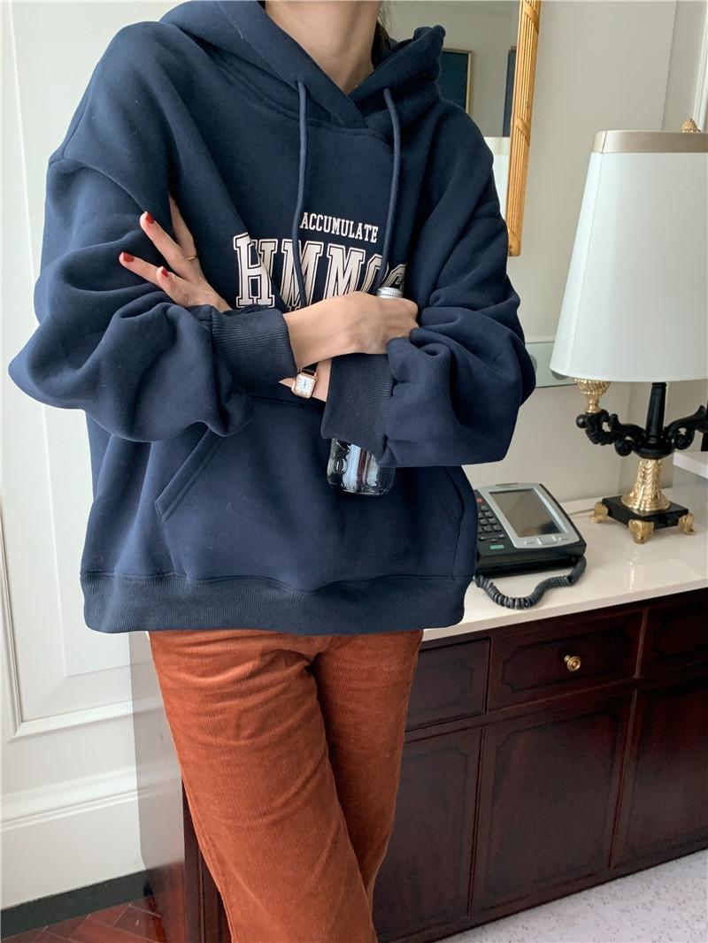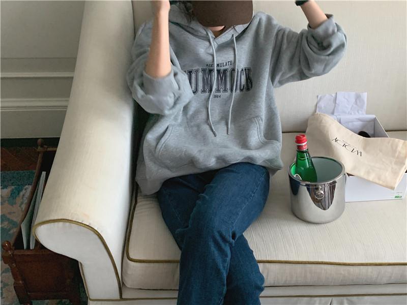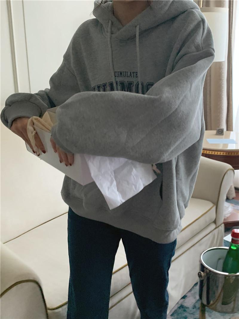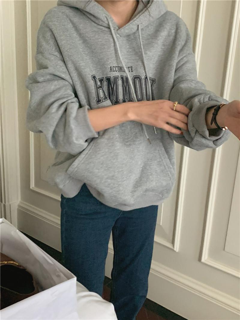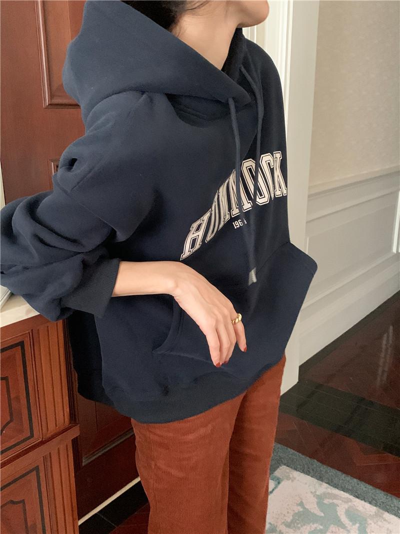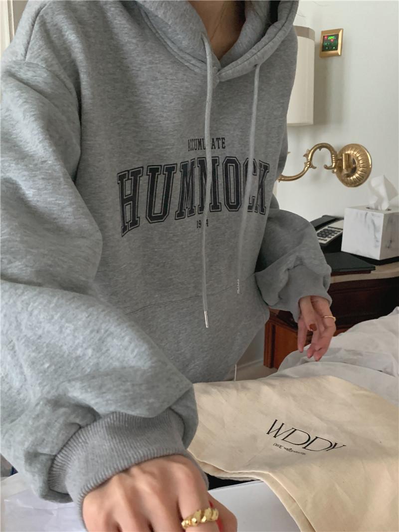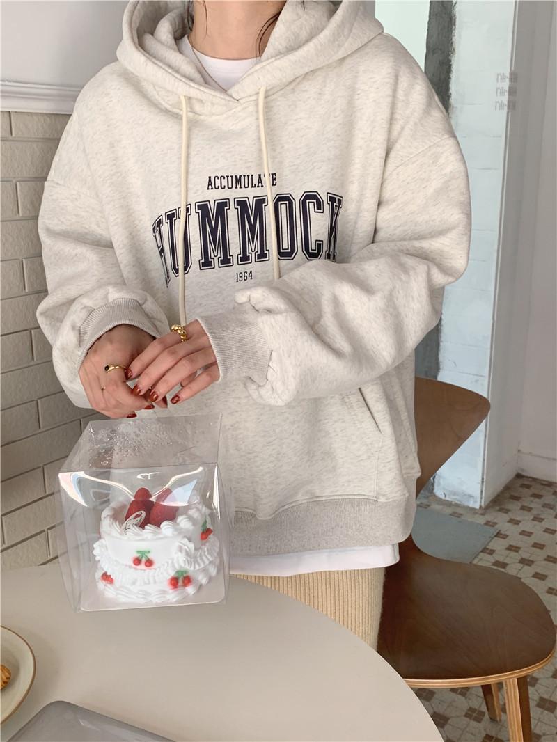 Suéter con capucha estampado de moda con forro polar de 190 g para mujer, chaqueta informal holgada de terciopelo grueso estilo perezoso para estudiantes