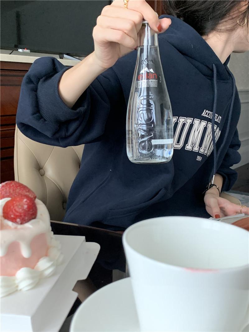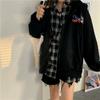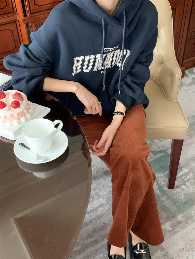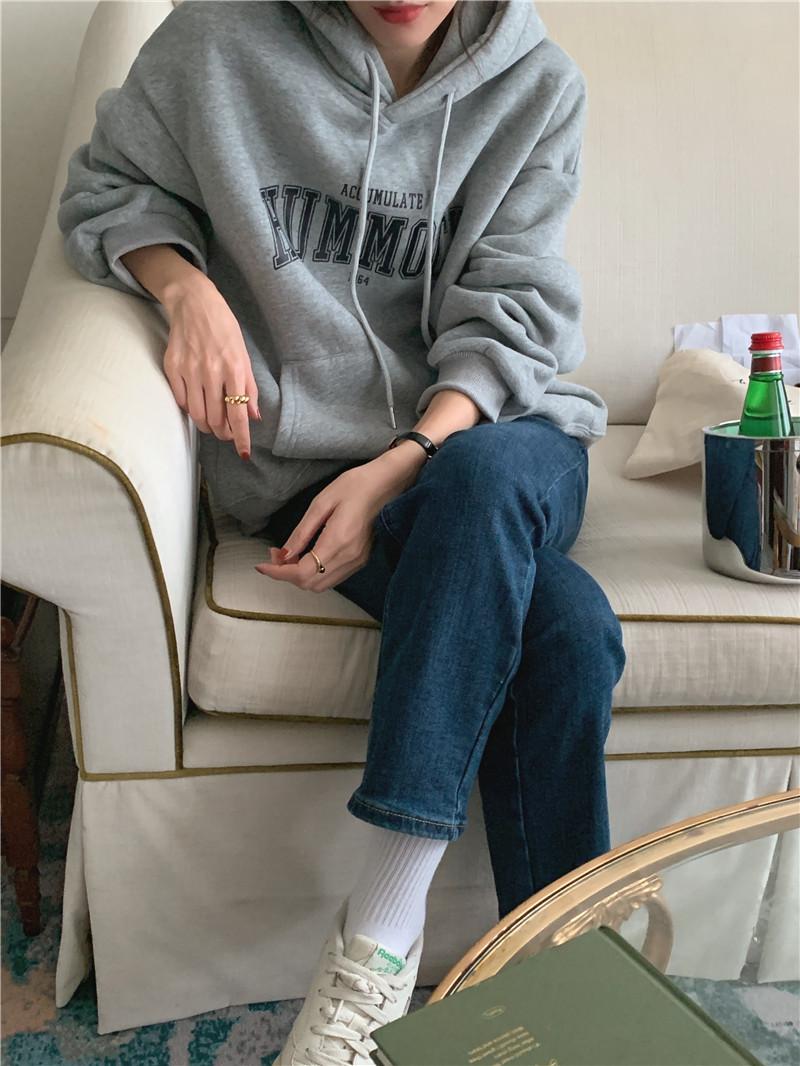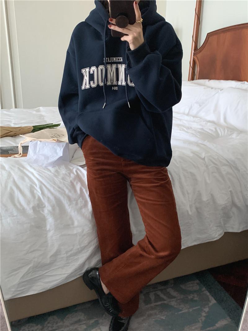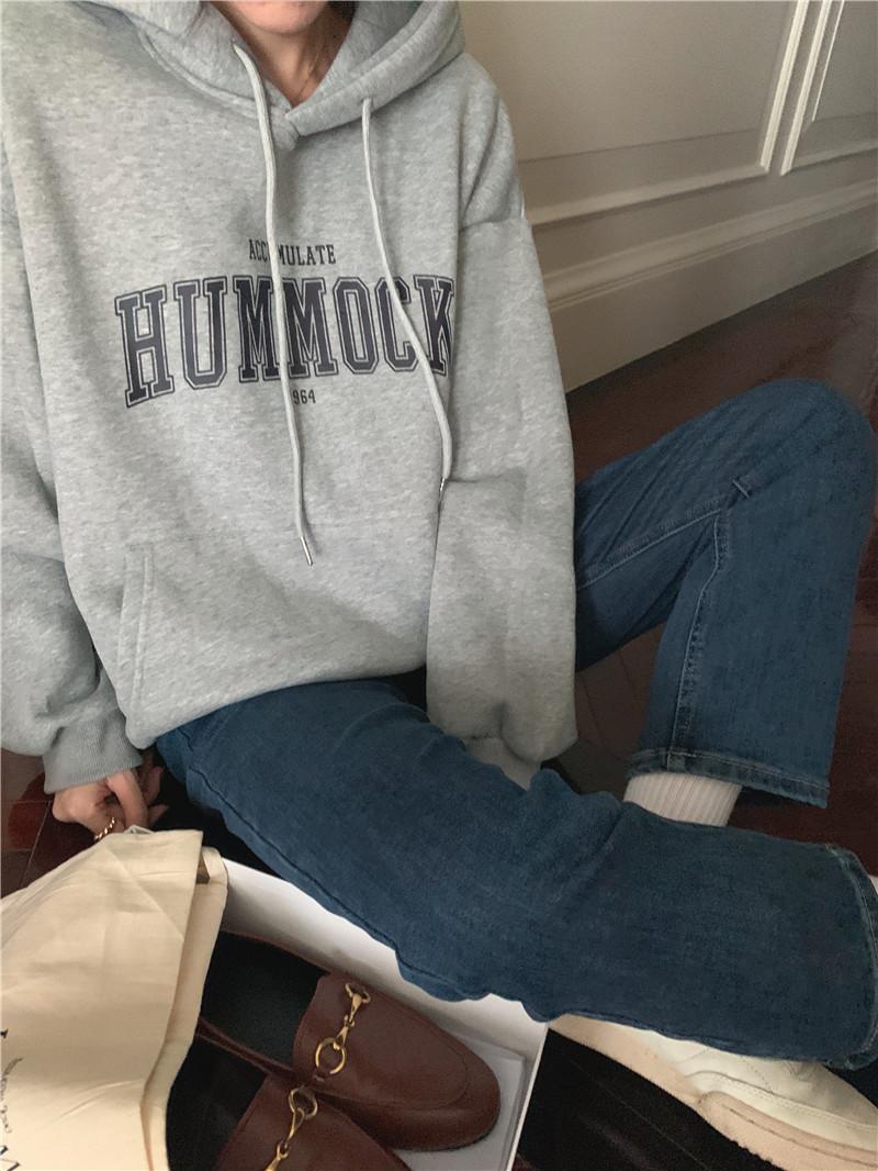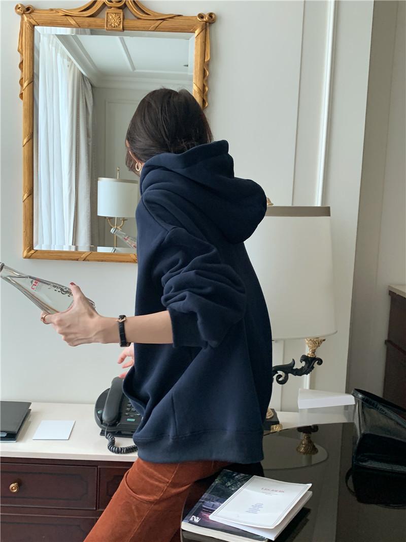 Suéter con capucha estampado de moda con forro polar de 190 g para mujer, chaqueta informal holgada de terciopelo grueso estilo perezoso para estudiantes