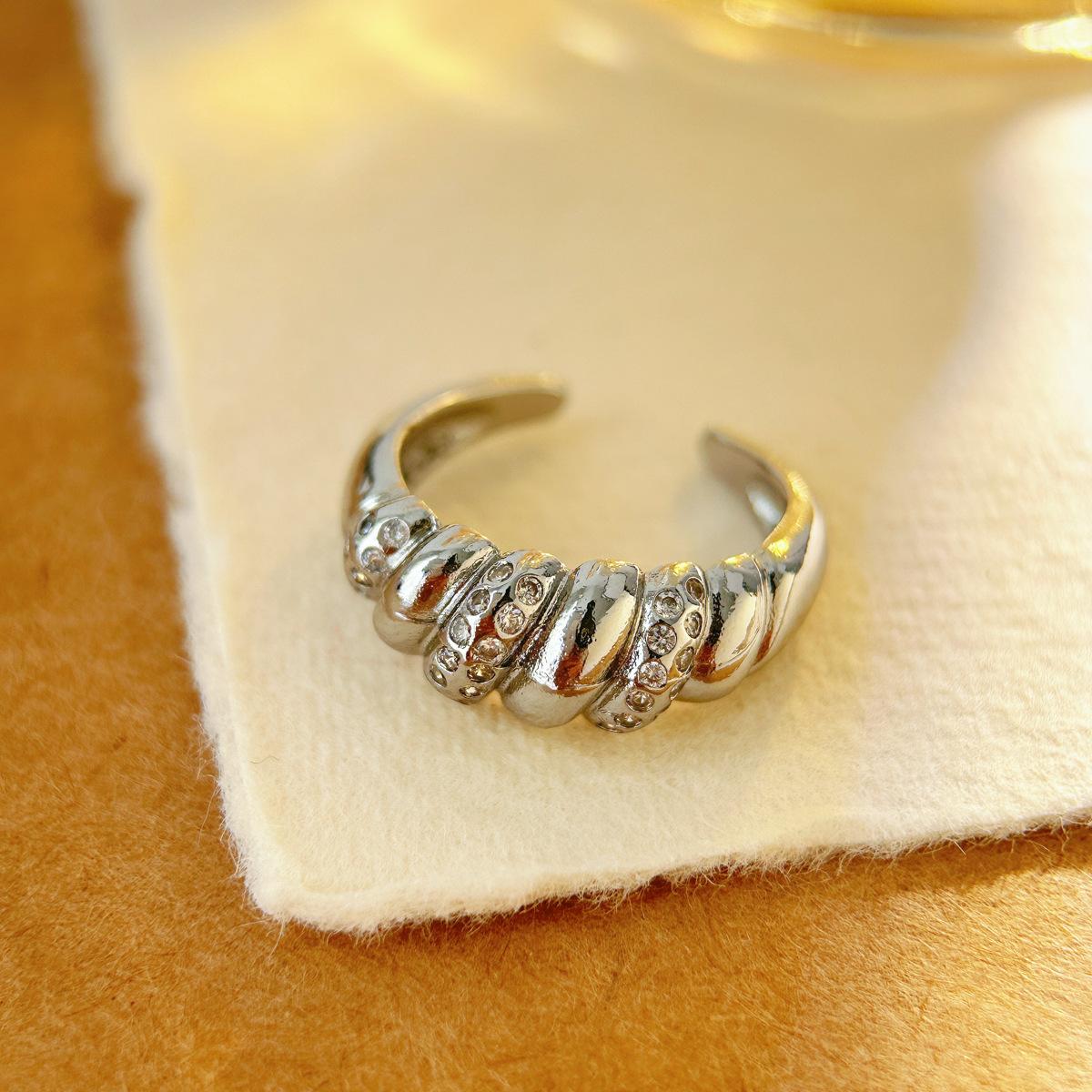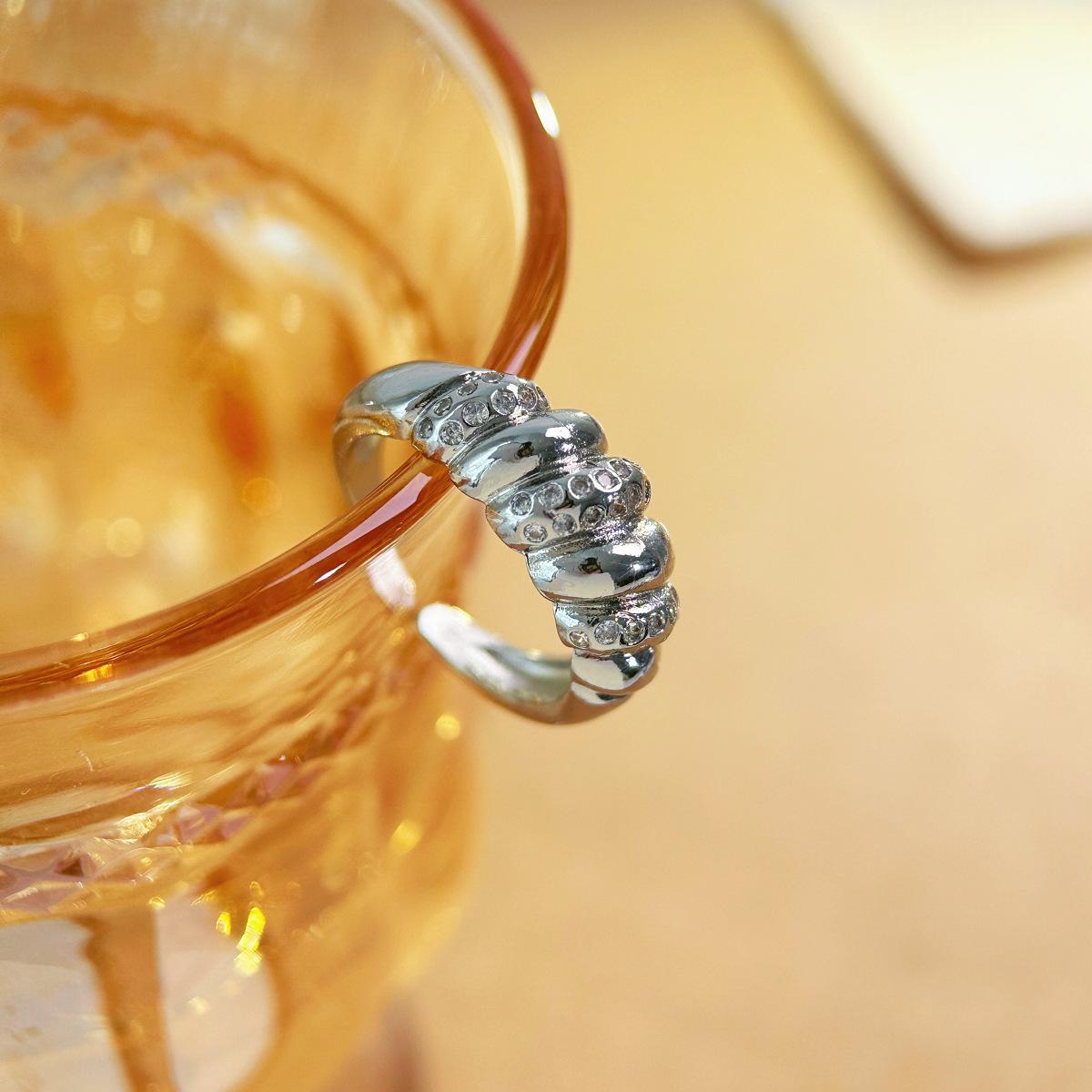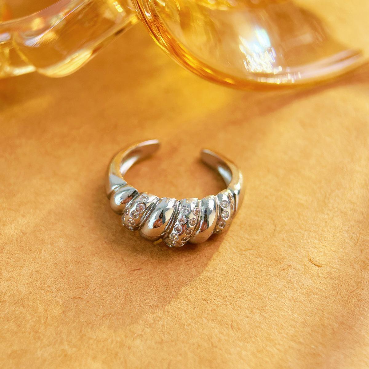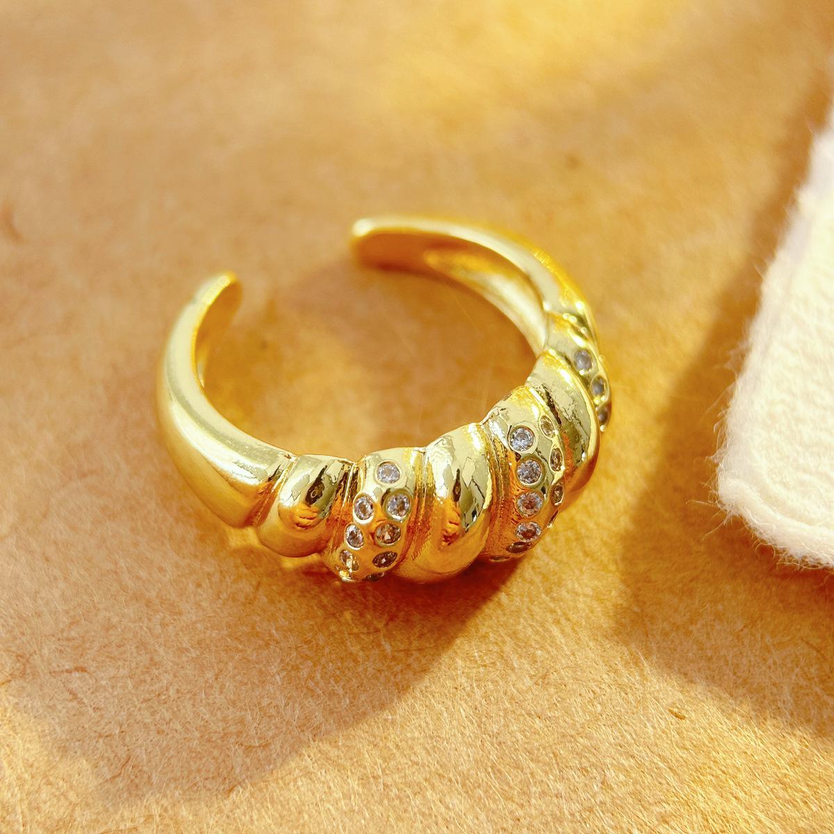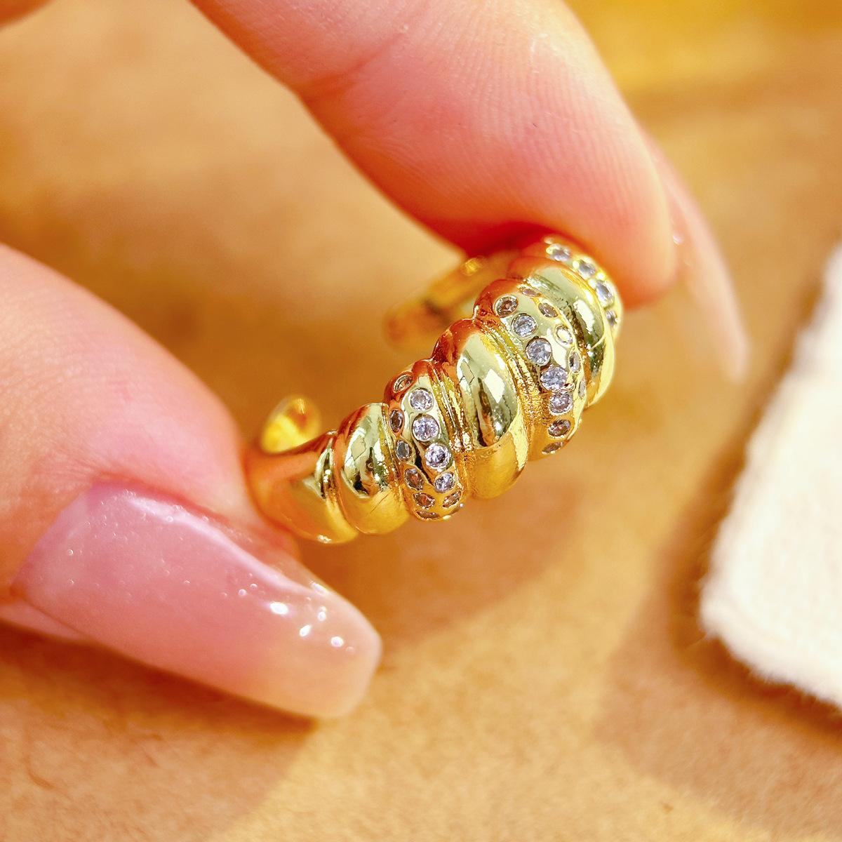 Pulsera Europea y Americana con Anillo de Zircón Diseño Envolvente de Línea Torcida Anillo Distintivo para Mujer Anillo de Cola Chapado en Oro
