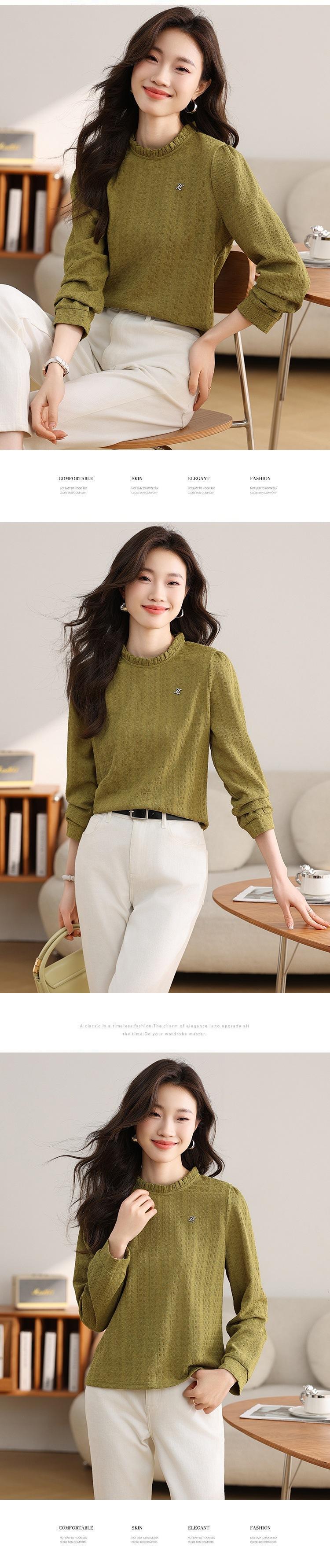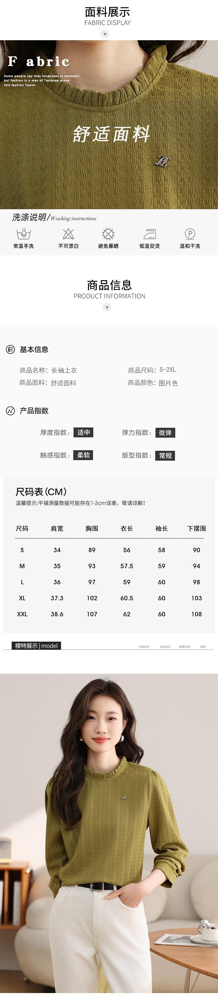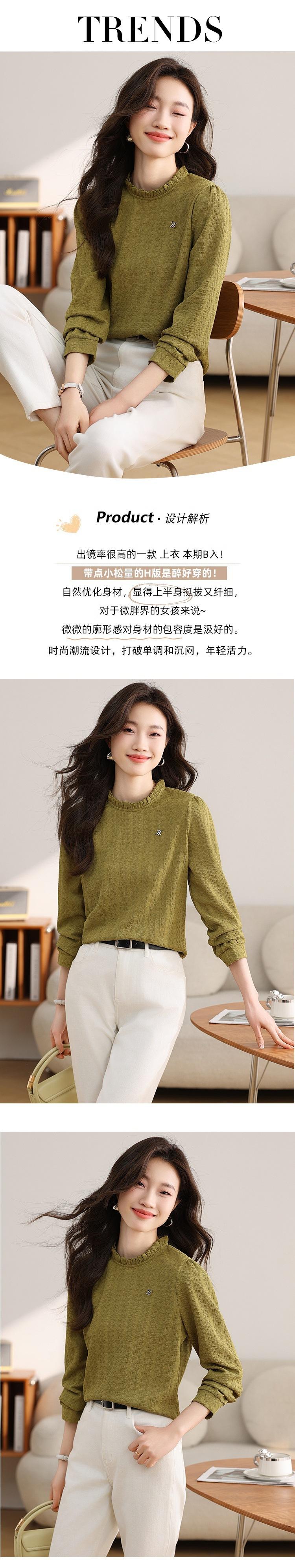 Camisa de moda con textura de orejas de madera que combina con todo, primavera 2024, nueva y elegante camisa que adelgaza los hombros y cubre la carne.