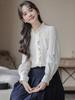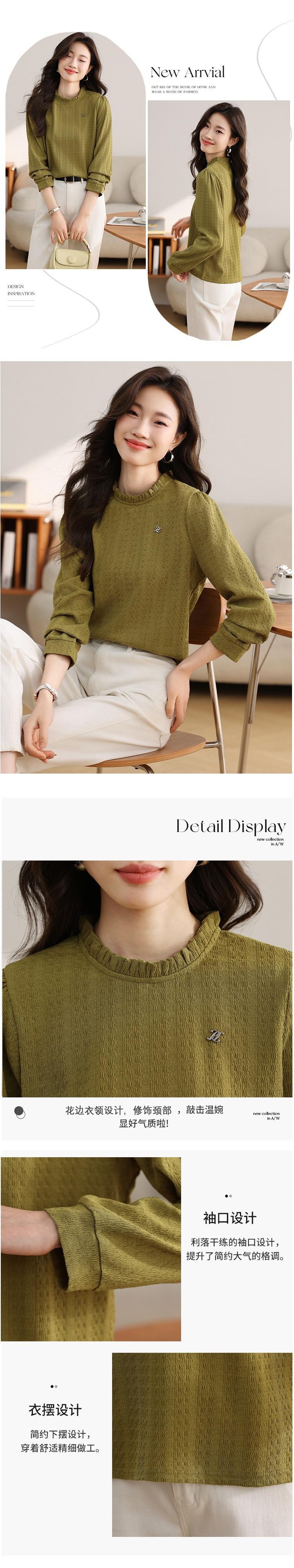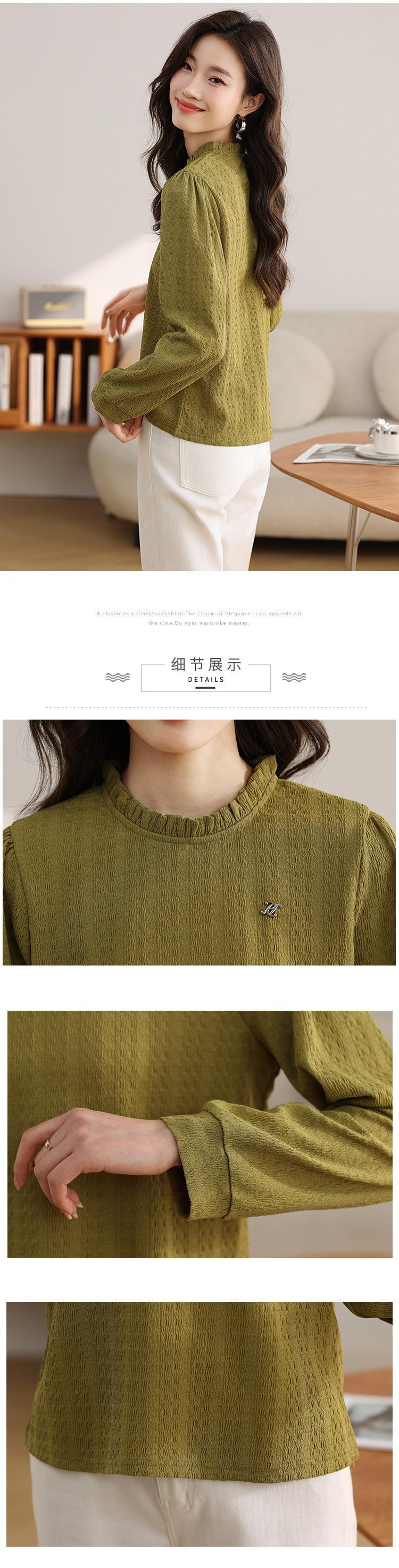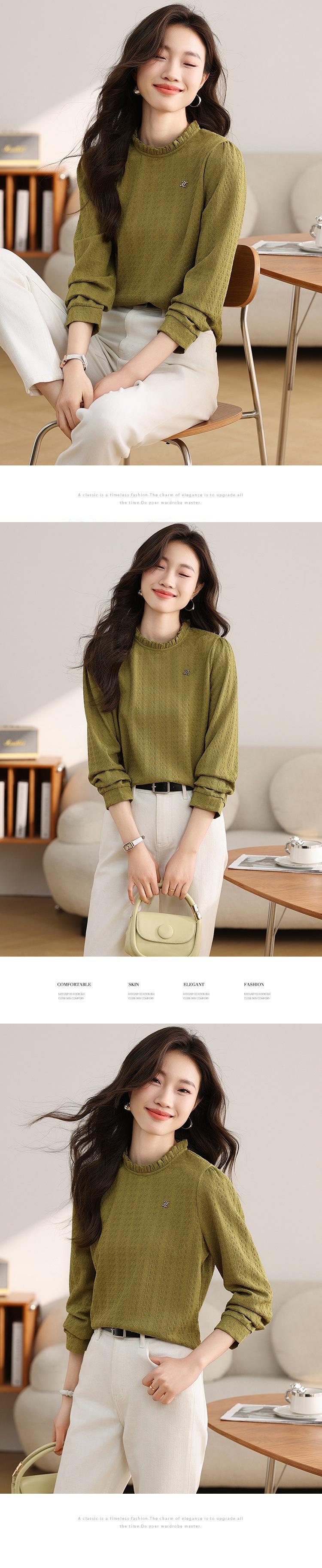 Camisa de moda con textura de orejas de madera que combina con todo, primavera 2024, nueva y elegante camisa que adelgaza los hombros y cubre la carne.