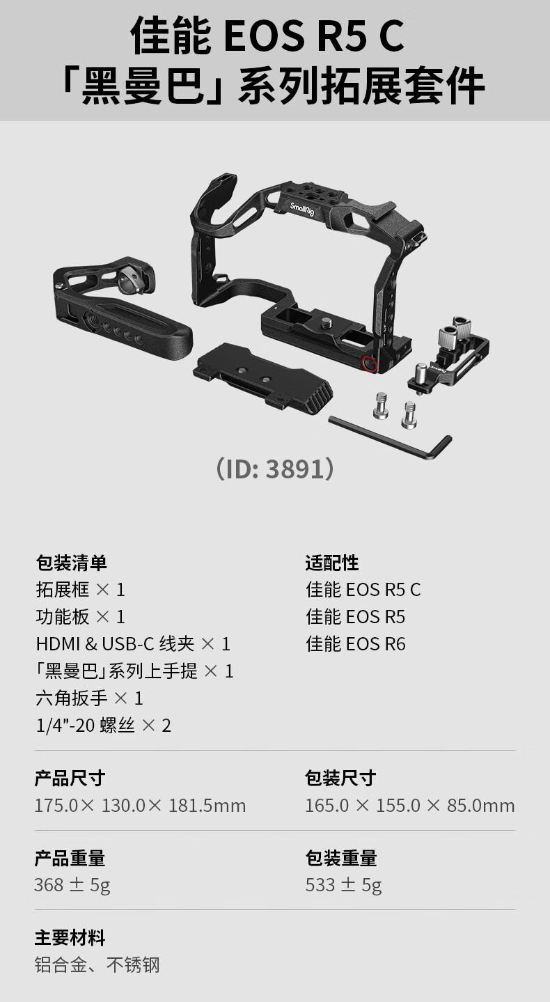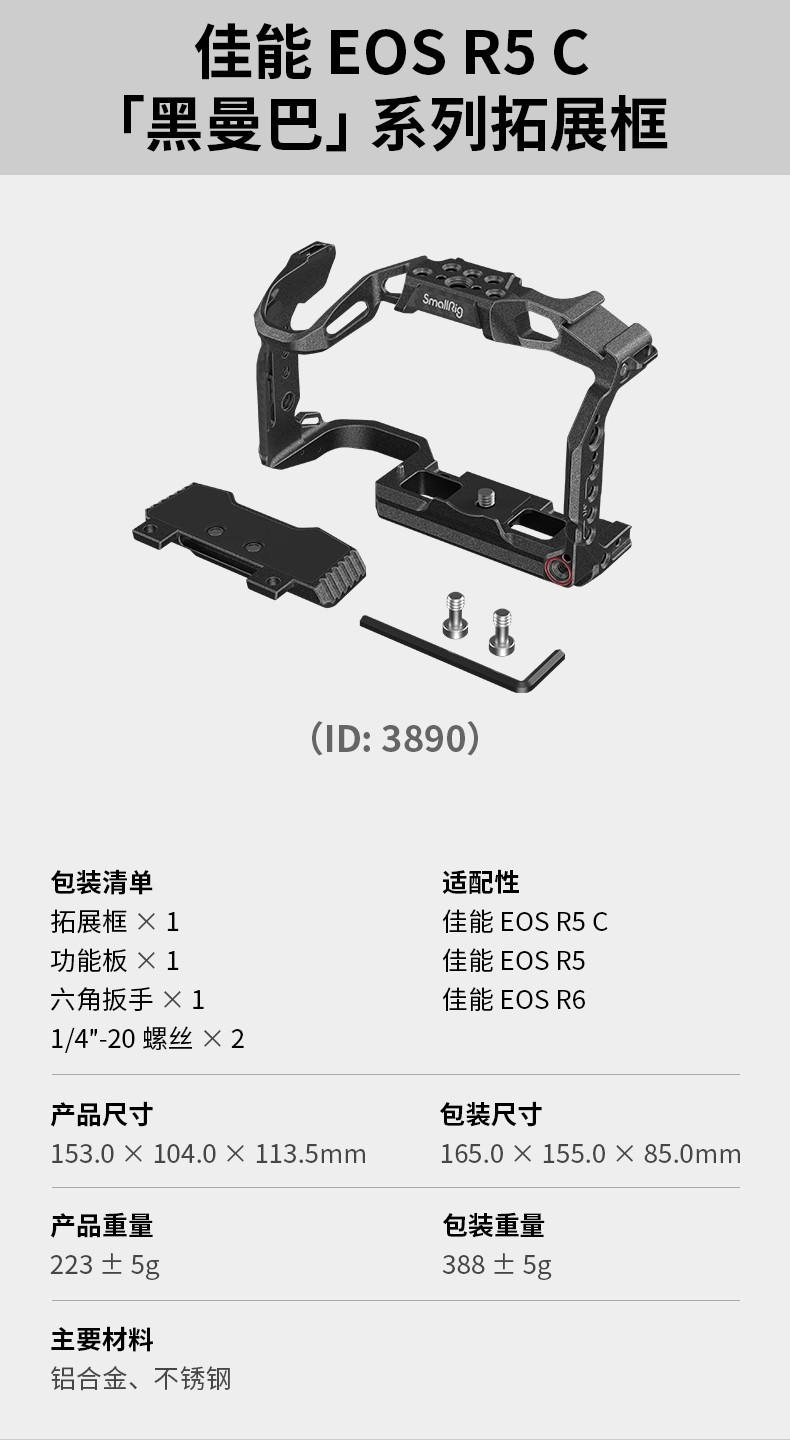 Humo (Plataforma pequeña) Adecuado para cámara SLR micro EOS R5C, jaula de conejo, funda de expansión Black Mamba