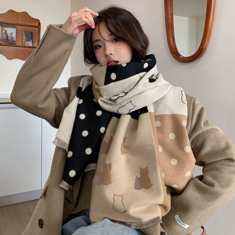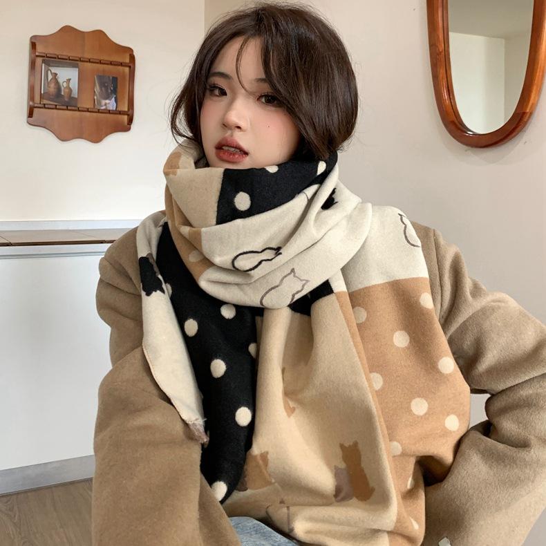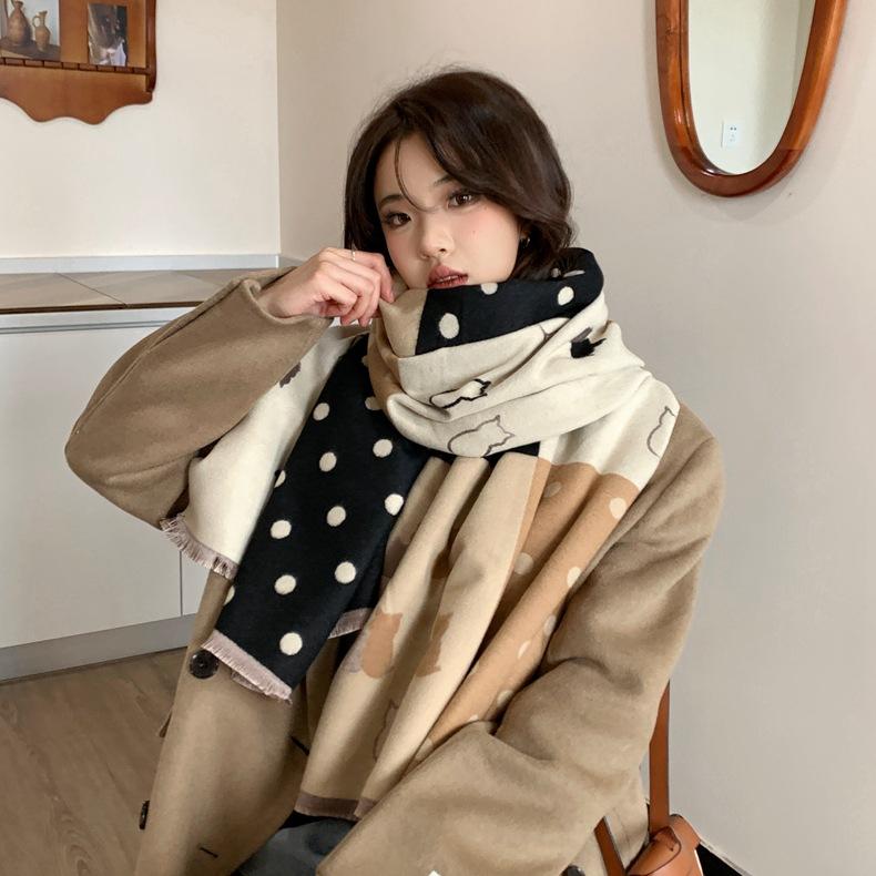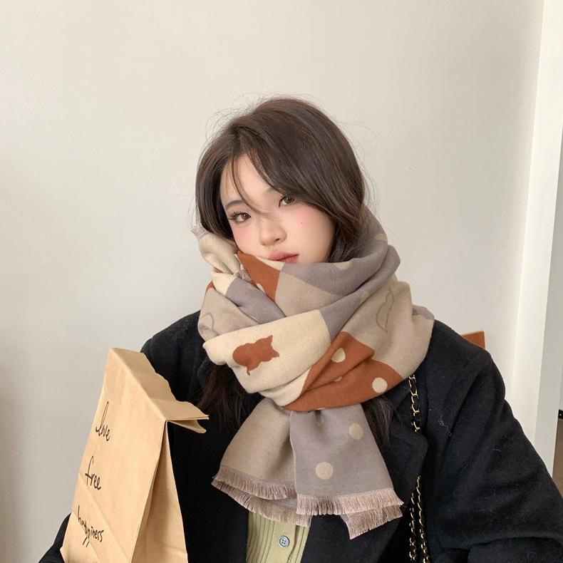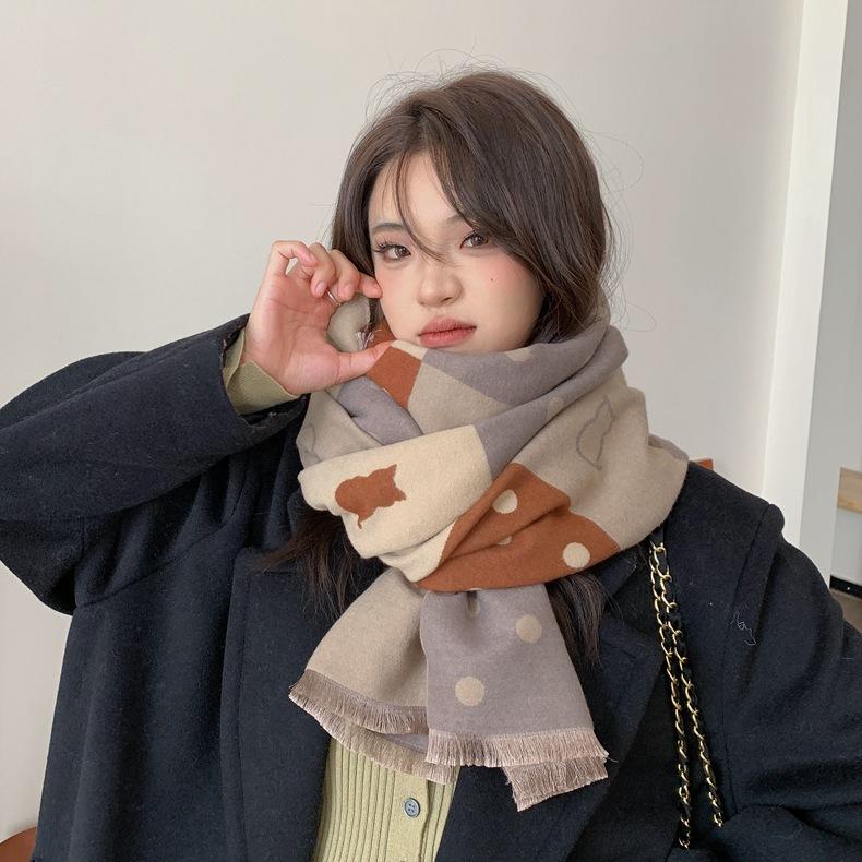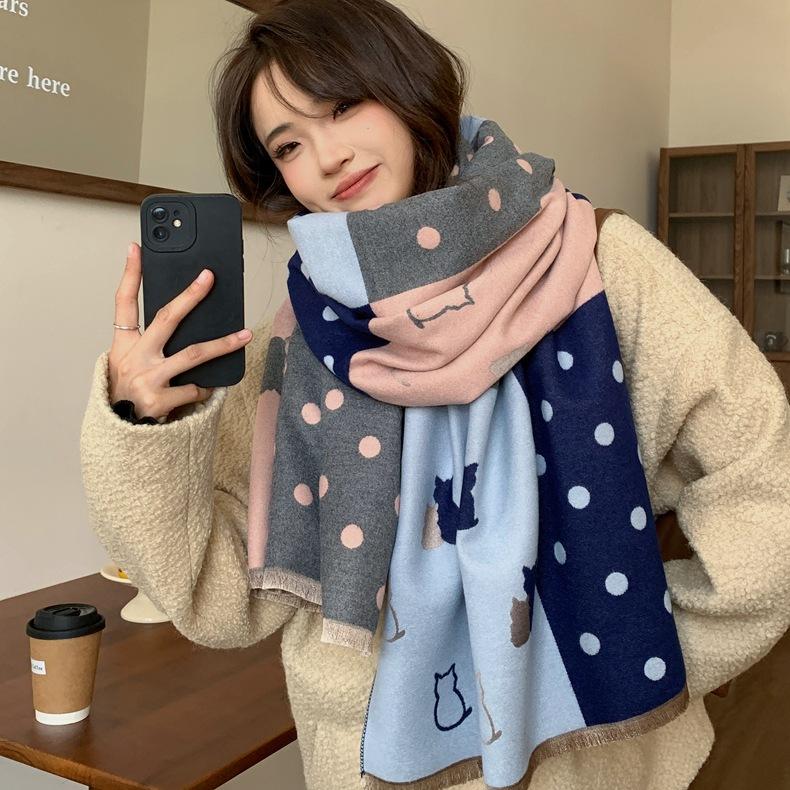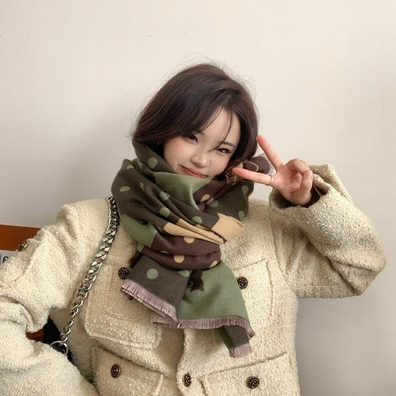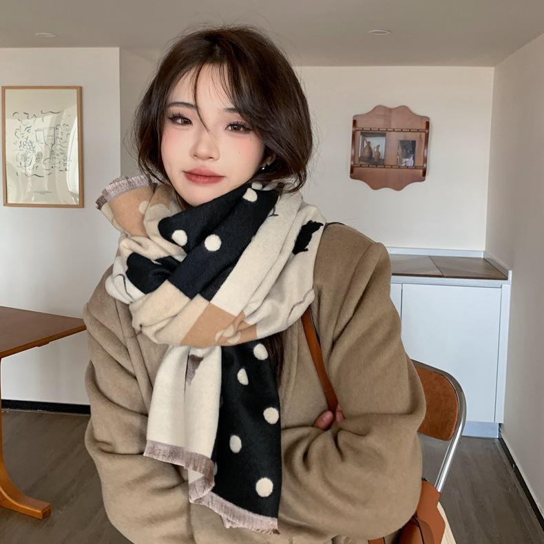 Bufanda de otoño e invierno para mujer, nueva bufanda geométrica de color a juego, estilo coreano, versátil, de doble cara, cálida y de doble uso, 2023