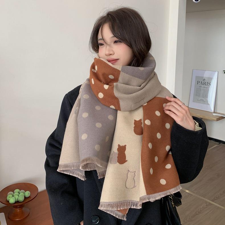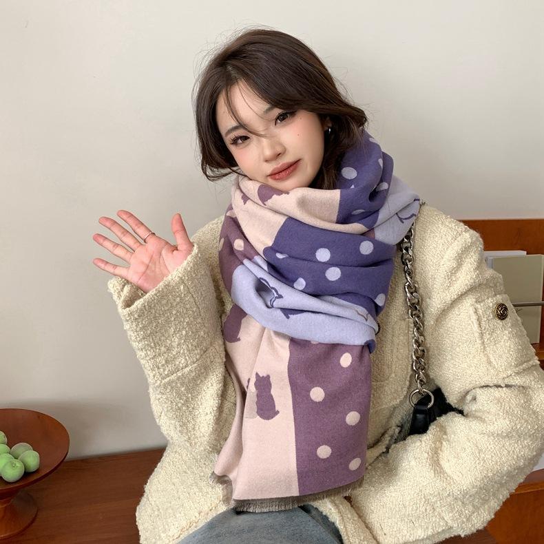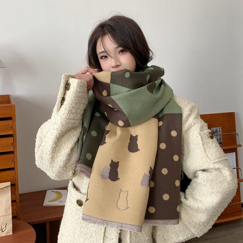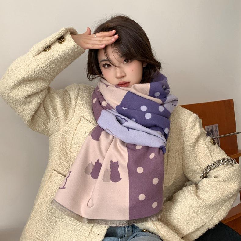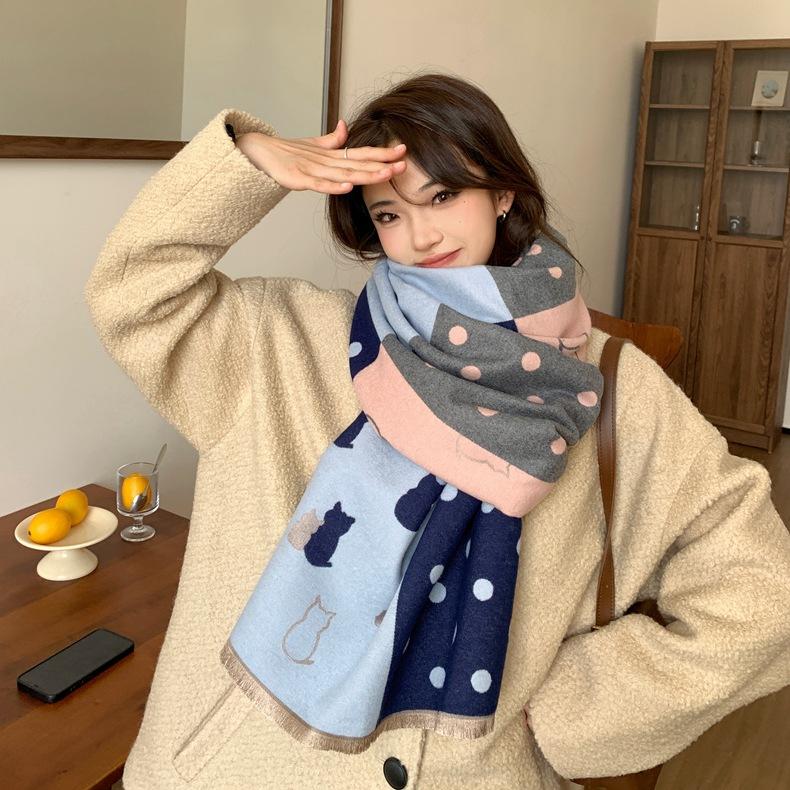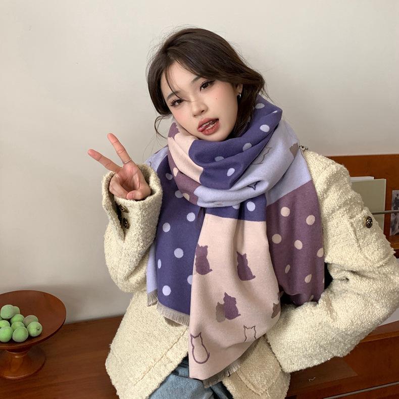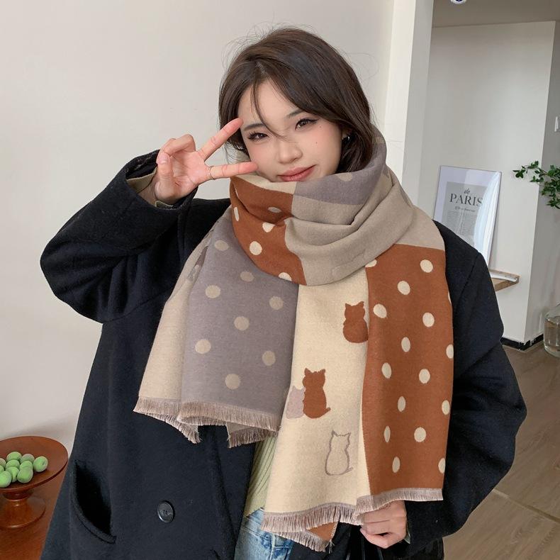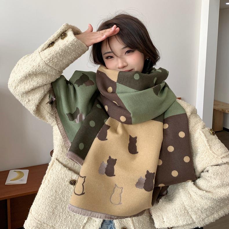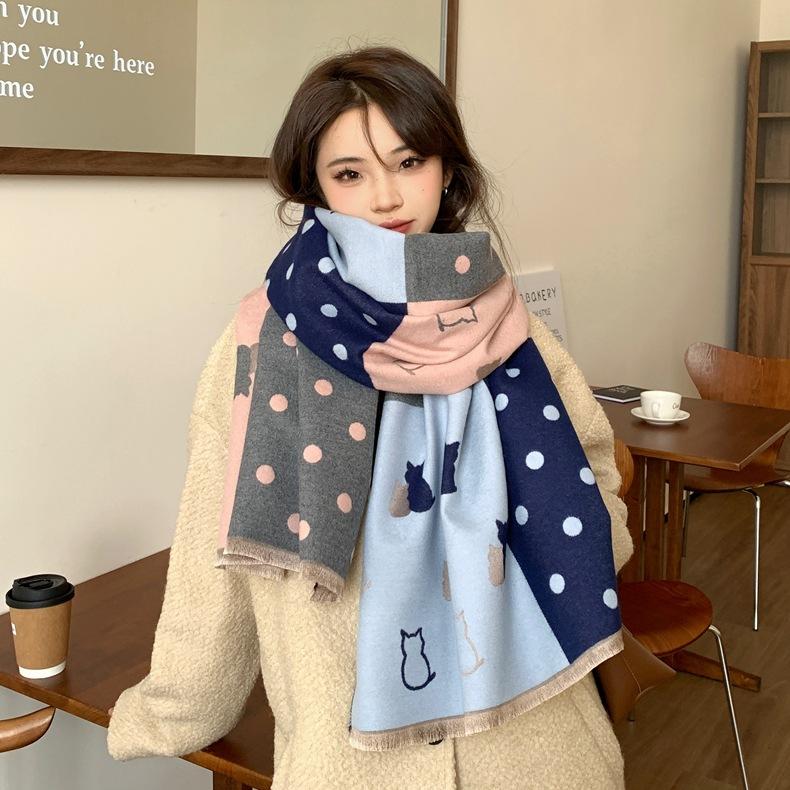 Bufanda de otoño e invierno para mujer, nueva bufanda geométrica de color a juego, estilo coreano, versátil, de doble cara, cálida y de doble uso, 2023