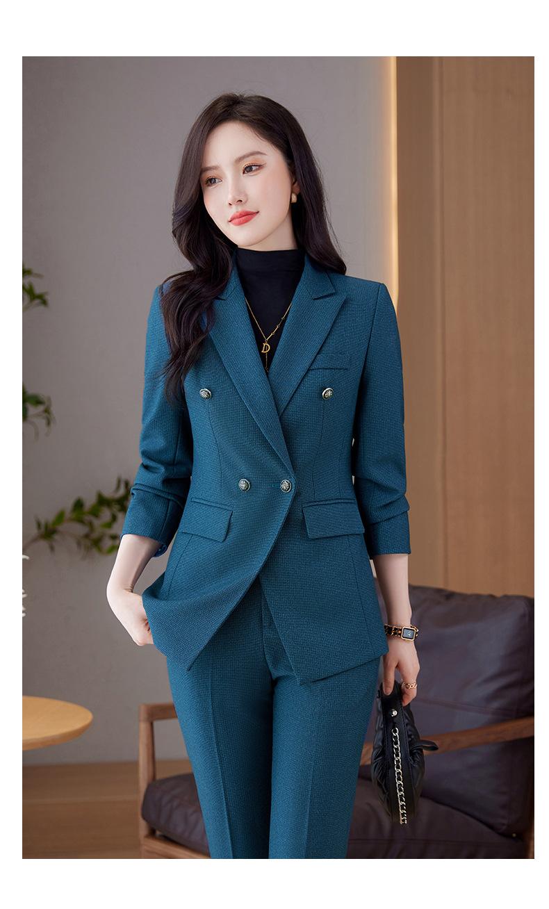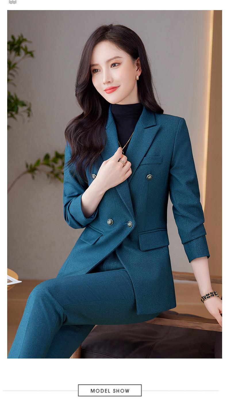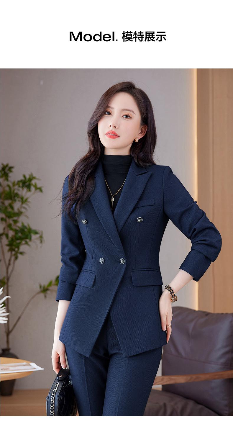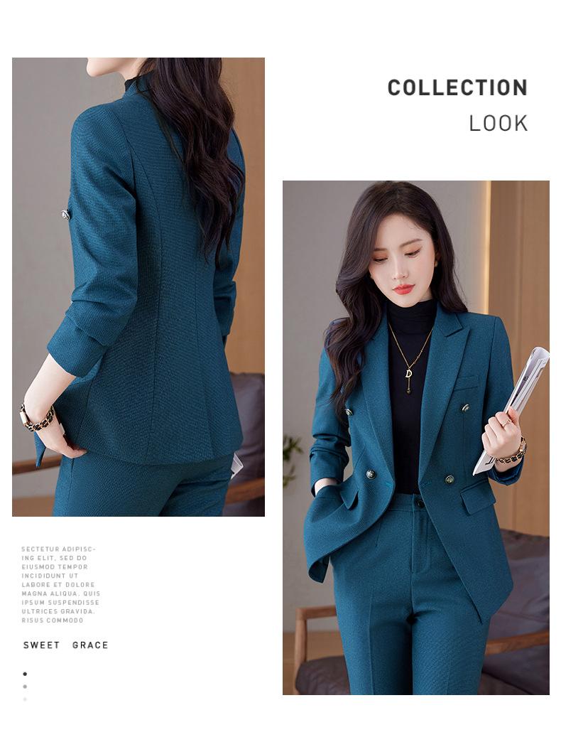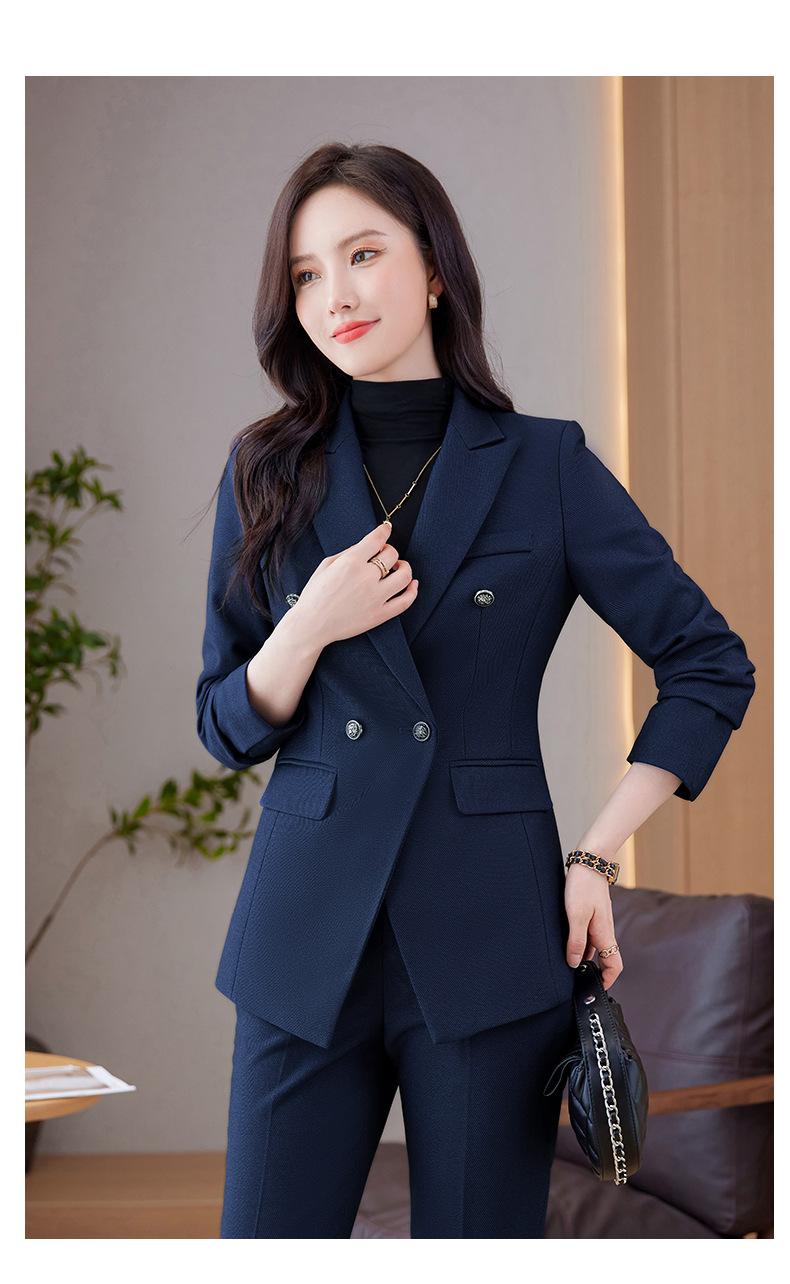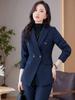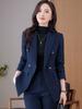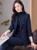 Chaqueta de Traje Azul de Doble Botonadura Transfronteriza para Mujer, Pequeño Traje Entallado para Estudiante Famoso en Internet, Estilo Coreano, Estilo Británico, Pantalones de Mujer
