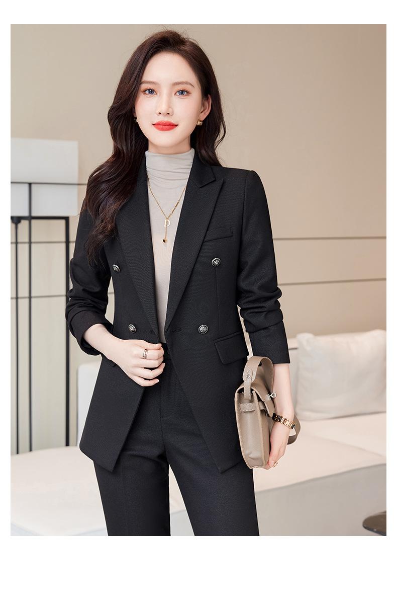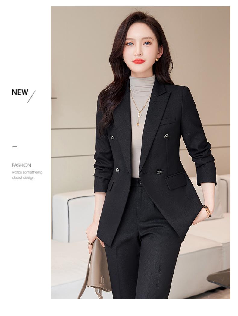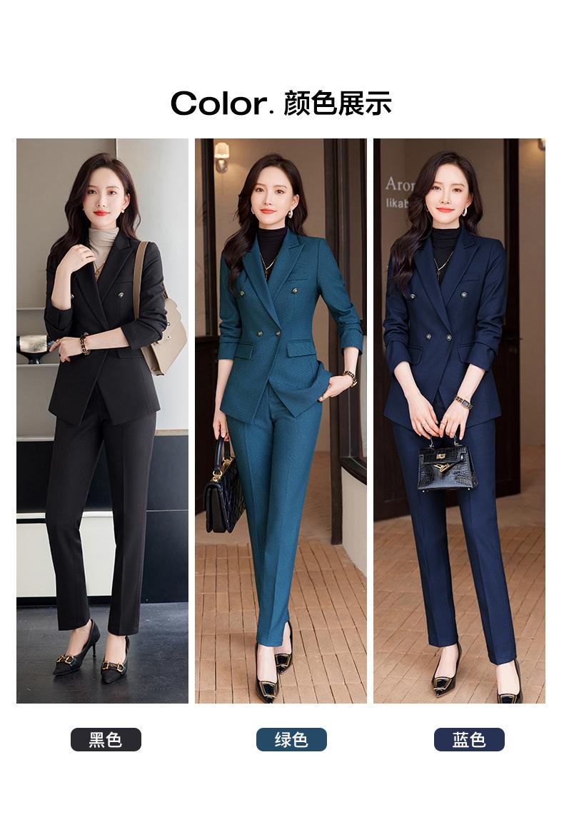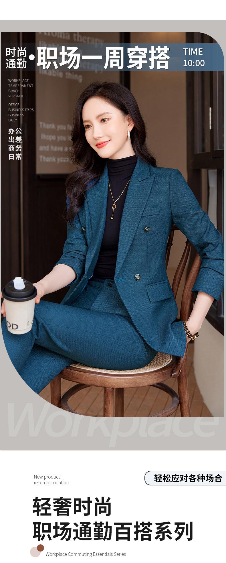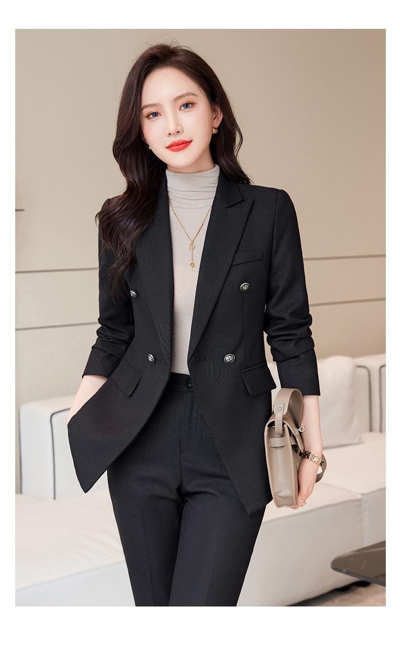Chaqueta de Traje Azul de Doble Botonadura Transfronteriza para Mujer, Pequeño Traje Entallado para Estudiante Famoso en Internet, Estilo Coreano, Estilo Británico, Pantalones de Mujer