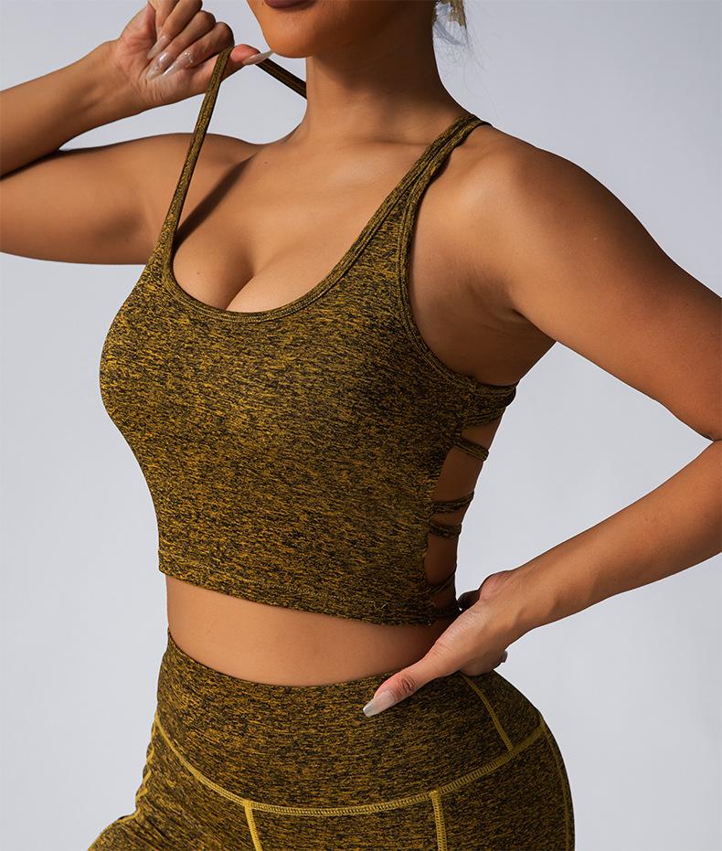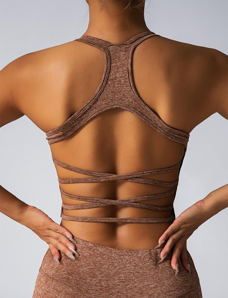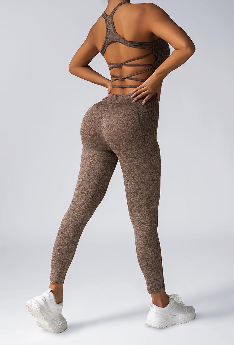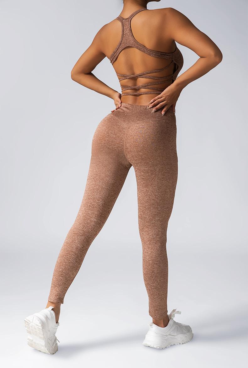Europeas y Americanas de Secado Rápido con Almohadilla en el Pecho Espalda Hueca Levanta Caderas Cintura Alta Pantalones de Yoga para Mujer Cadera Melocotón Mallas Deportivas para Correr