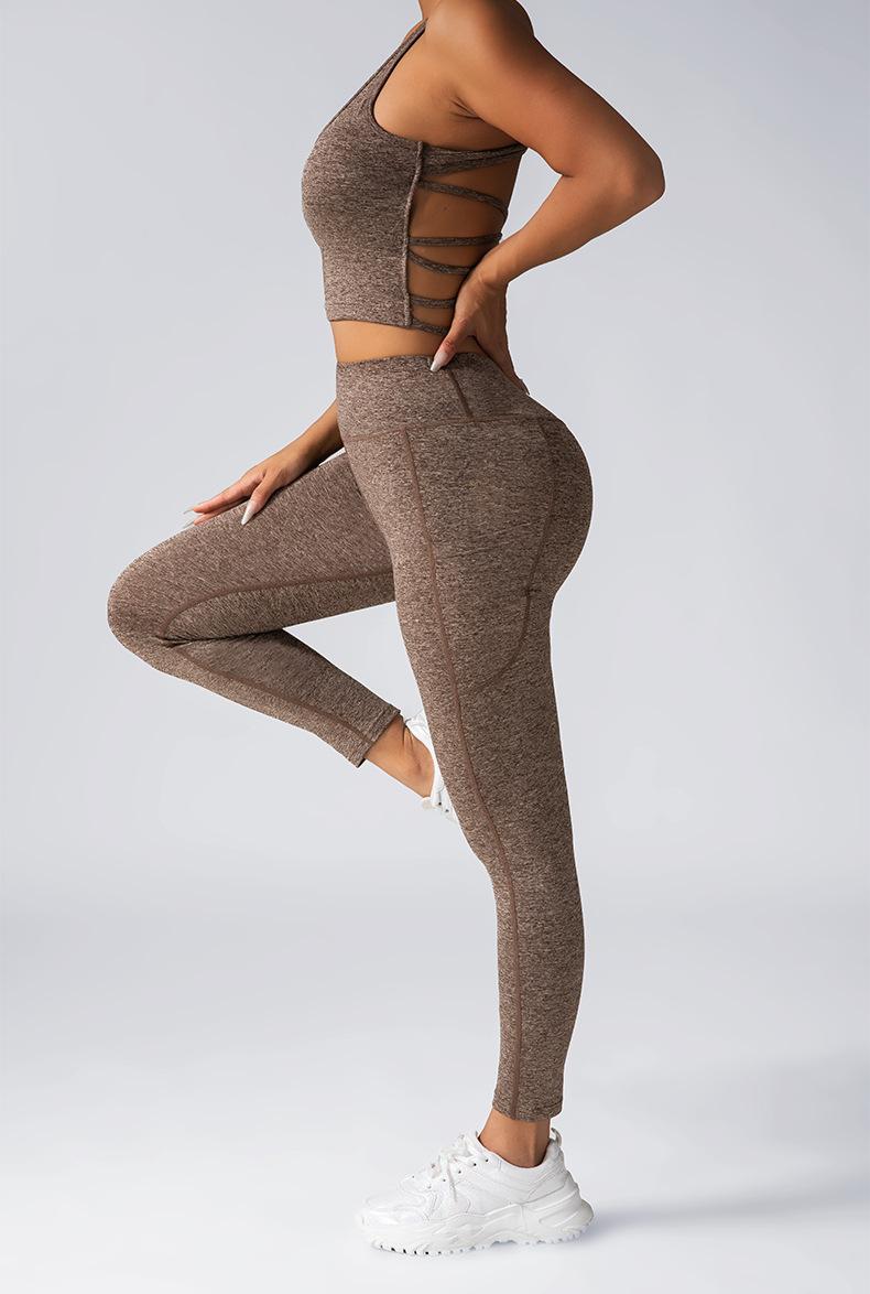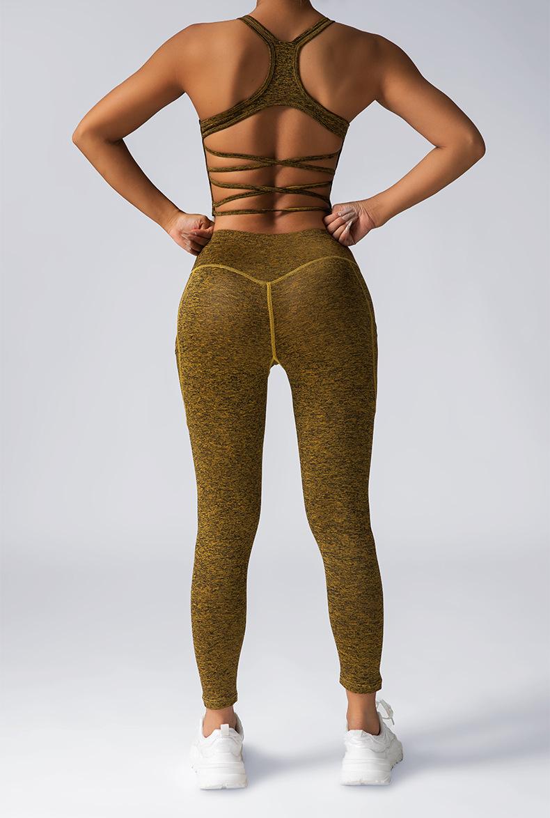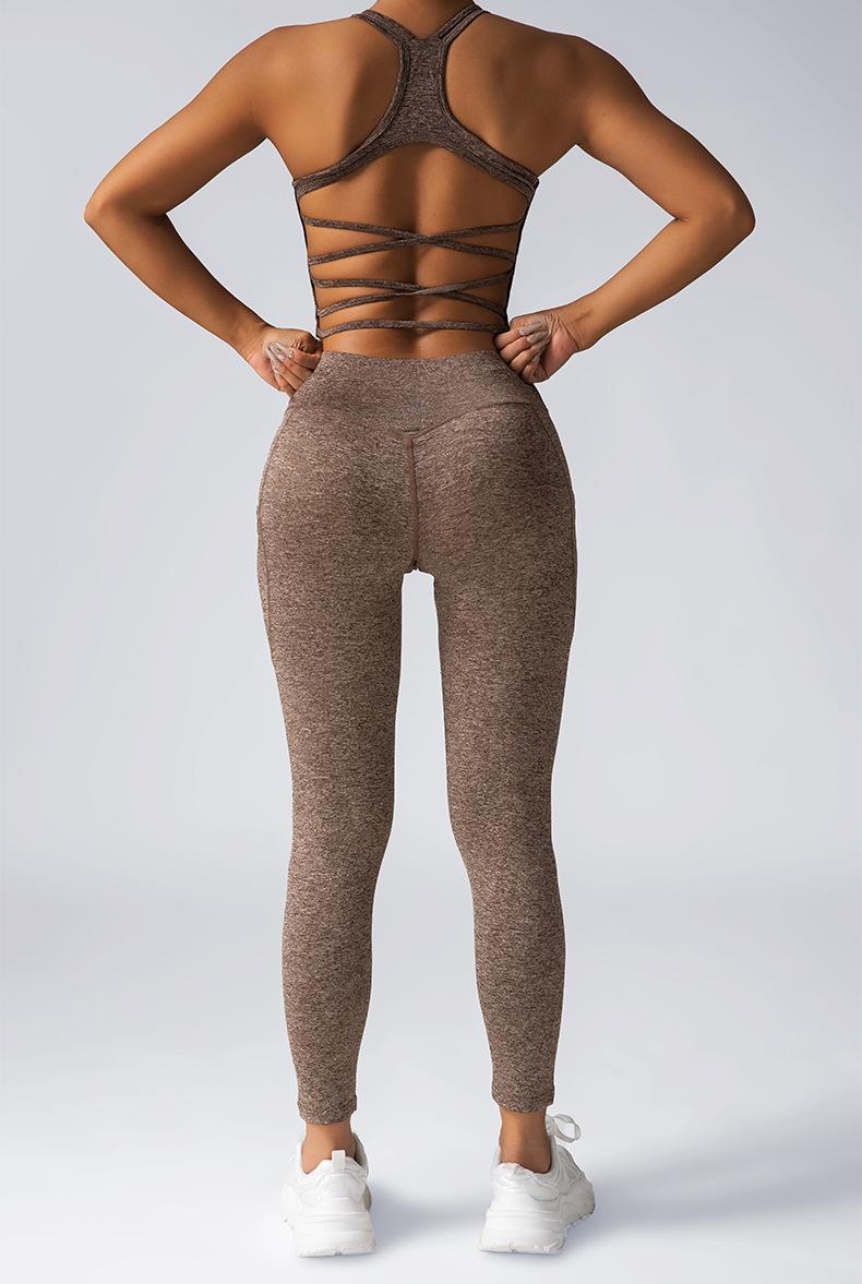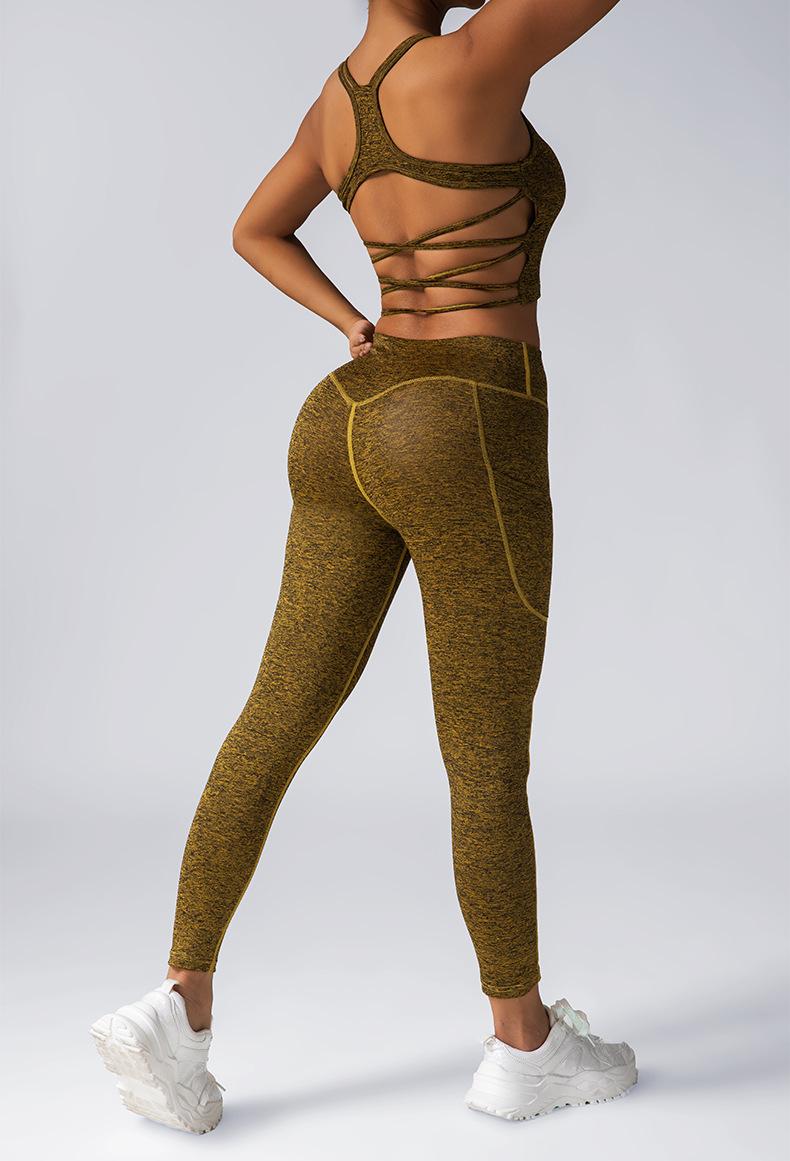 Europeas y Americanas de Secado Rápido con Almohadilla en el Pecho Espalda Hueca Levanta Caderas Cintura Alta Pantalones de Yoga para Mujer Cadera Melocotón Mallas Deportivas para Correr
