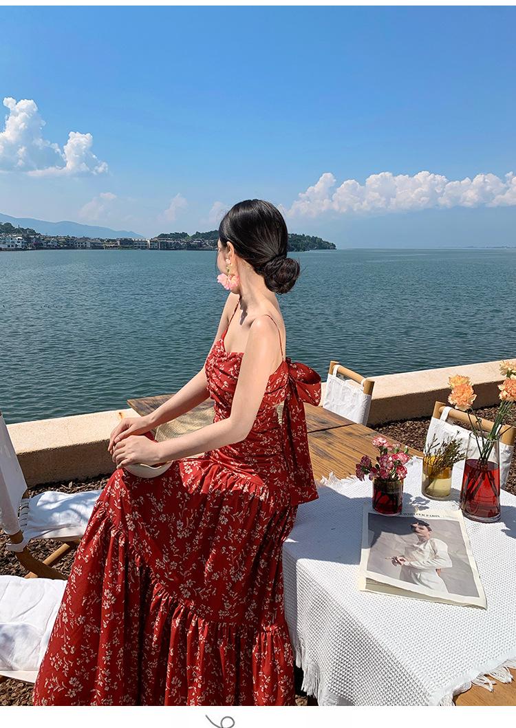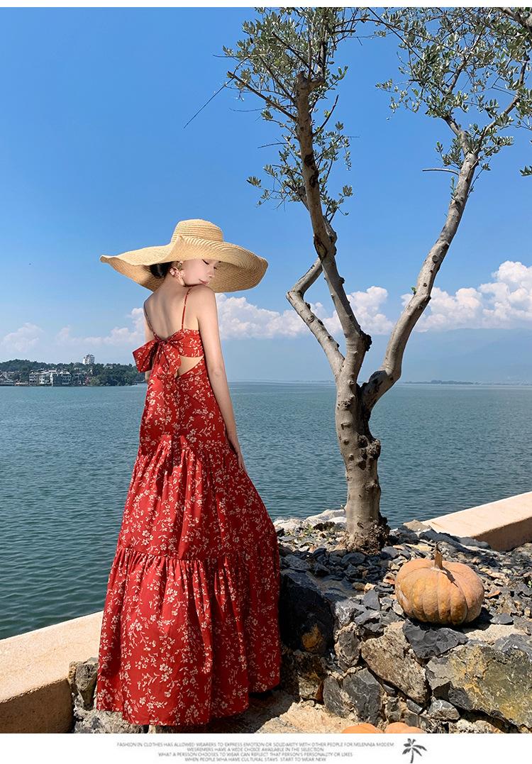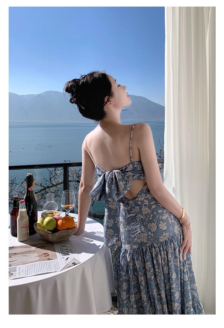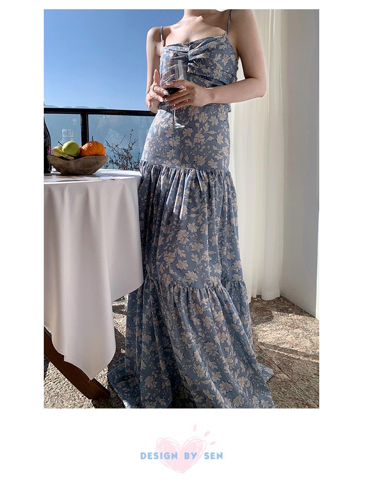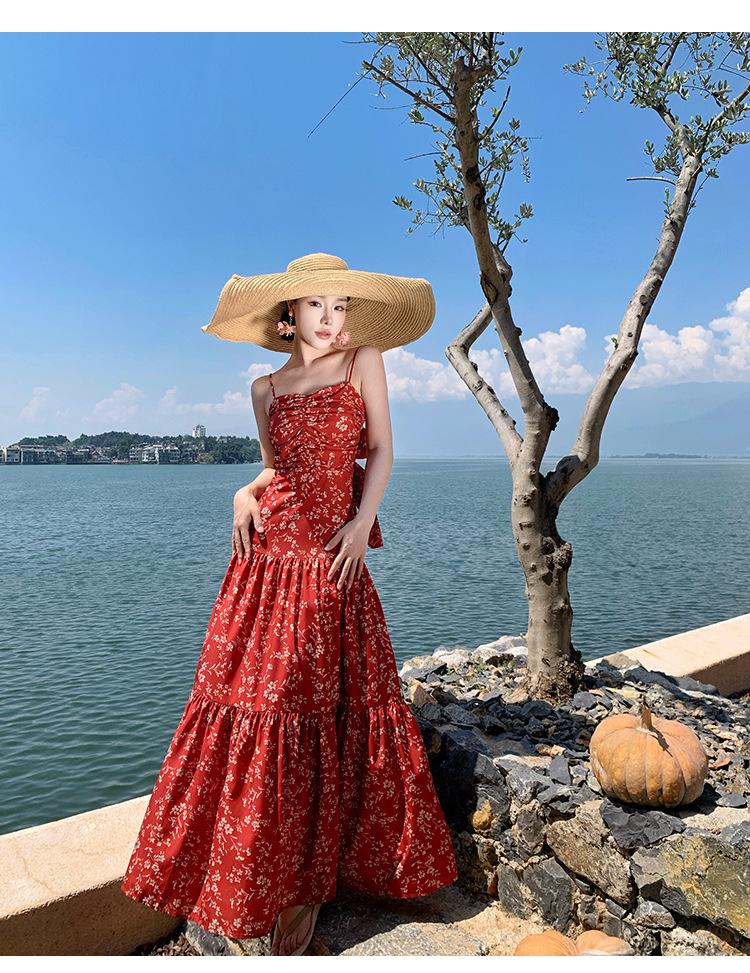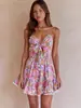 Falda plisada floral estilo francés con hombros descubiertos, espalda descubierta, lazo y tirantes para mujer, falda playera para vacaciones en la playa
