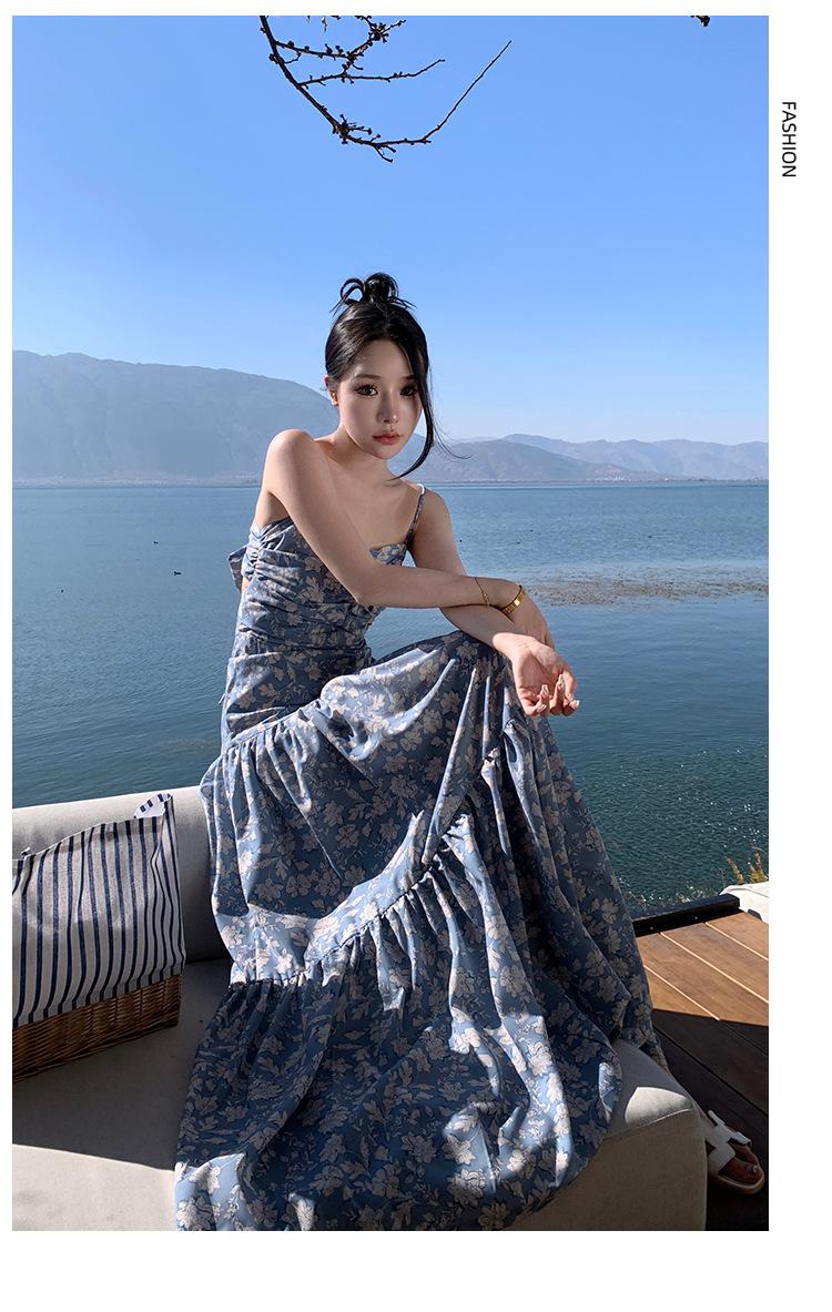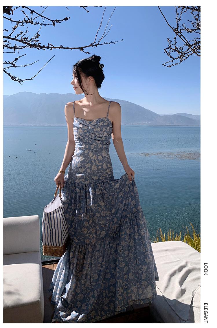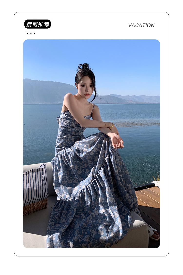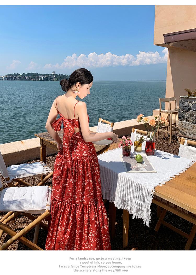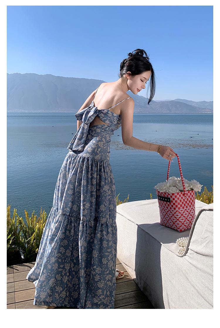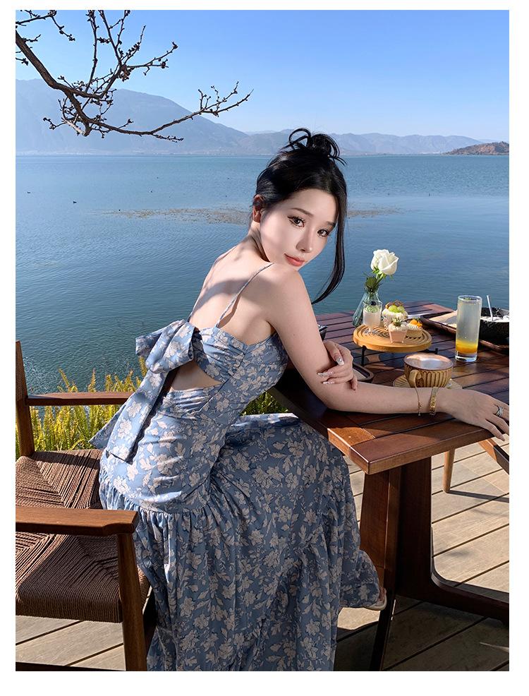 Falda plisada floral estilo francés con hombros descubiertos, espalda descubierta, lazo y tirantes para mujer, falda playera para vacaciones en la playa