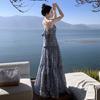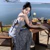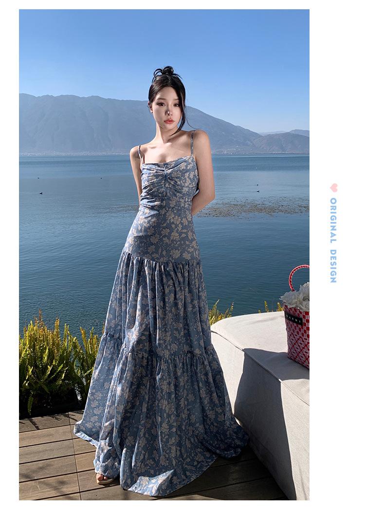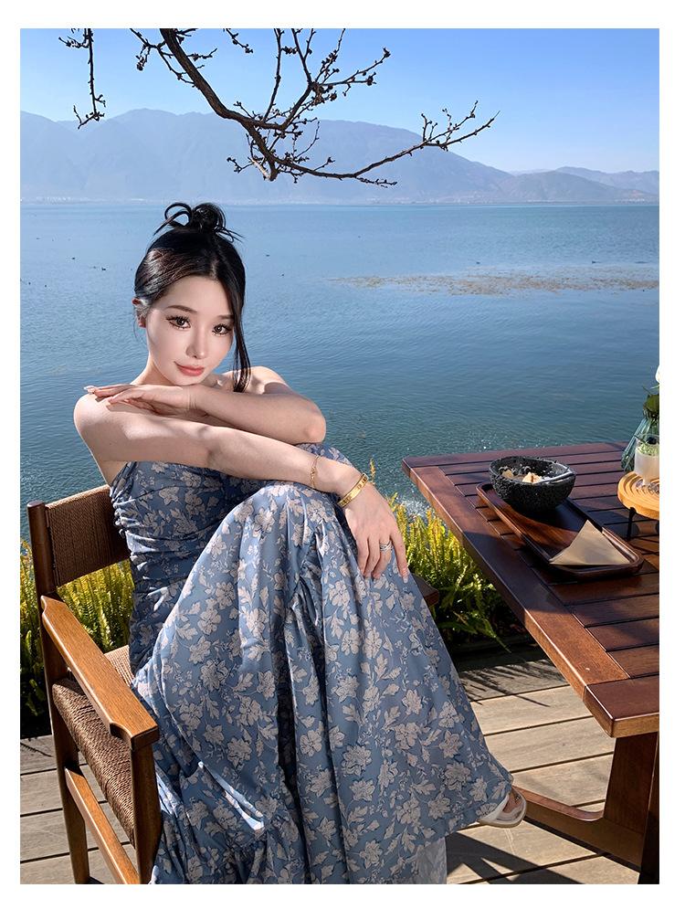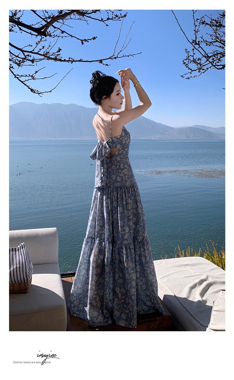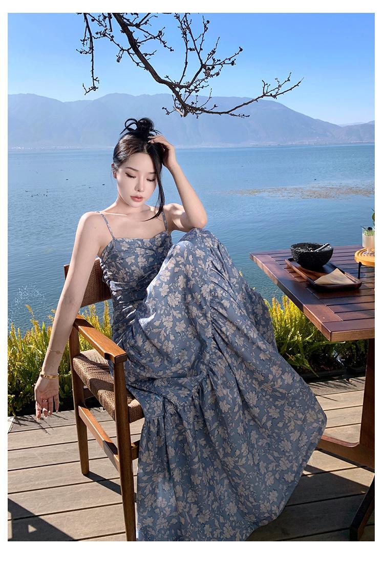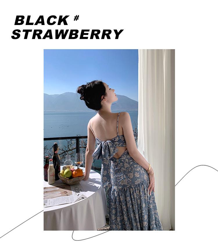 Falda plisada floral estilo francés con hombros descubiertos, espalda descubierta, lazo y tirantes para mujer, falda playera para vacaciones en la playa