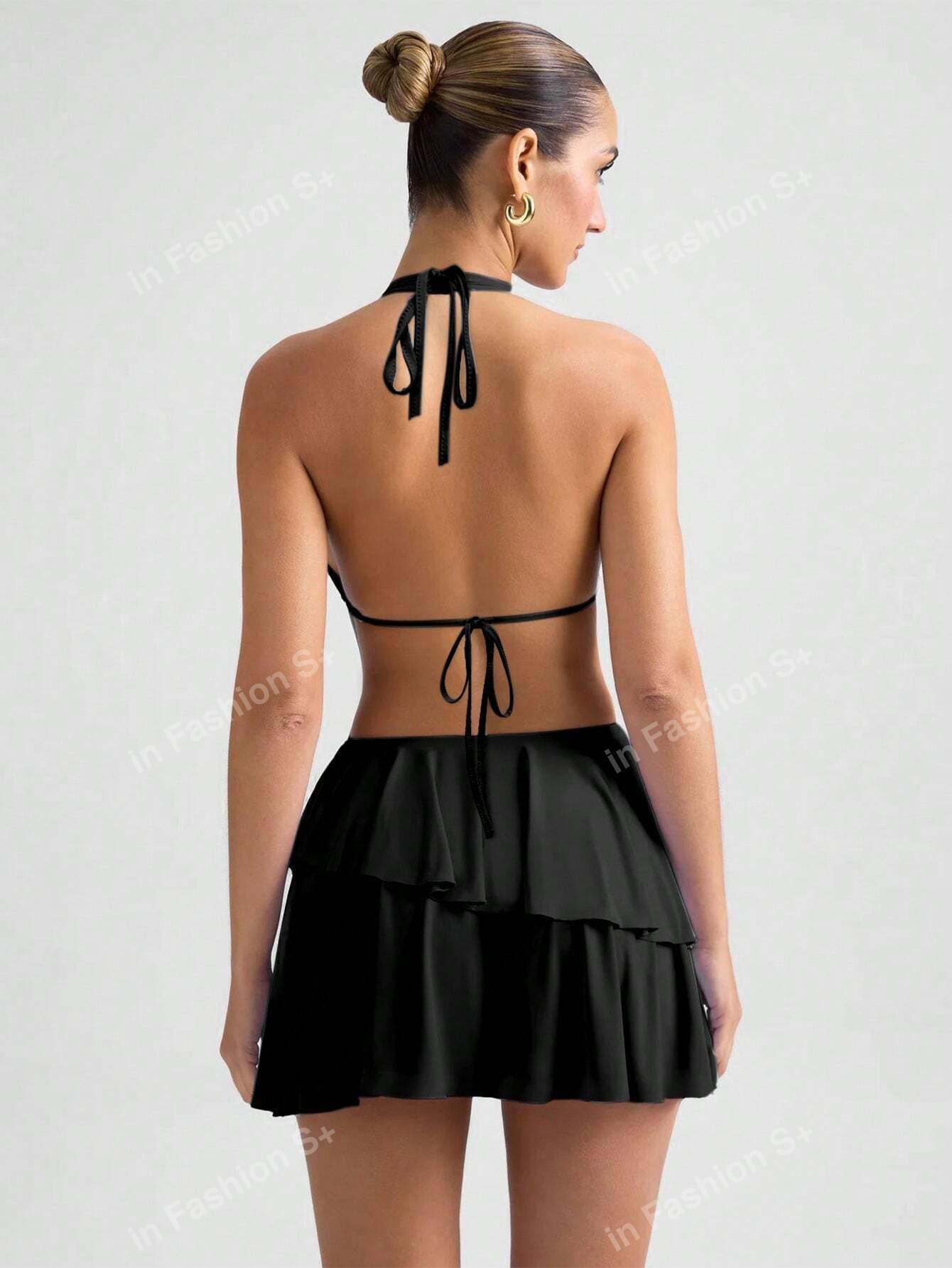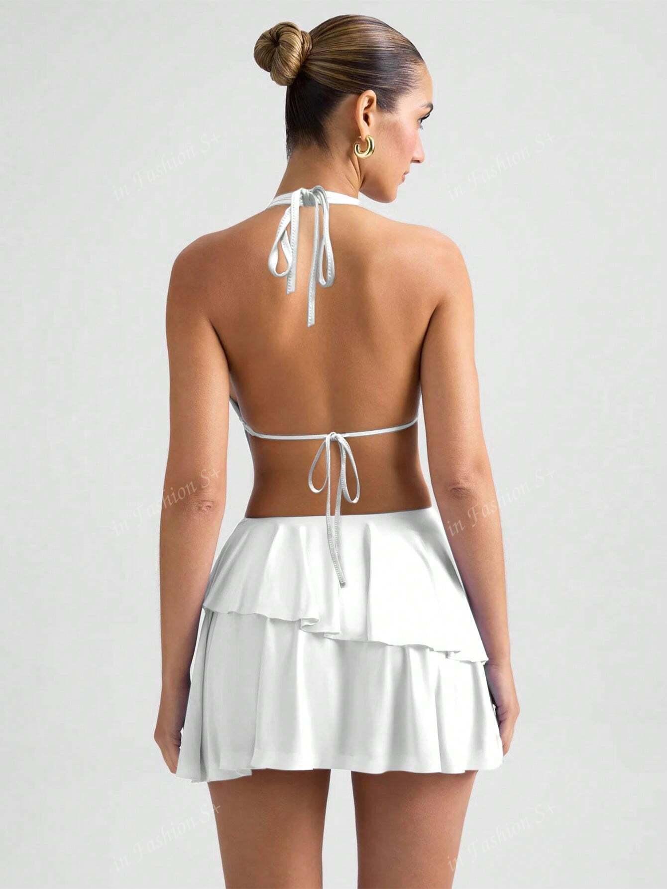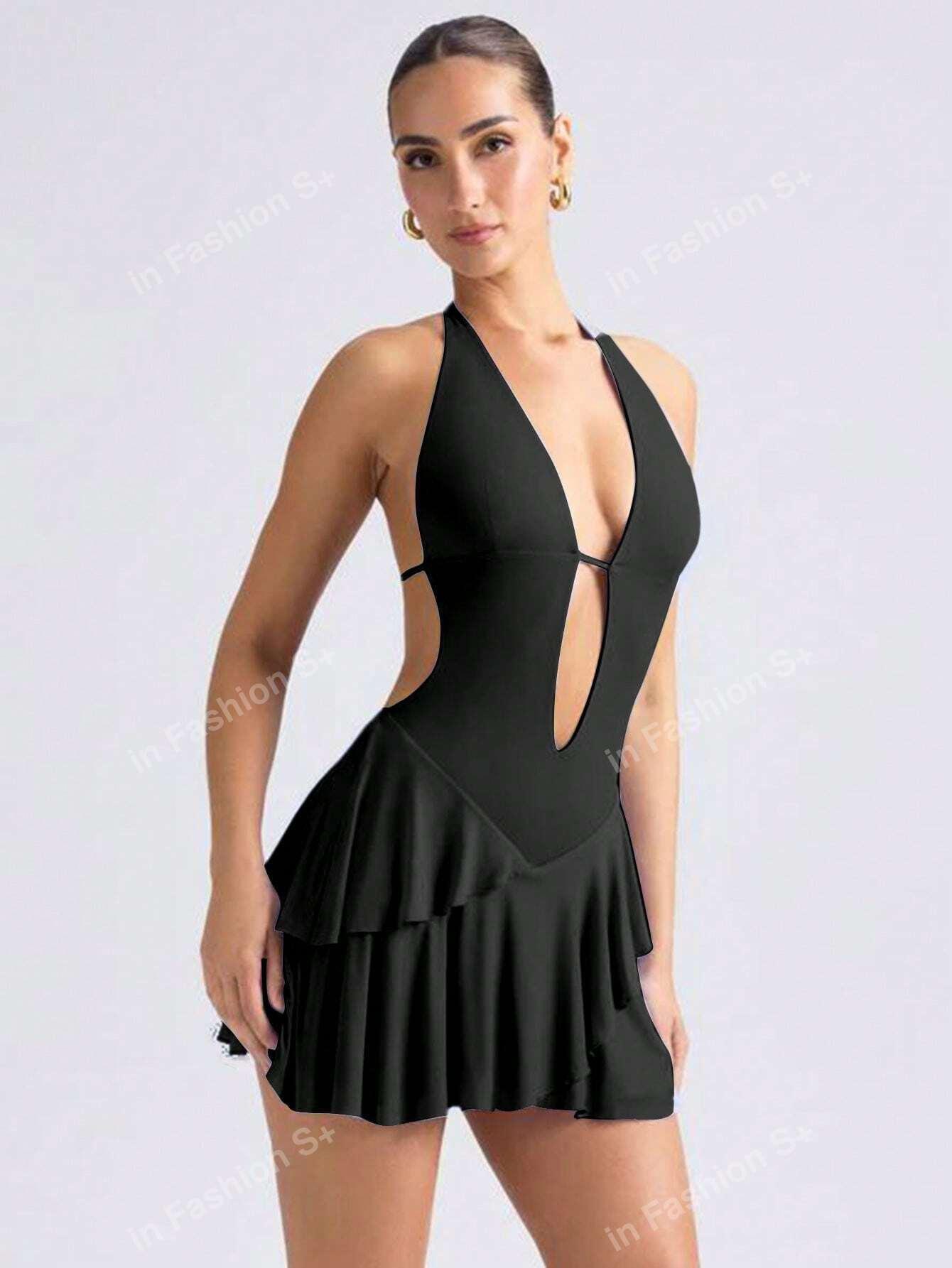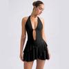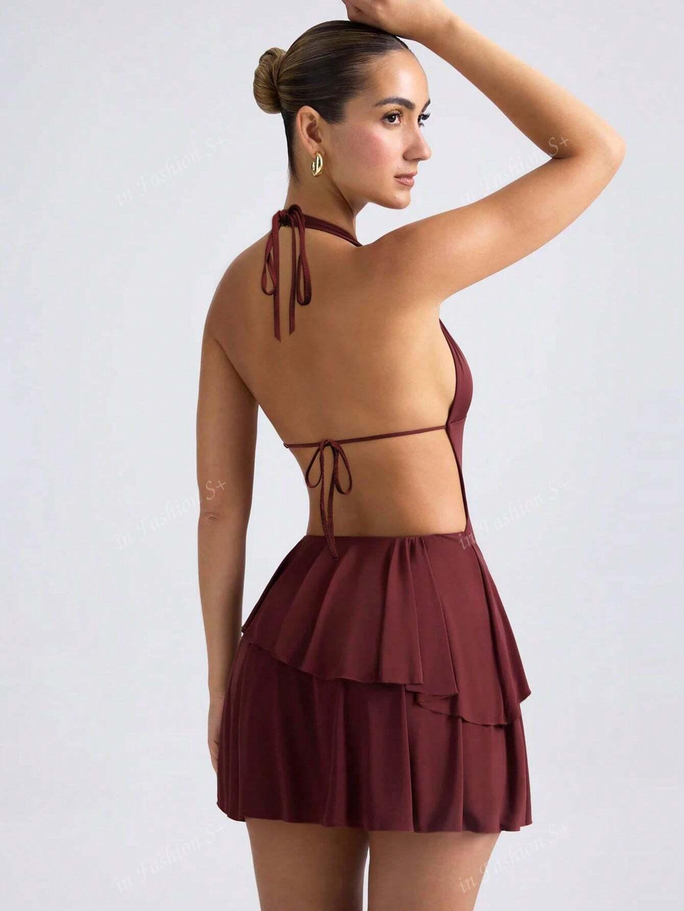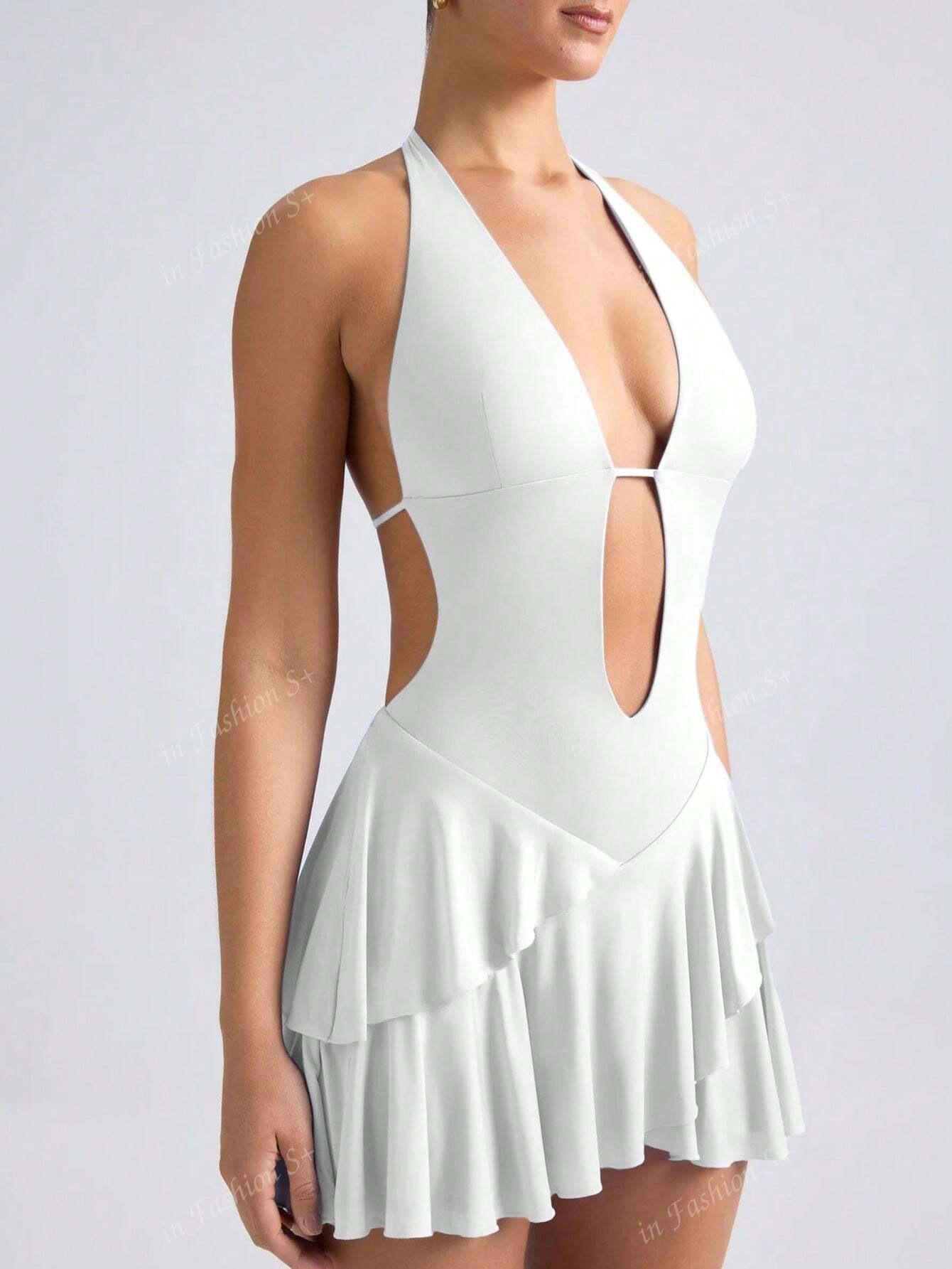 Vestido midi sexy de verano con cuello sin espalda, color sólido, ajustado, estilo europeo y americano, 2024. Vestido sin espalda.