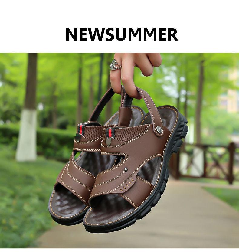Sandalias para Hombre 2021 Nuevas de Cuero Genuino Casuales Zapatos de Playa para Hombre Moda de Verano para Exterior de Papá Sandalias y Pantuflas de Doble Uso para Hombre