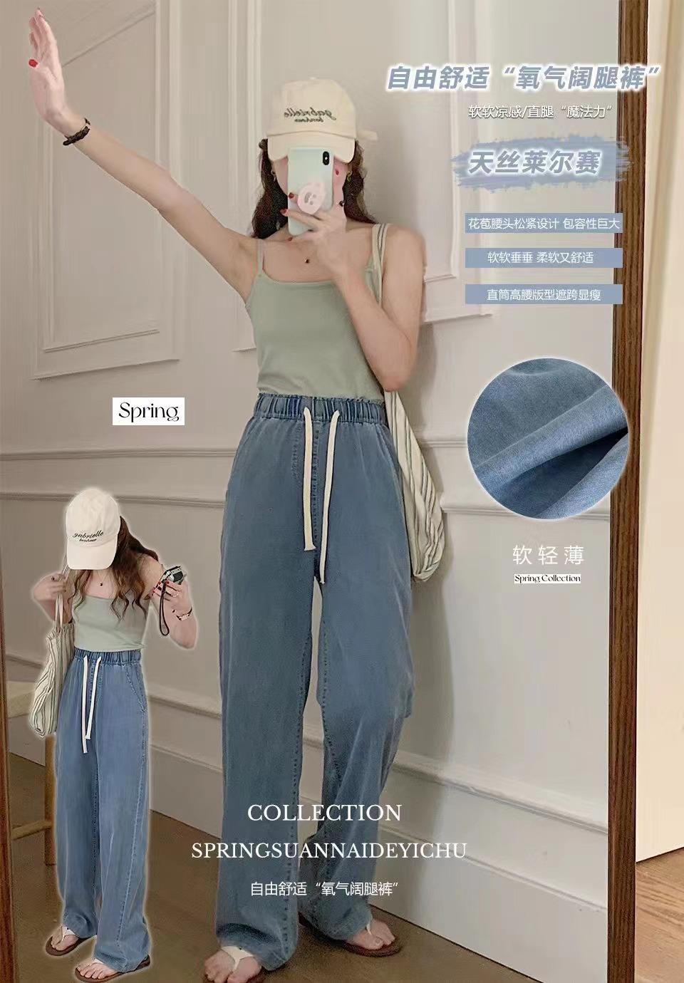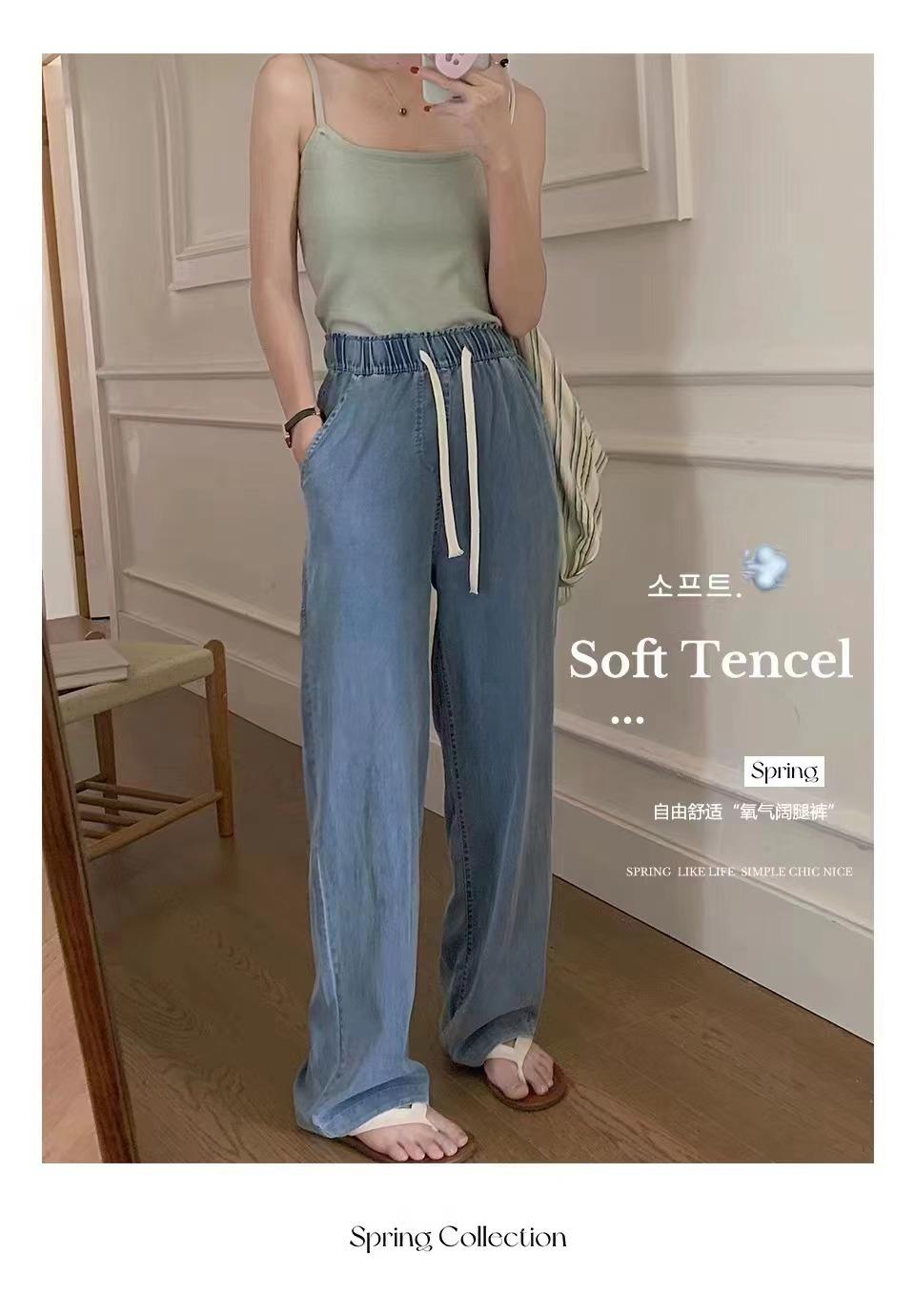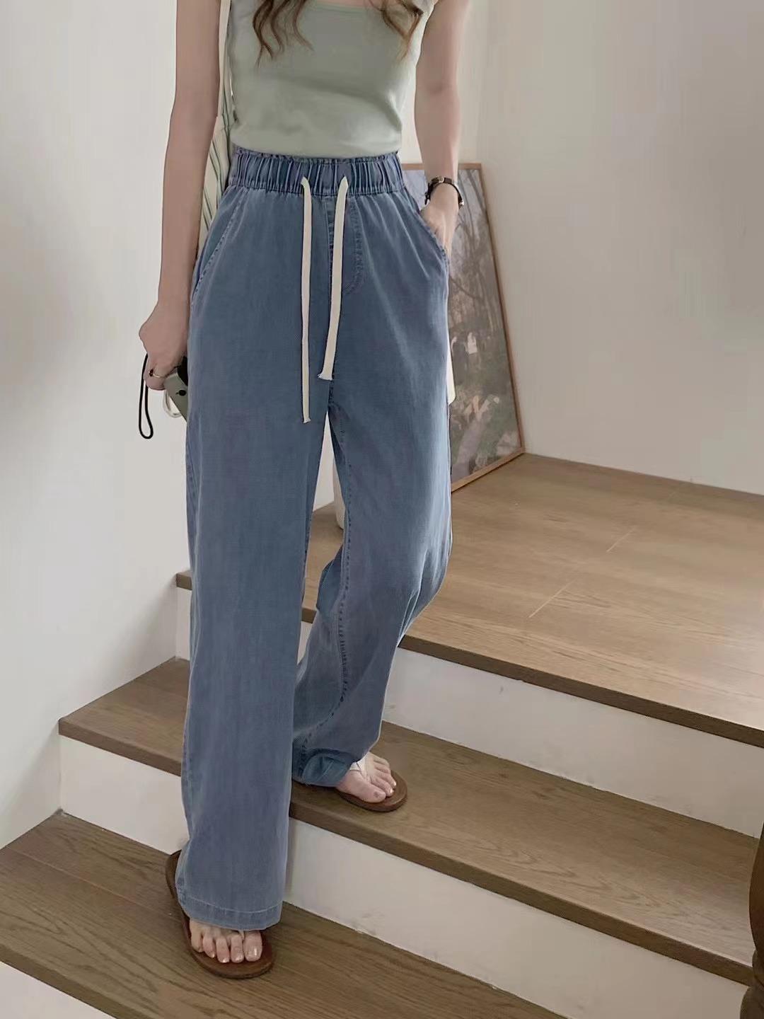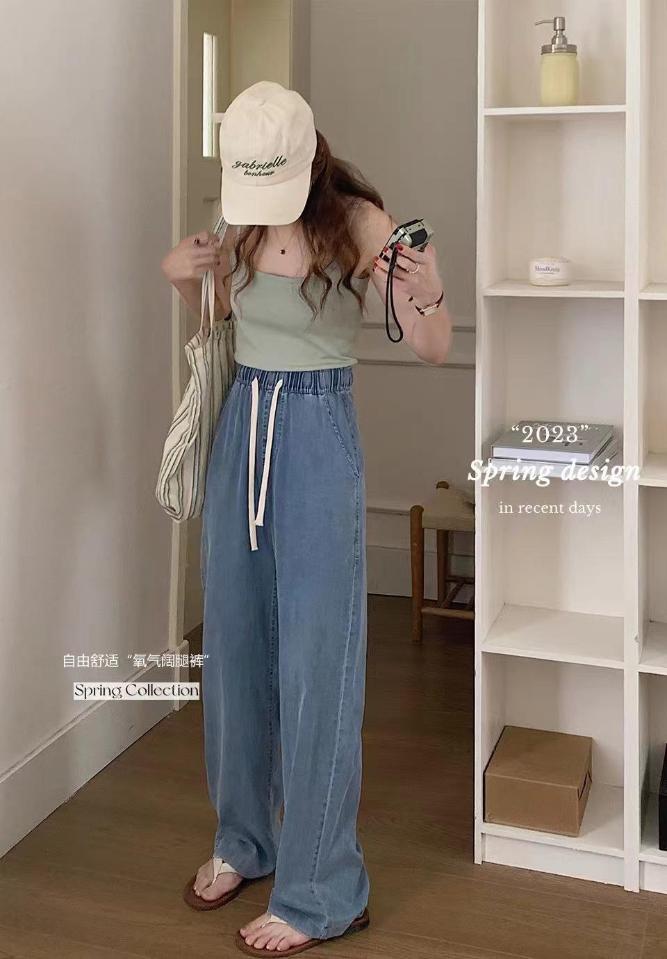 Pantalones vaqueros Tencel para mujer, de verano, finos, de cintura alta, rectos, informales, de seda helada, con pierna ancha, 2023