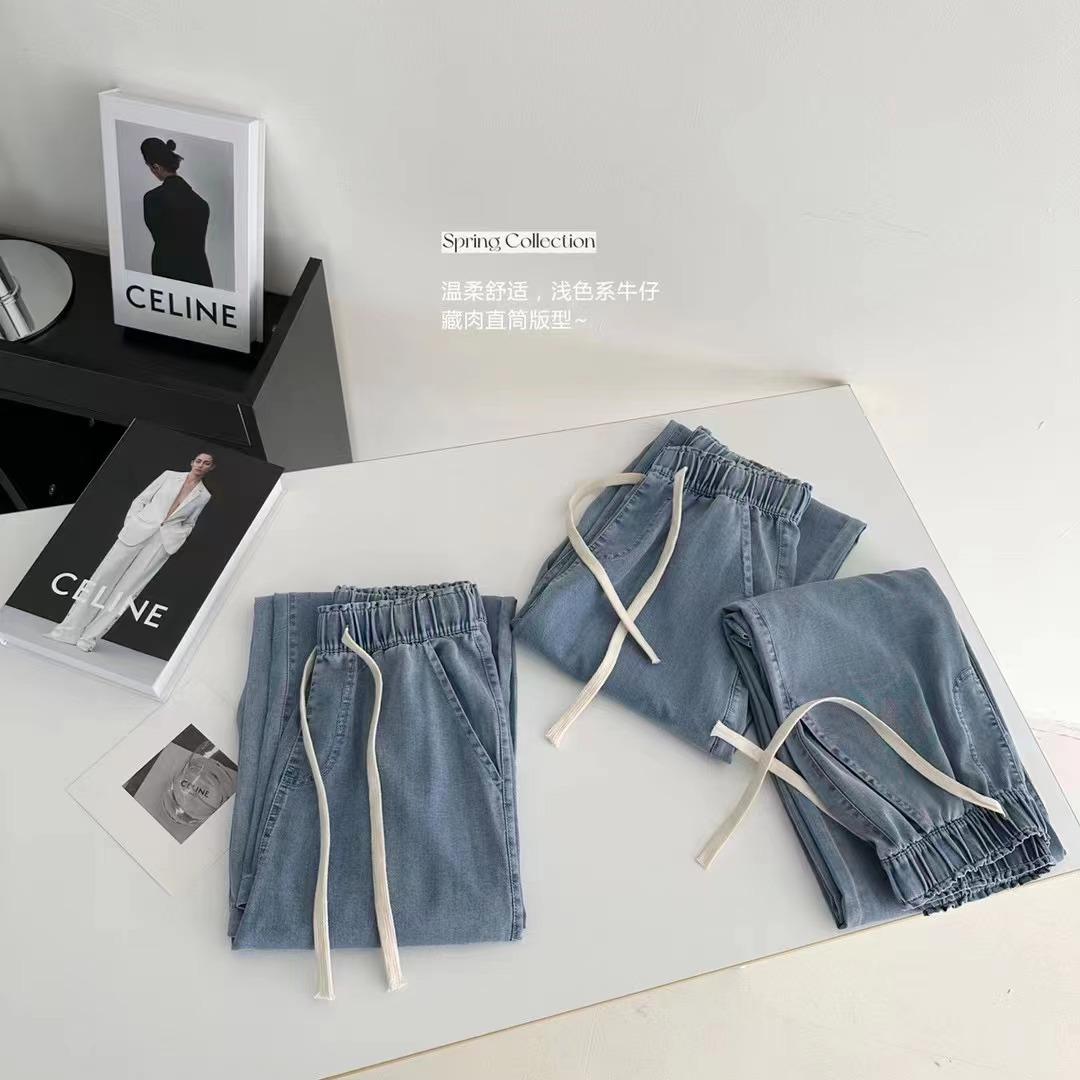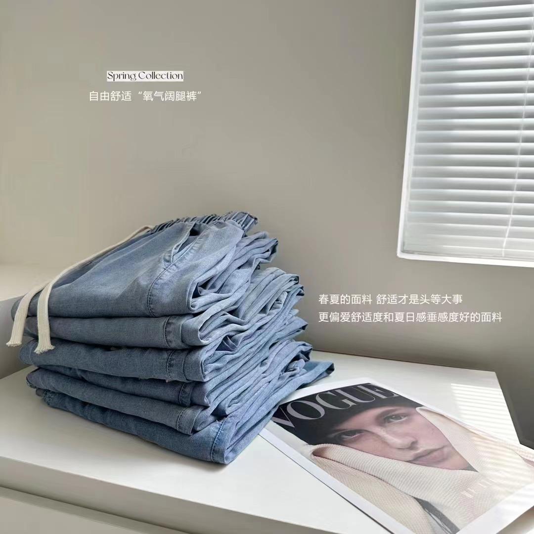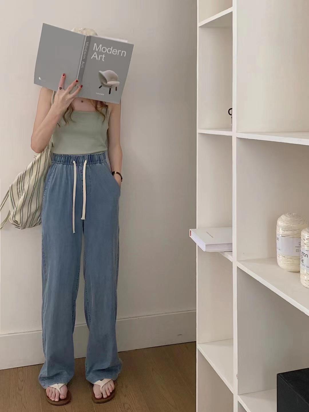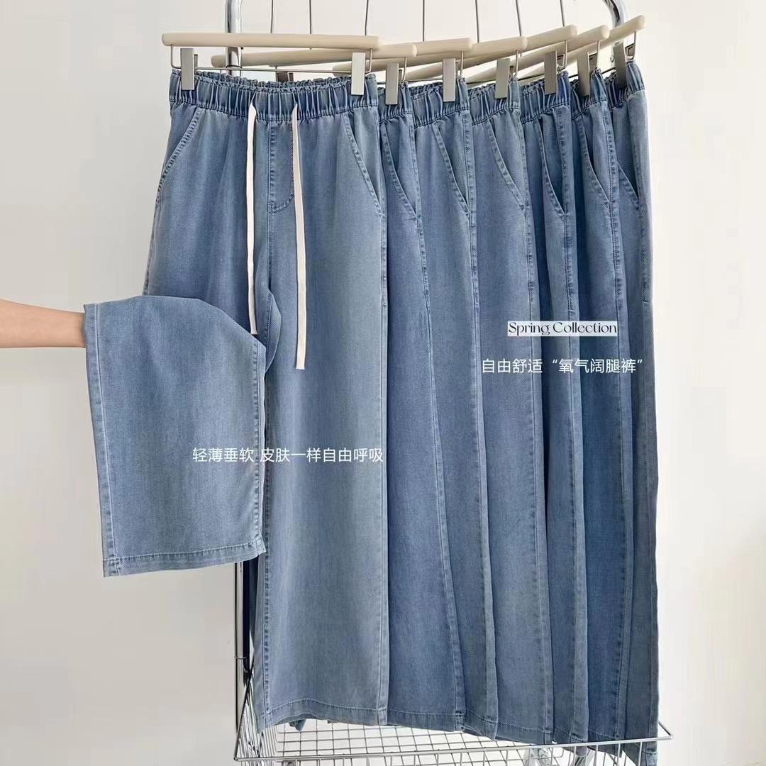 Pantalones vaqueros Tencel para mujer, de verano, finos, de cintura alta, rectos, informales, de seda helada, con pierna ancha, 2023