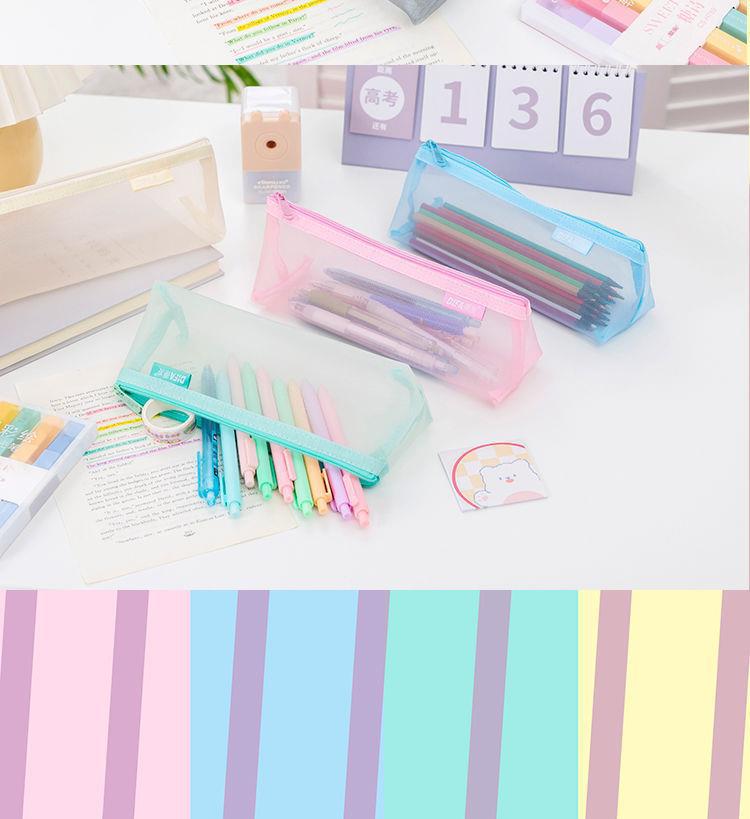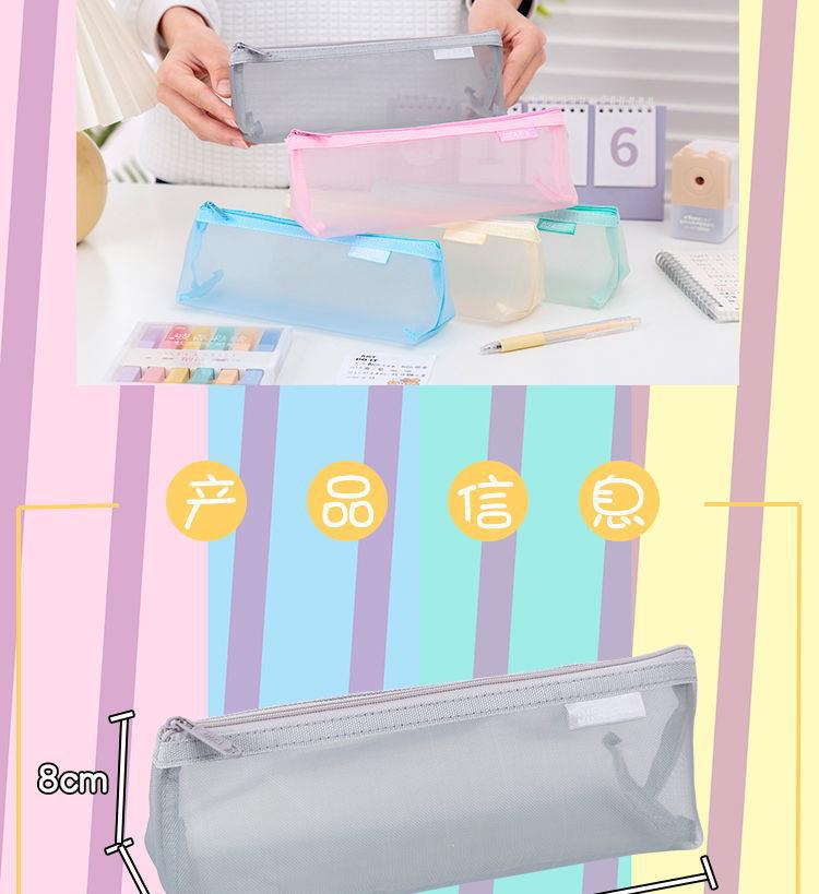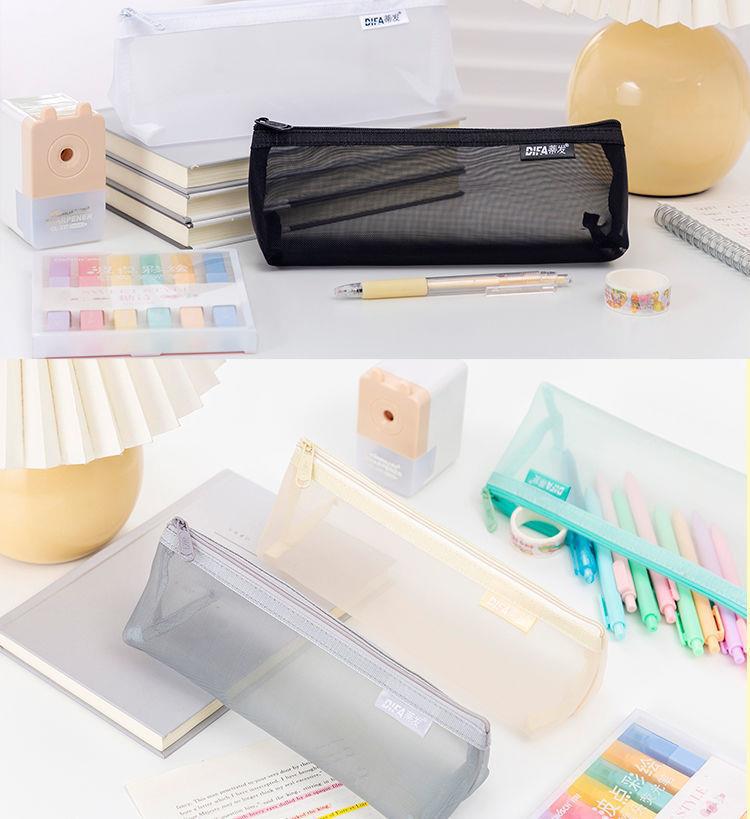 Estuche de lápices sencillo para mujer, de malla transparente, para lápices de prueba, para hombre, con capacidad para papelería, bolsa de almacenamiento, estuche para lápices