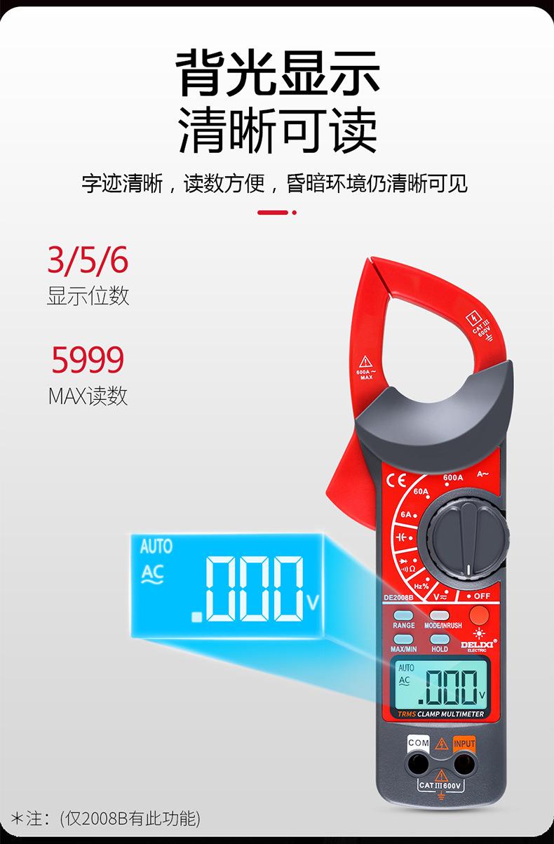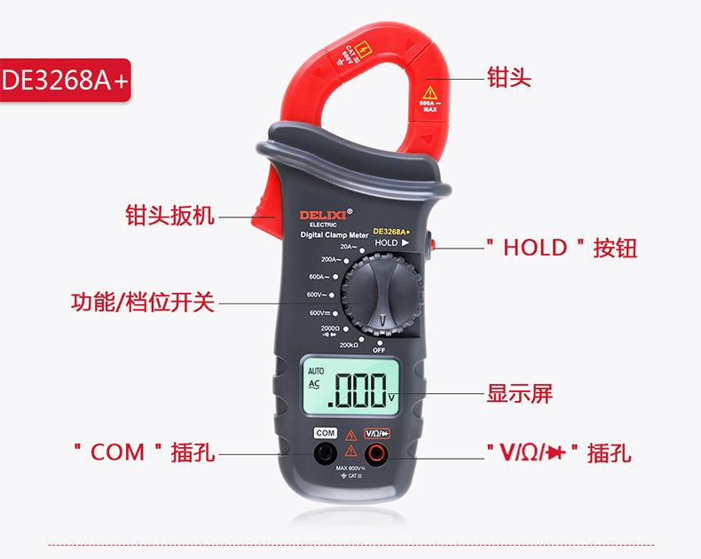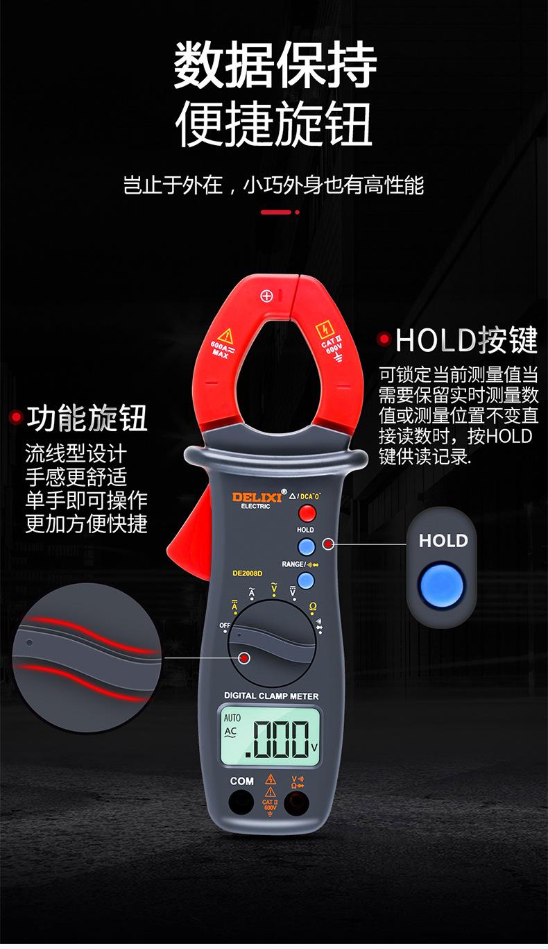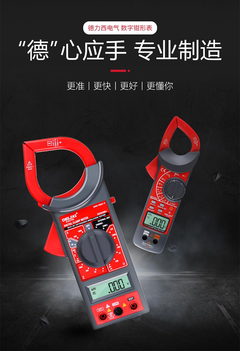 Multímetro digital de pinza Delixi, amperímetro de CA/CC con pantalla digital automática de alta precisión