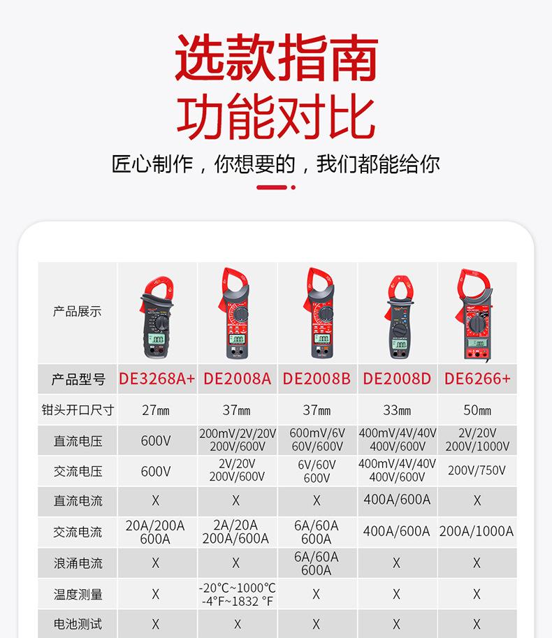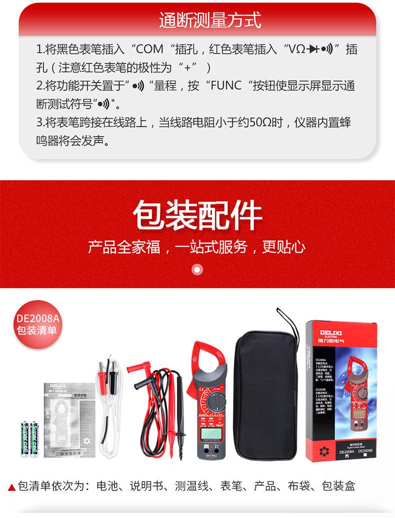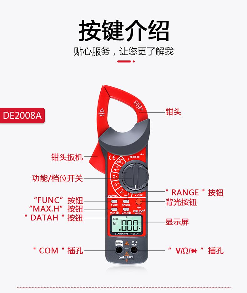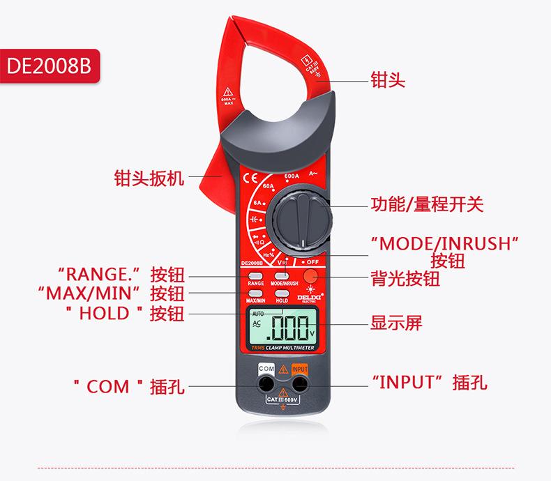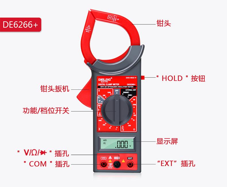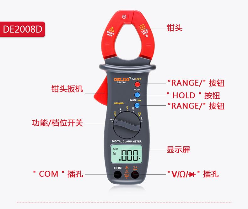 Multímetro digital de pinza Delixi, amperímetro de CA/CC con pantalla digital automática de alta precisión