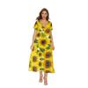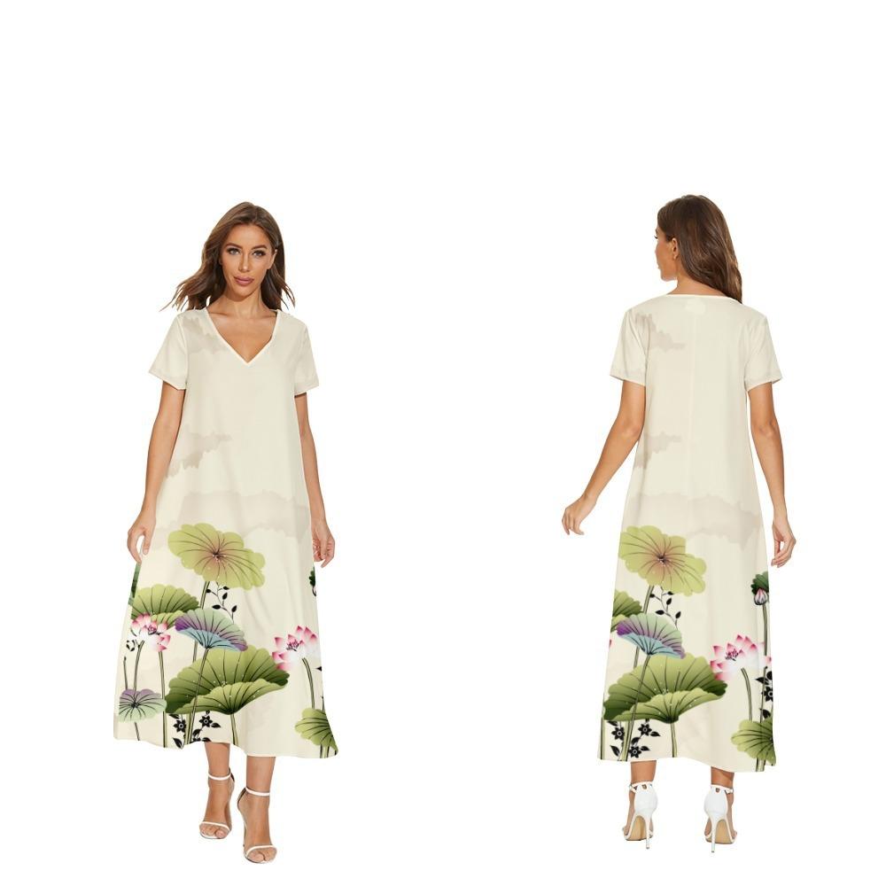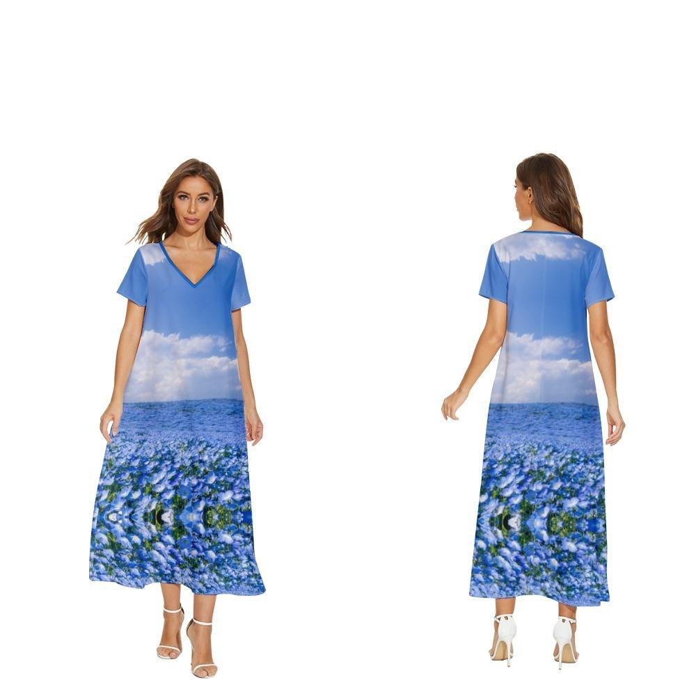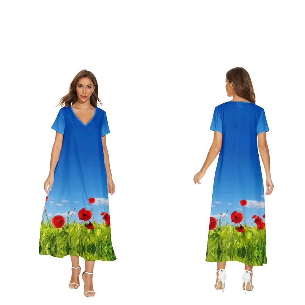Nuevo vestido floral de manga corta con cuello en V de Amazon para primavera y verano, informal, de comercio exterior transfronterizo, para mujer, se puede enviar en nombre