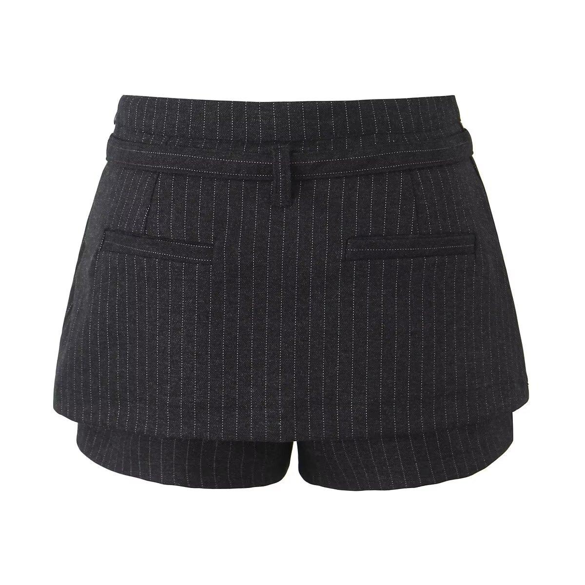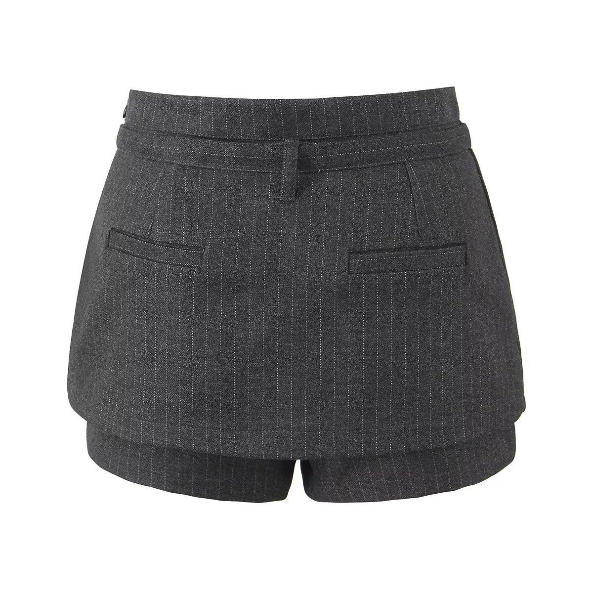 2024 estilo europeo y americano verano mujeres nuevo tweed fino rayas falso dos piezas falda pantalones 1298 gris claro gris oscuro personalidad calle