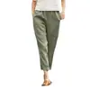 Pantalones casuales cortos nuevos de primavera y otoño para mujer, algodón lino sueltos adelgazantes rectos zanahoria harem, talla extra cómodos
