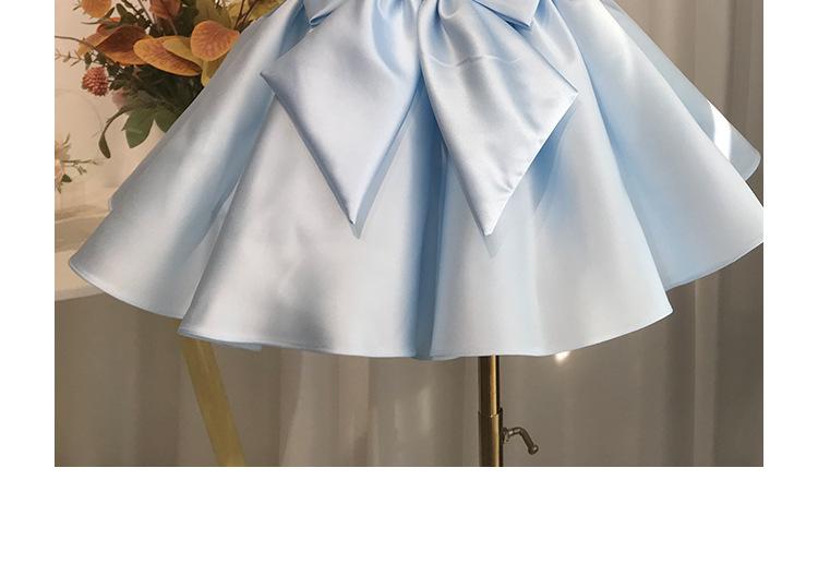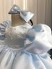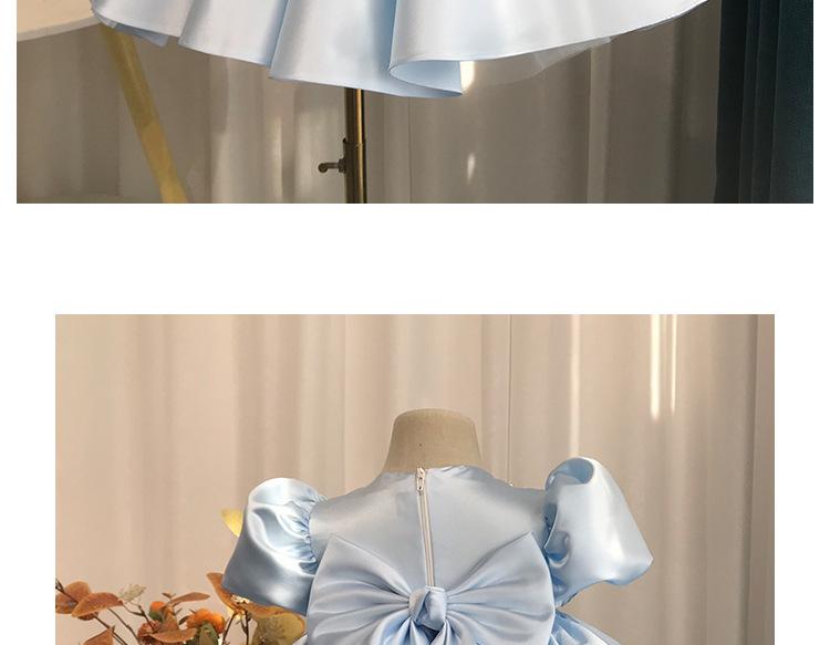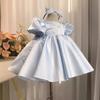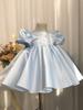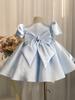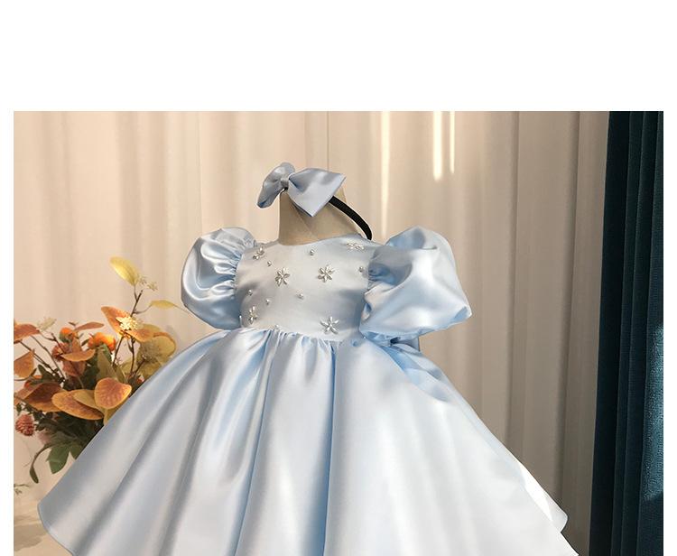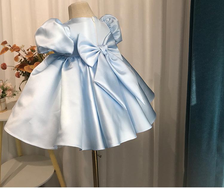 Elegante Vestido de Princesa de Satén Azul Transfronterizo Falda Tutú Vestido de Noche Vestido de Primer Cumpleaños de Bebé Sesión de Fotos de Cumpleaños de Niña Otoño