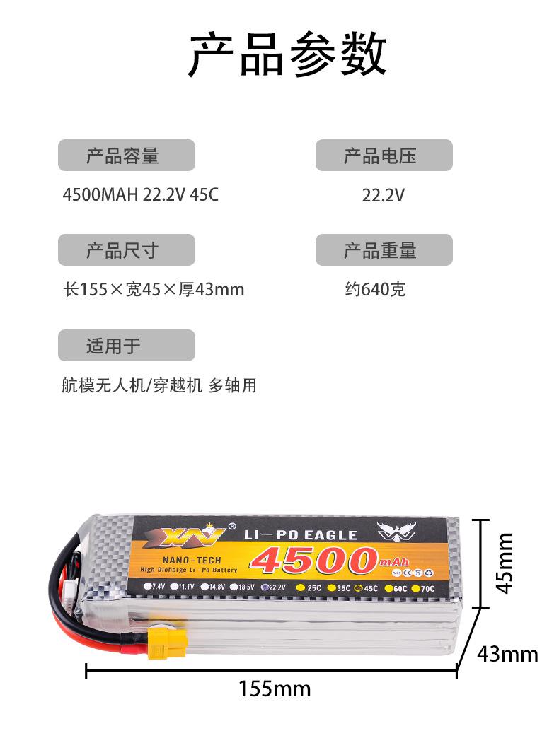 Batería Modelo Eagle King 22.2V 6S 4500mAh 45C Modelo de Vehículo con Conductos UAV Batería de Alta Tasa