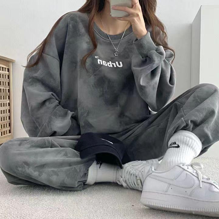 Conjunto de dos piezas de pantalón y manga larga para mujer, primavera otoño invierno 2024, ropa deportiva informal, color gris