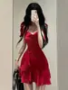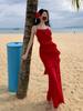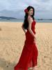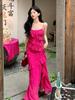 Vestido estilo retro francés rosa rojo blanco con tirantes, estilo industrial pesado, con volantes y largo hasta los tobillos para viajes de vacaciones.
