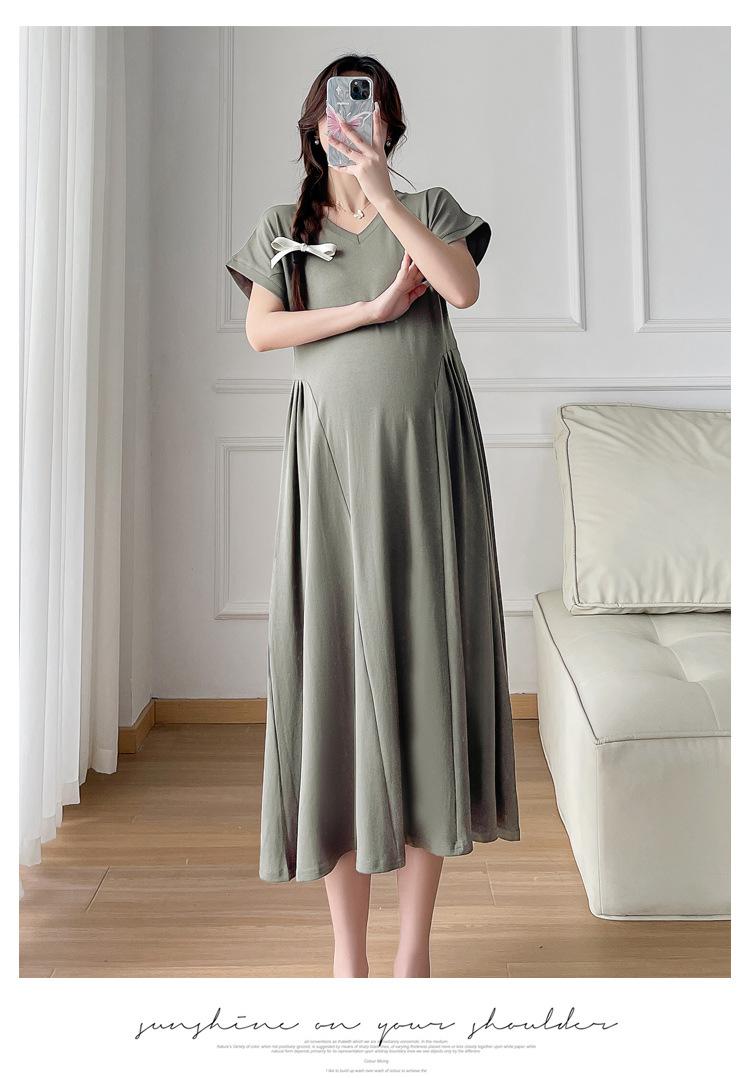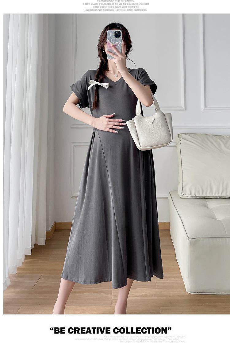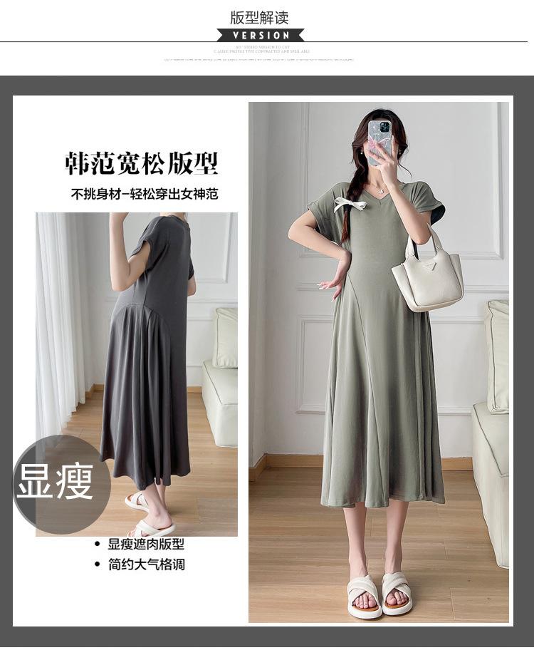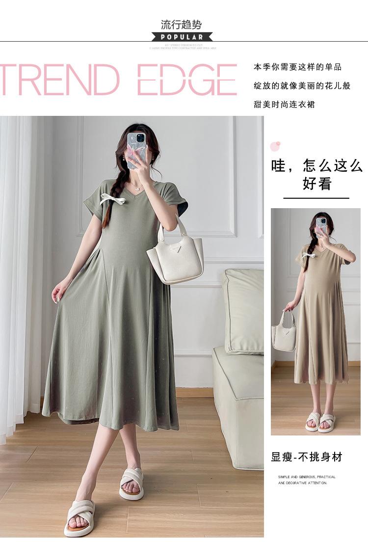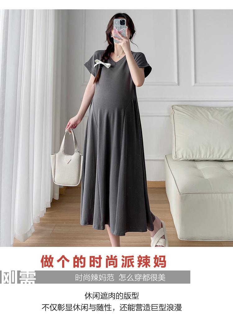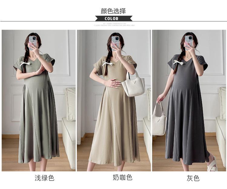 Ropa de Maternidad 2024 Verano Nuevo Estilo Coreano Diseño de Moda Elegante Cintura Adelgazante Look Cubre Vientre Vestido de Maternidad